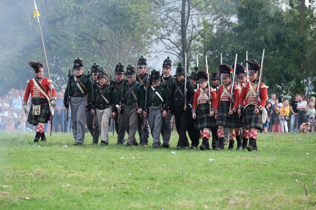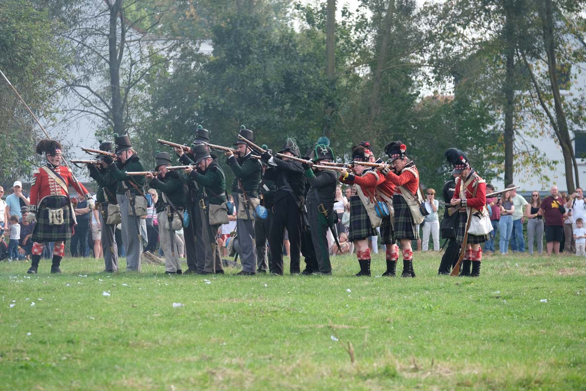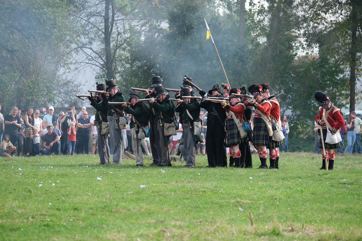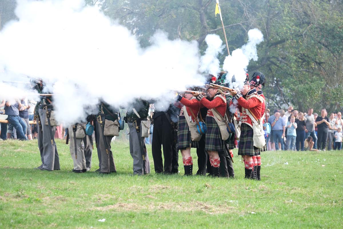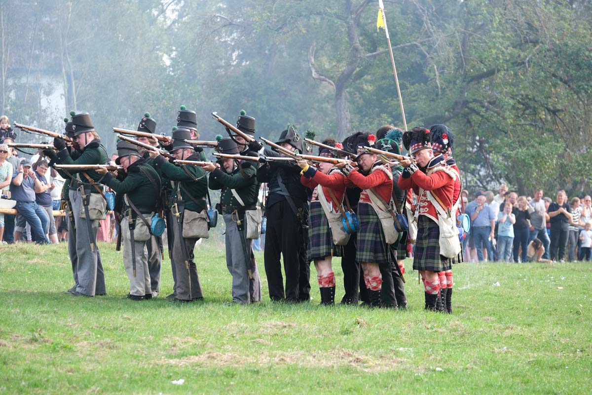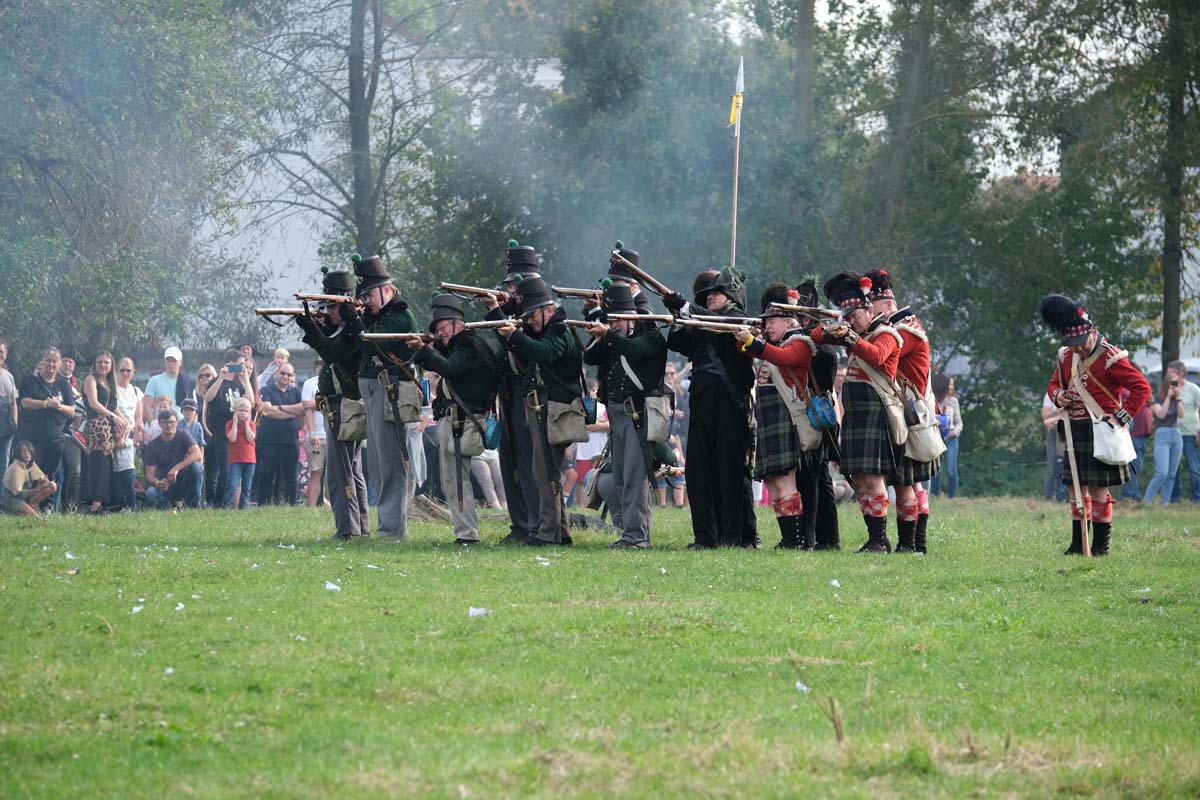 Echte Kugeln wurden in der eigentlichen Waffenverbotszone rund um die JVA selbstverständlich nicht abgeschossen. Trotzdem wurden auch die Vorderlader der Soldaten mit Zündhütchen und Schwarzpulver geladen. Die Mündungsfeuer waren beeindruckend, die Geräuschkulisse respekteinflößend und die Darstellung sehenswert. Verletzt wurde niemand, auch die gefallenen Soldaten durften beim Schlussappell zum Ausklang auf dem Paradeplatz wieder mitspielen.