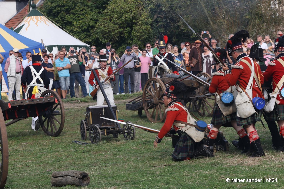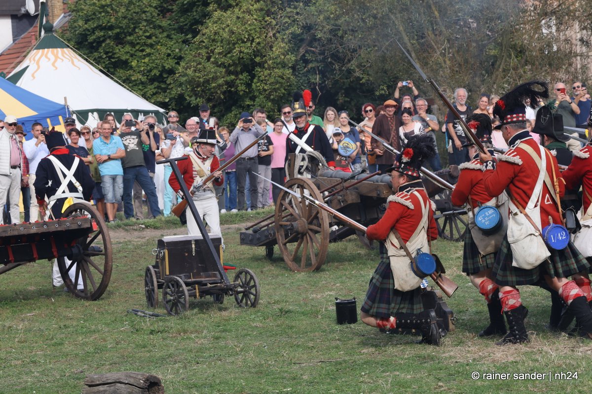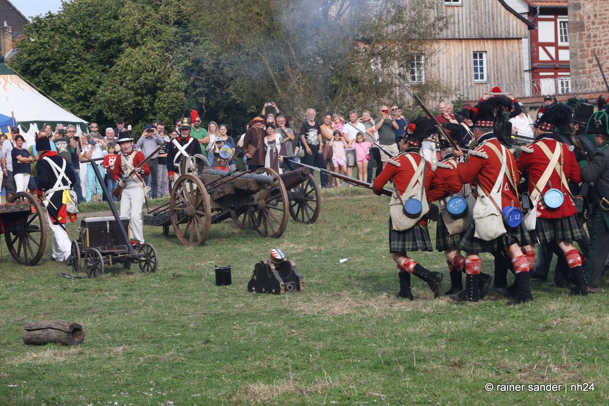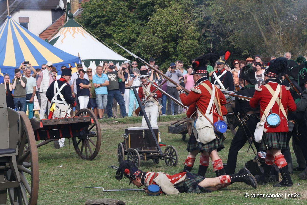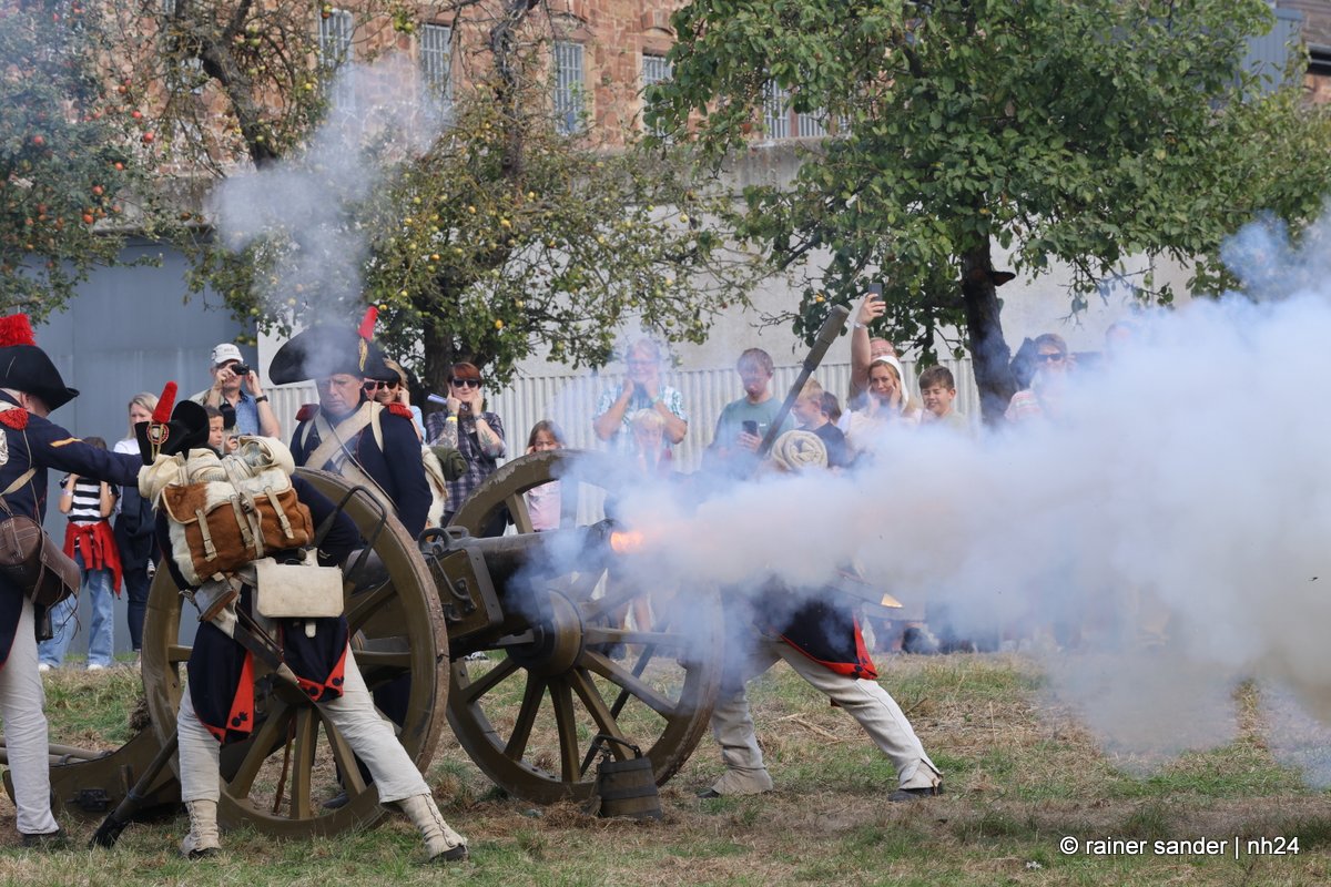 SCHWALMSTADT. So kreiert man Meilensteine und Erinnerungen für die Ewigkeit! Mit viel Pulverdampf und Knalleffekten ging das Mega-Fest um den Festungsgeburtstag und das zeitidentische Konfirmationsjubiläum auf der Böllerwiese grandios zu Ende. Die Soldaten des Herzogs von Braunschweig waren als Angreifer gekommen und stürmten die Festung.