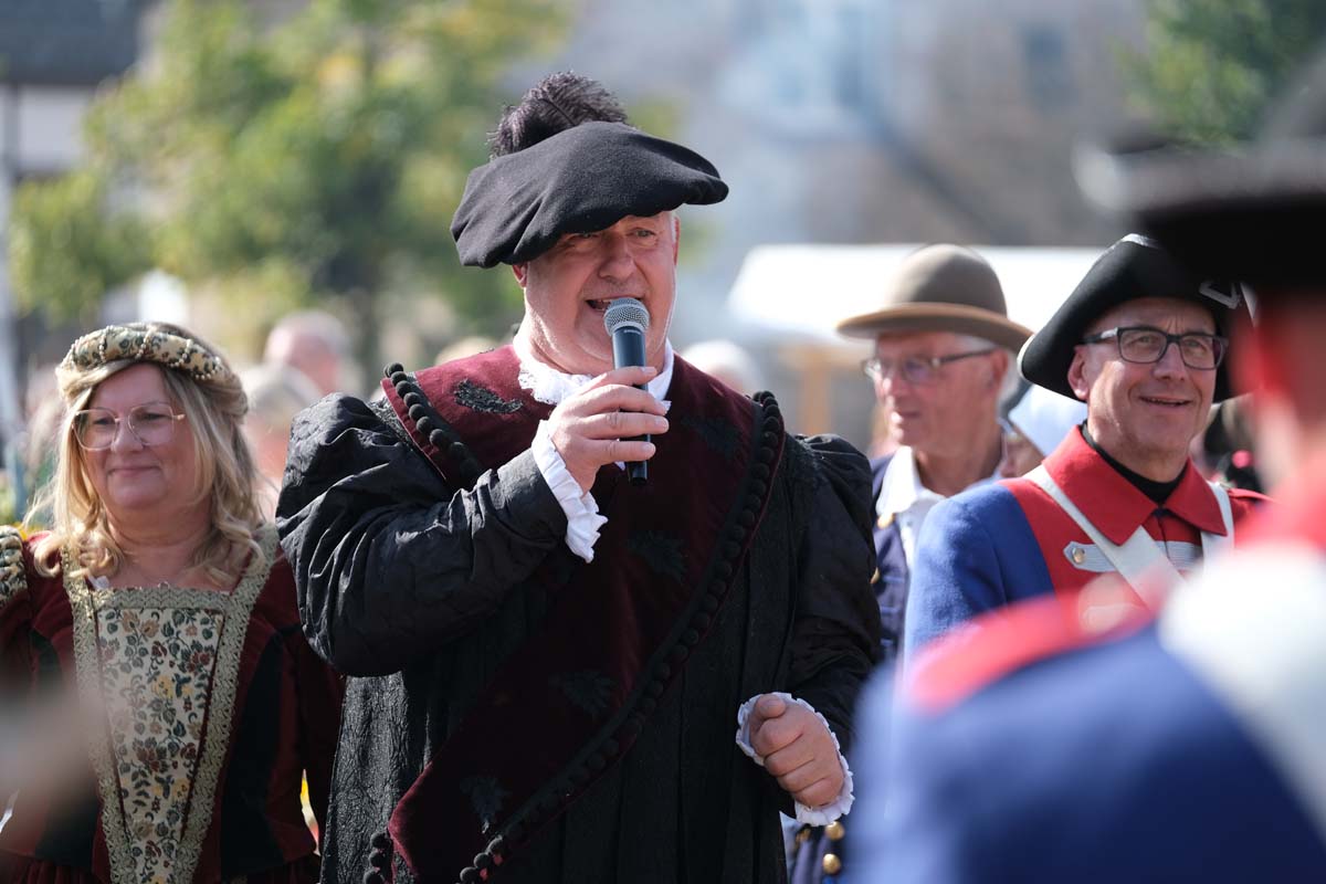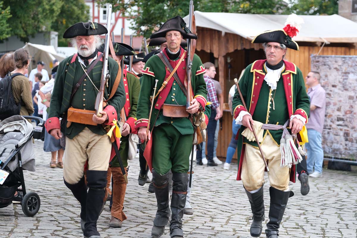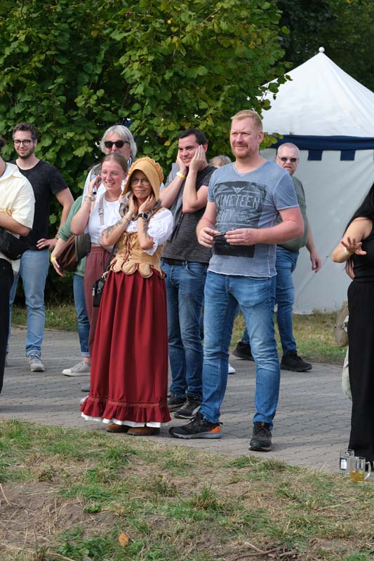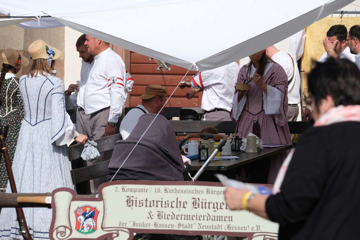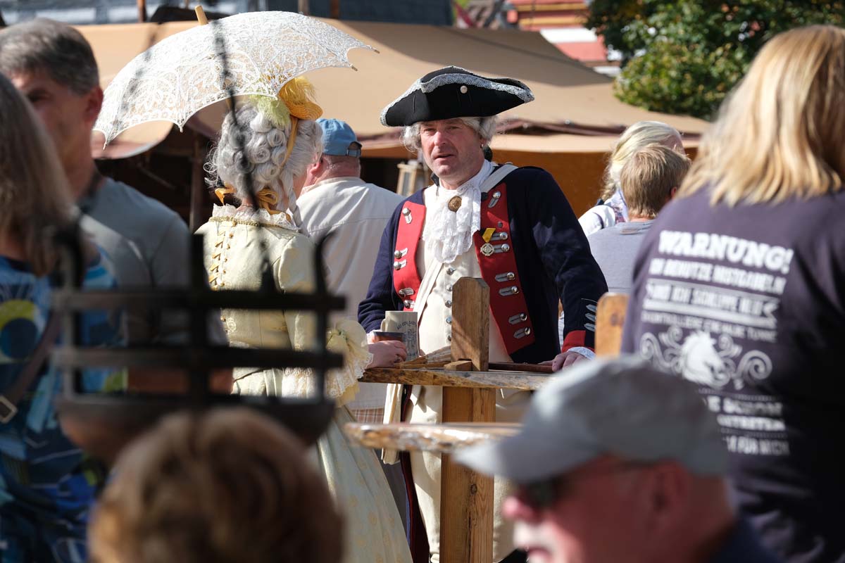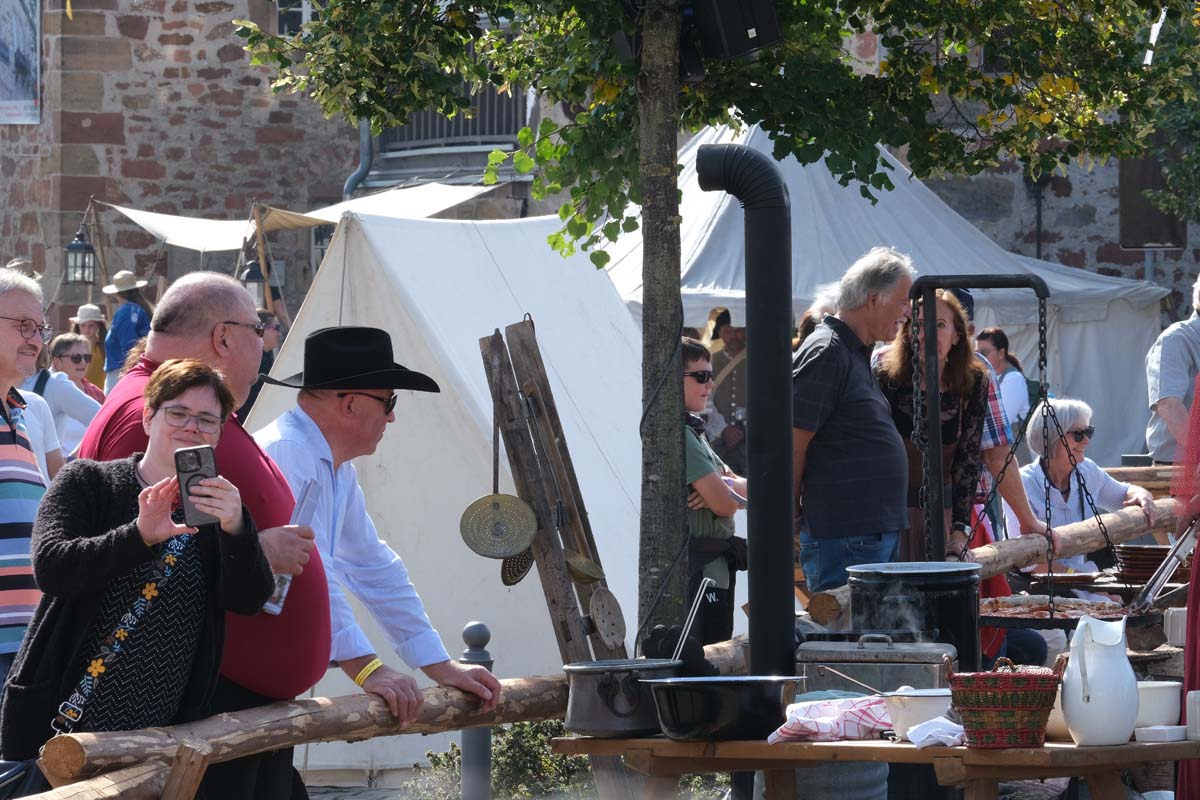 Bürgermeister Tobias Kreuter war – nach zwei Tagen in festlich-historischem Gewand – diesmal in Zivil mit Familie unterwegs. Stadtmanager Achim Nehrenberg wurde als Gast gesichtet, von seinen wichtigen Aufgaben hat ihn die aufwändigste Veranstaltung der Stadt seit dem Hessentag 1995 nicht abgelenkt. Mit ihnen waren 6.000 Menschen in den Festungsbereich geströmt. Sie erfreuten sich – wie bereits am Samstag – wieder an historischem Handwerk, Händlern, Soldaten und verweilten in den zahlreichen Tavernen.