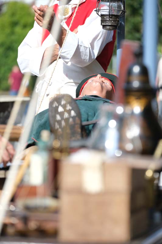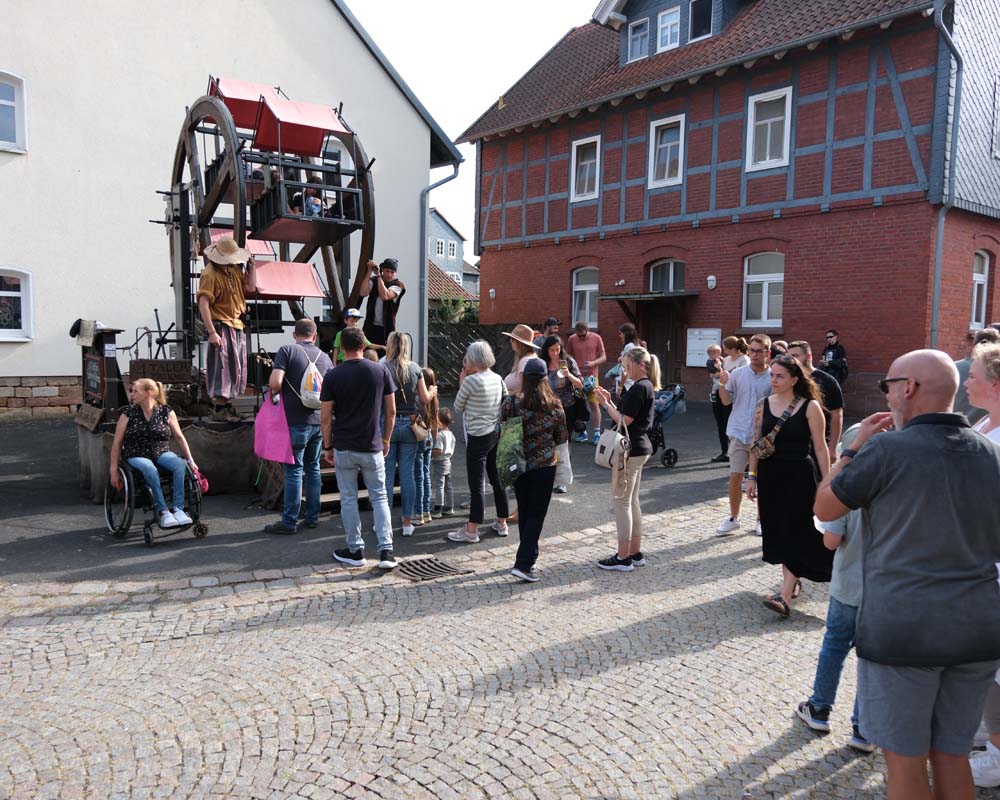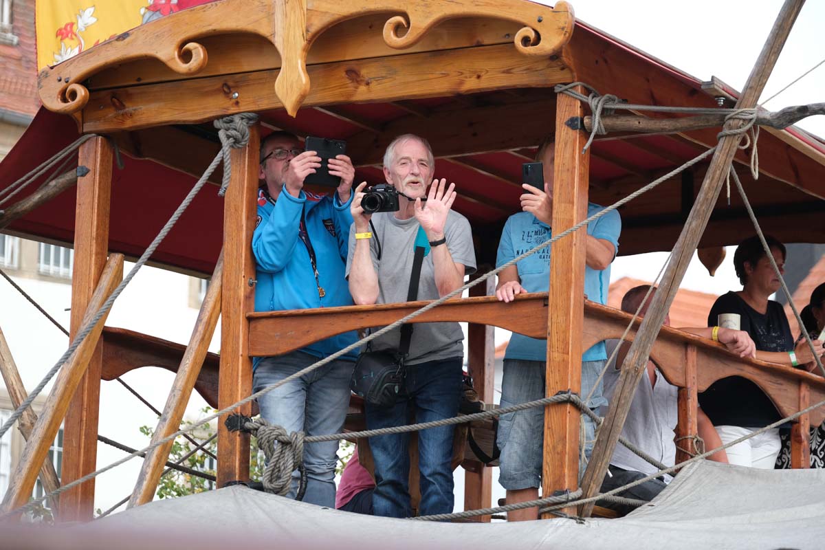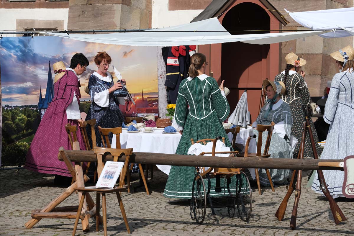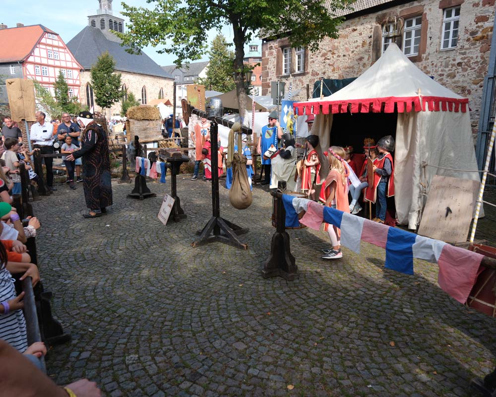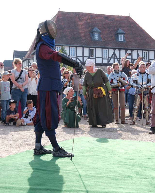 Bürgermeister Tobias Kreuter war – nach zwei Tagen in festlich-historischem Gewand – diesmal in Zivil mit Familie unterwegs. Stadtmanager Achim Nehrenberg wurde als Gast gesichtet, von seinen wichtigen Aufgaben hat ihn die aufwändigste Veranstaltung der Stadt seit dem Hessentag 1995 nicht abgelenkt. Mit ihnen waren 6.000 Menschen in den Festungsbereich geströmt. Sie erfreuten sich – wie bereits am Samstag – wieder an historischem Handwerk, Händlern, Soldaten und verweilten in den zahlreichen Tavernen.