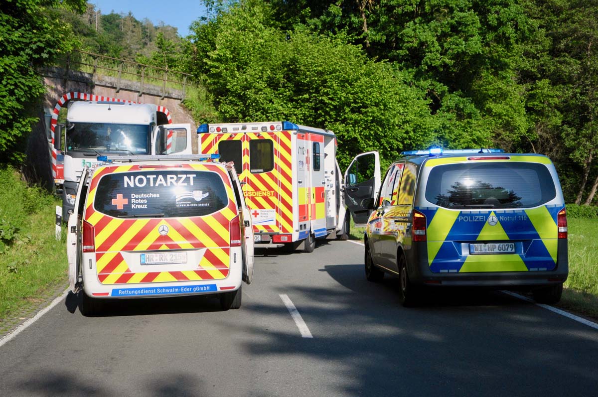 Die Rettungsschere der Feuerwehr kam nicht mehr zum Einsatz. Im Einsatz waren zwei Rettungs- und ein Notarztteam, die Crew des Rettungshubschraubers Christoph 7, eine Streifenwagenbesatzung der Polizeistation Bad Wildungen sowie die Feuerwehren Anraff, Bergheim-Giflitz und die Feuerwehr Hemfurth-Edersee mit einem zweiten Rettungssatz.