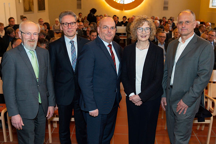 Das Bild: Hephata-Vorstände Klaus Dieter Horchem und Maik Dietrich-Gibhardt, Prof. Dr. Edgar Franke, Hephata-Vorstand Judith Hoffmann und Dr. Bernd Schade (von links).