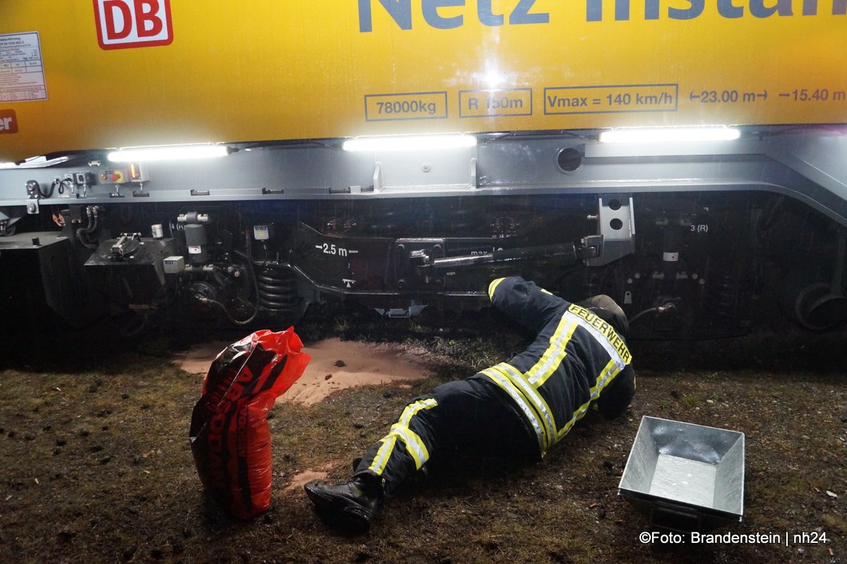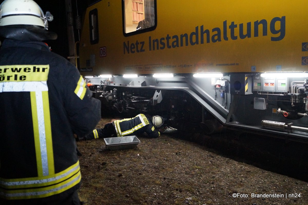 Nach ersten Informationen von der Unfallstelle, war der knapp 80 Tonnen schwere Arbeitszug bei der Entgleisung mit mindestens vier Personen besetzt. Aus der havarierten Lok liefen Betriebsstoffe aus, die von Feuerwehrleuten aus Körle und Melsungen gebunden wurden. Diesel und Hydrauliköl wurden aus dem Zug abgepumpt, das Kanalnetz auf eventuelle Betriebsstoffe kontrolliert.