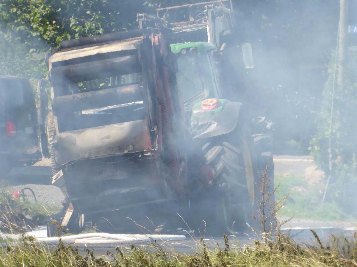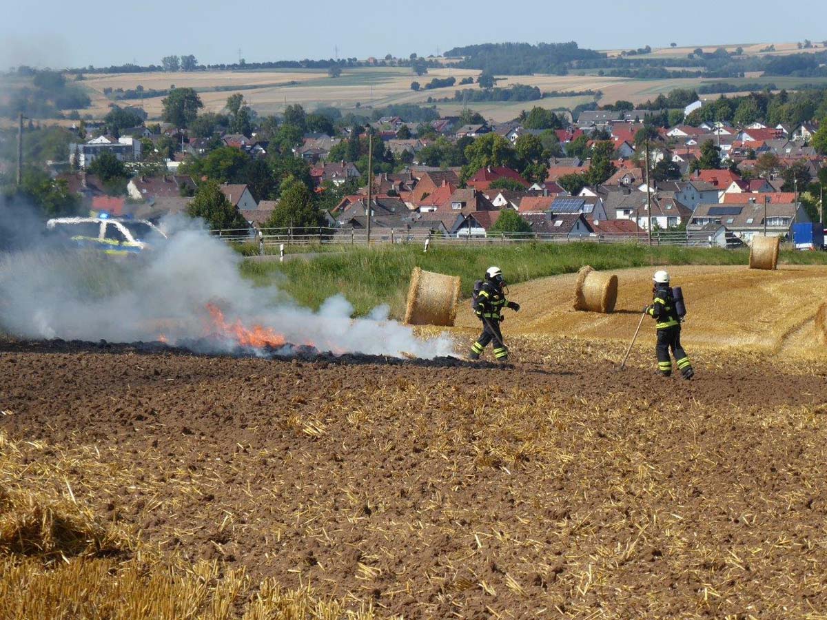 Vor Ort waren die Besatzungen eines Einsatzleitwagens, eines Löschfahrzeug, eines Tanklöschfahrzeug sowie die Freiwillige Feuerwehr Wolfsanger, ein Rettungsteam und eine Streifenwagenbesatzung der Polizei. Der Fahrer des Gespanns reagierte vollkommen richtig und fuhr das brennende Fahrzeug noch vom Stoppelfeld auf die angrenzende Straße. Auf dem Feld brannte zudem auf eine Fläche von ca. 50 m2 Stroh. Die Rundballenpresse wurde von einem Trupp unter Atemschutz mit einem Strahlrohr abgelöscht. Ein Landwirt pflügte mit einer Egge das Stoppelfeld um, wodurch eine weitere Brandausbreitung verhindert werden konnte. Durch das schnelle und umsichtige Handeln der beteiligten Landwirte und der Feuerwehr konnte ein größerer Brand verhindert werden. Der Einsatz der Feuerwehr war nach rund einer Stunde beendet. „Abschließend musste die verunreinigte Straße von einer Fachfirma gereinigt werden“, so Berufsfeuerwehr Einsatzleiter Sascha Reuß.