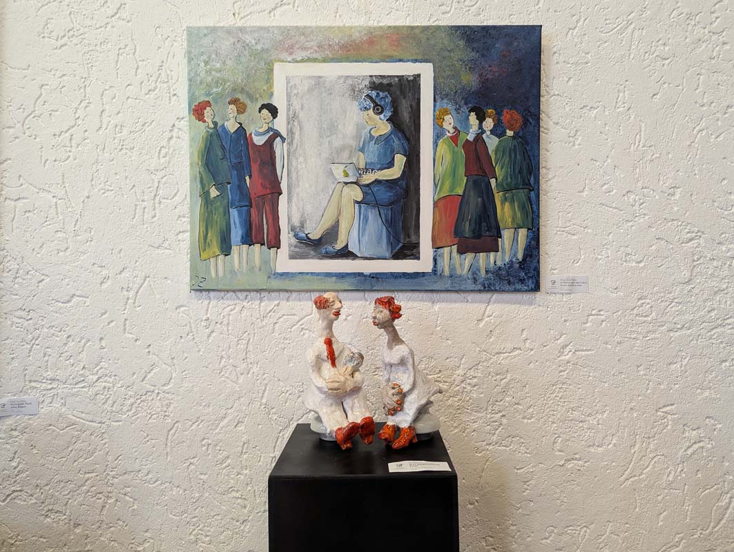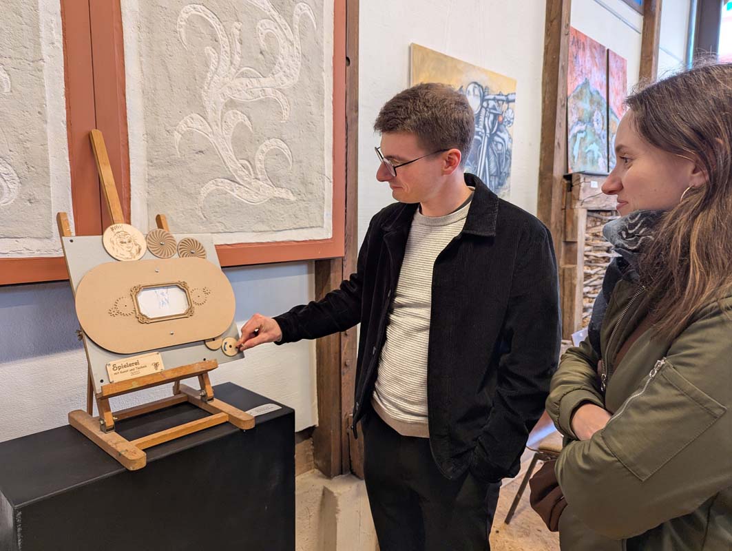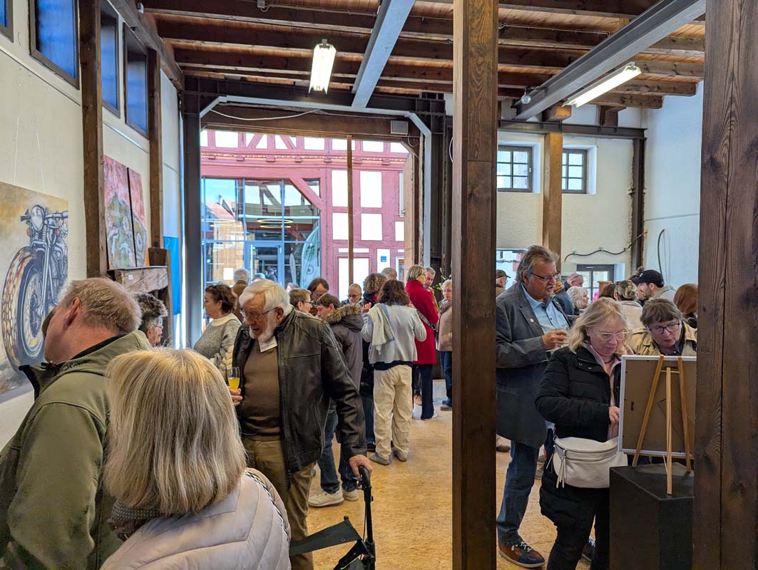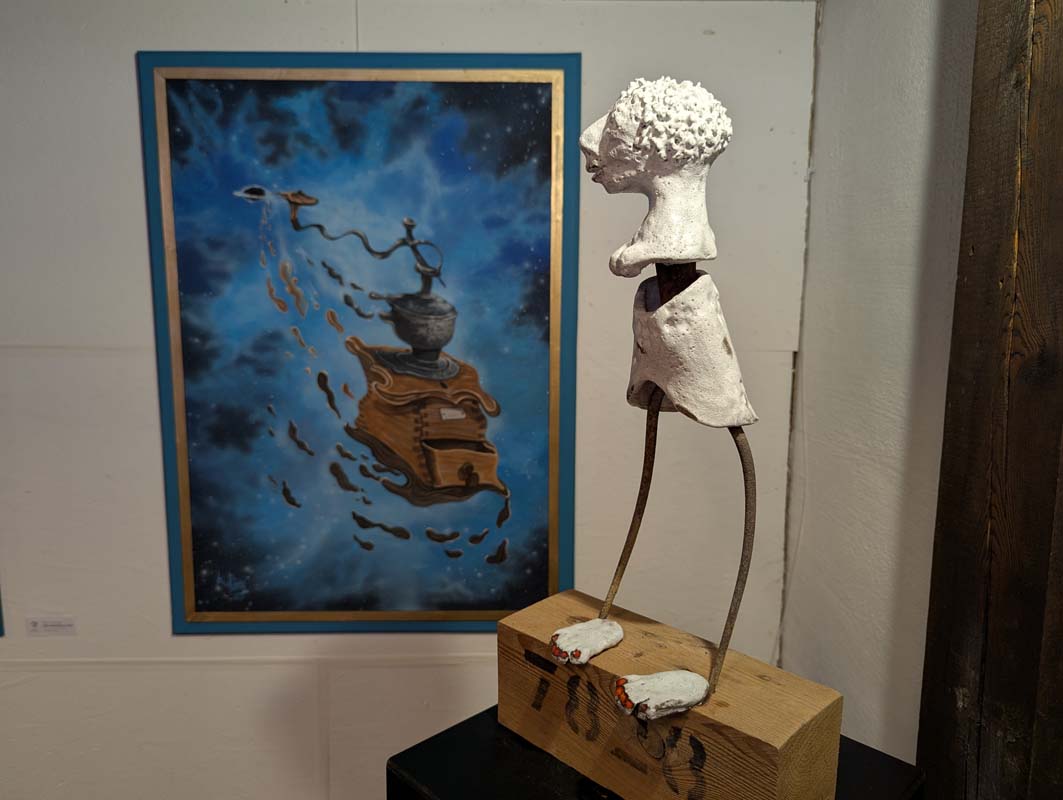Zur Ausstellungseröffnung begrüßten Jochen Weppler vom Geschichts- und Museumsverein sowie Petra Bastian, Vorsitzende des Kunstvereins, die Gäste. Präsentiert werden unter anderem Malerei, Skulpturen, Installationen und Werke mit KI-Bezug. Ein zentrales Thema vieler Exponate ist das Verhältnis des Menschen zur Technik – zwischen Faszination, Abhängigkeit und Kritik.