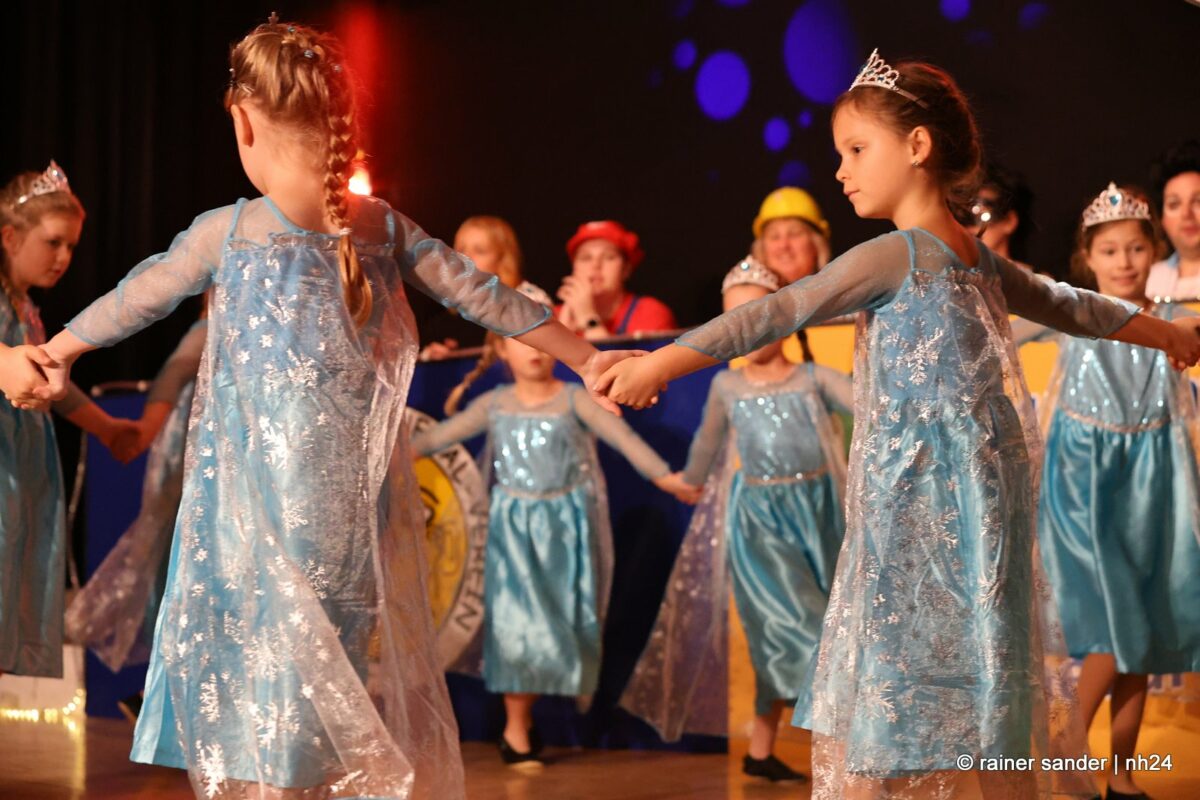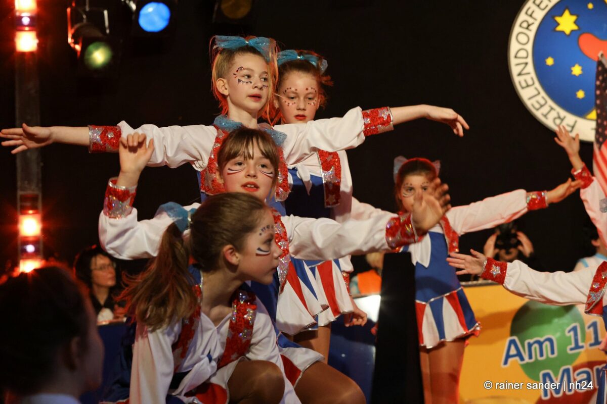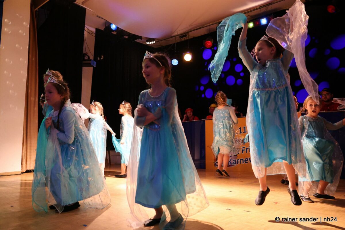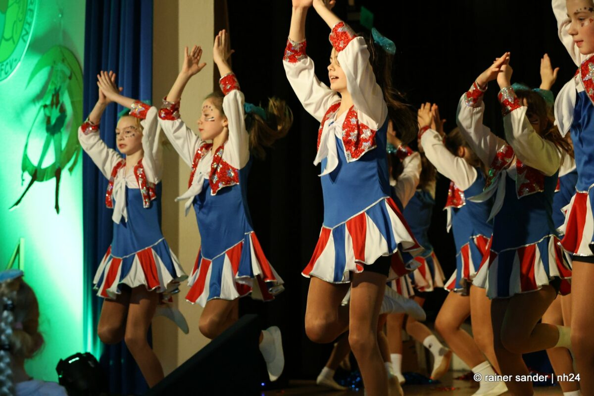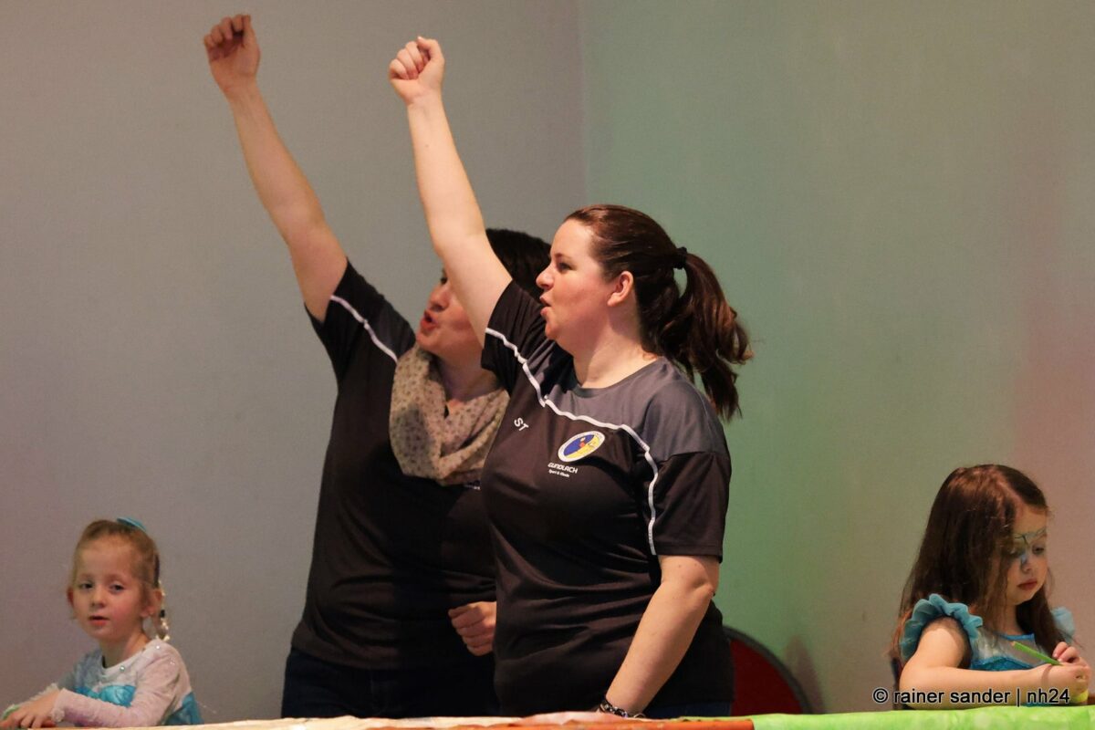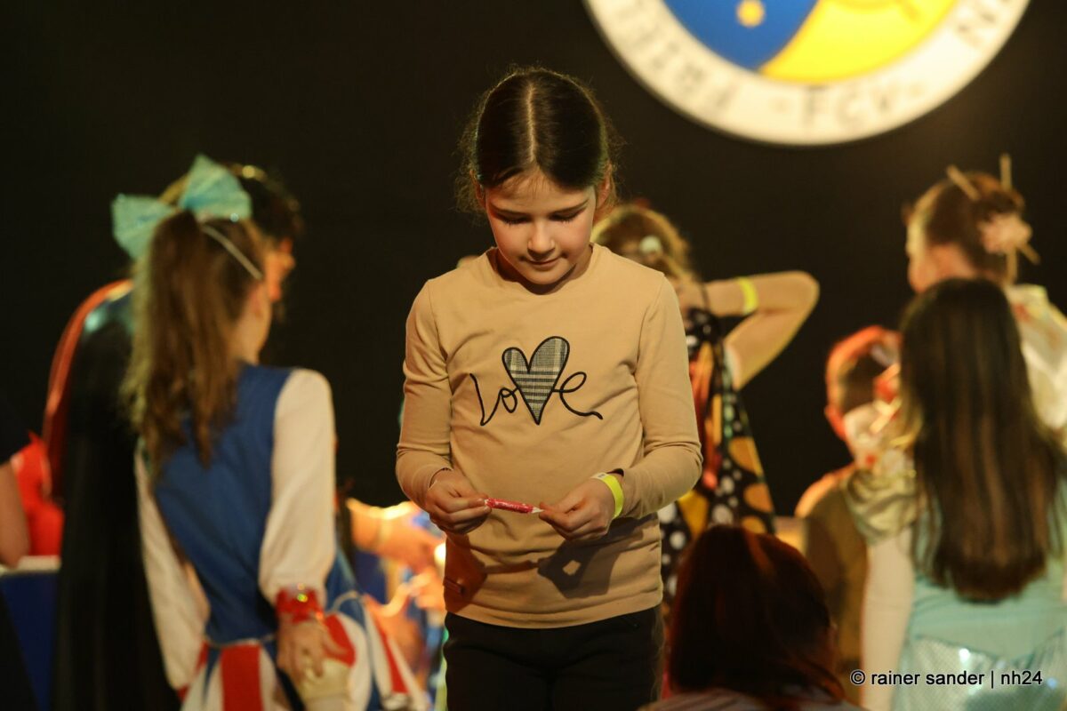 Keine Sorge, das Hassia wurde nicht zum Eispalast, aber zur Showbühne für die Garden 1 und 2 sowie die Cheeky Girls des FCV. Sie zeigten ihre Marschtänze oder sorgten für Bewunderung als Cheerleader. Zwischendurch durften die Kinder immer wieder zum Superheldentanz selbst die Bühne stürmen.