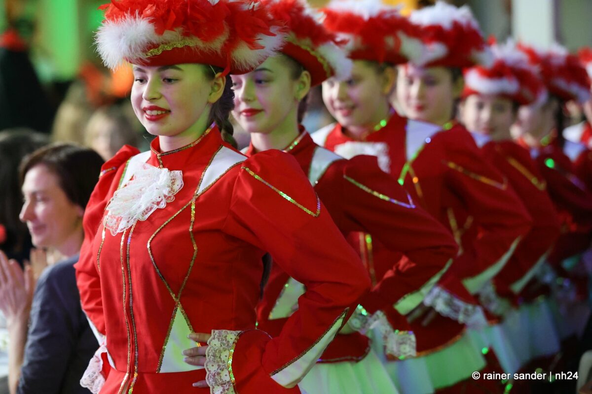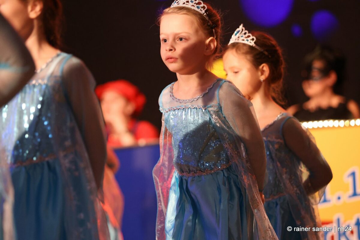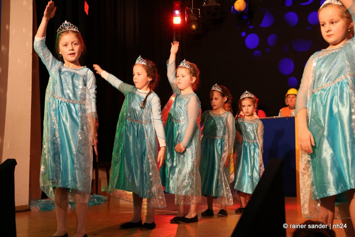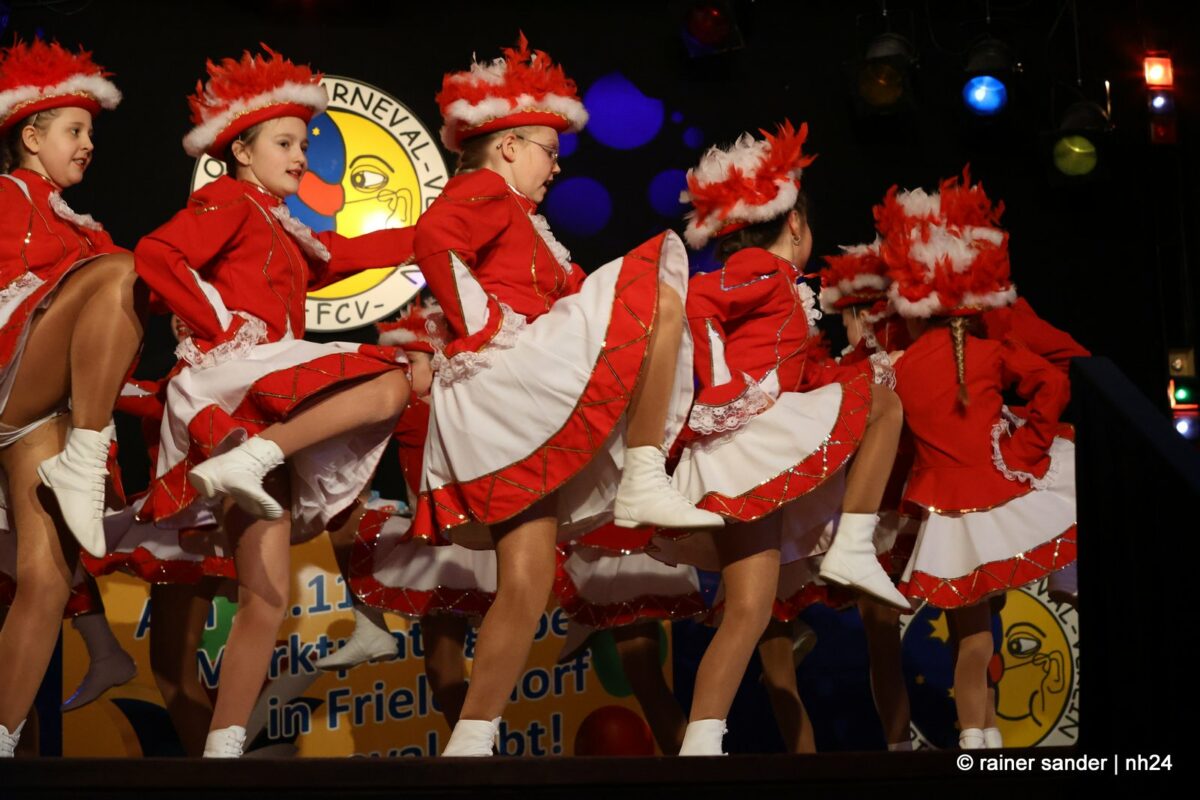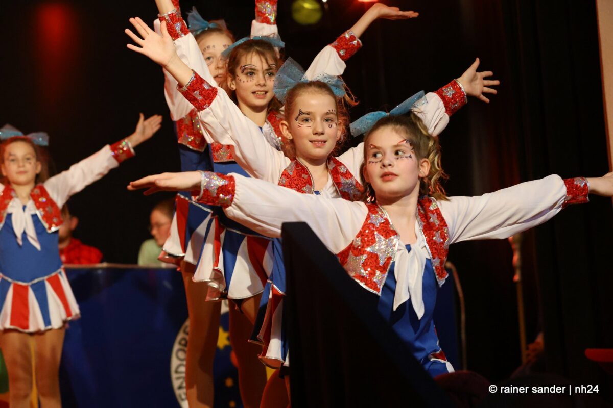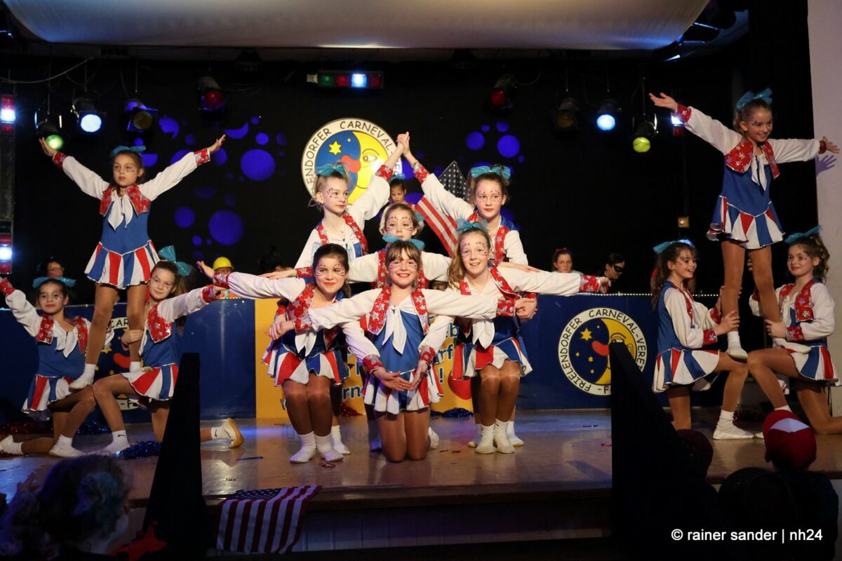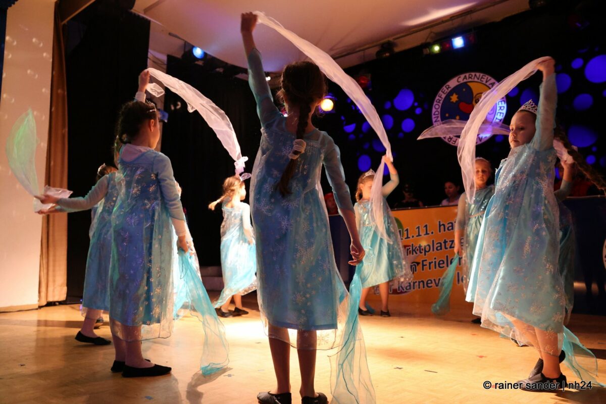 Keine Sorge, das Hassia wurde nicht zum Eispalast, aber zur Showbühne für die Garden 1 und 2 sowie die Cheeky Girls des FCV. Sie zeigten ihre Marschtänze oder sorgten für Bewunderung als Cheerleader. Zwischendurch durften die Kinder immer wieder zum Superheldentanz selbst die Bühne stürmen.