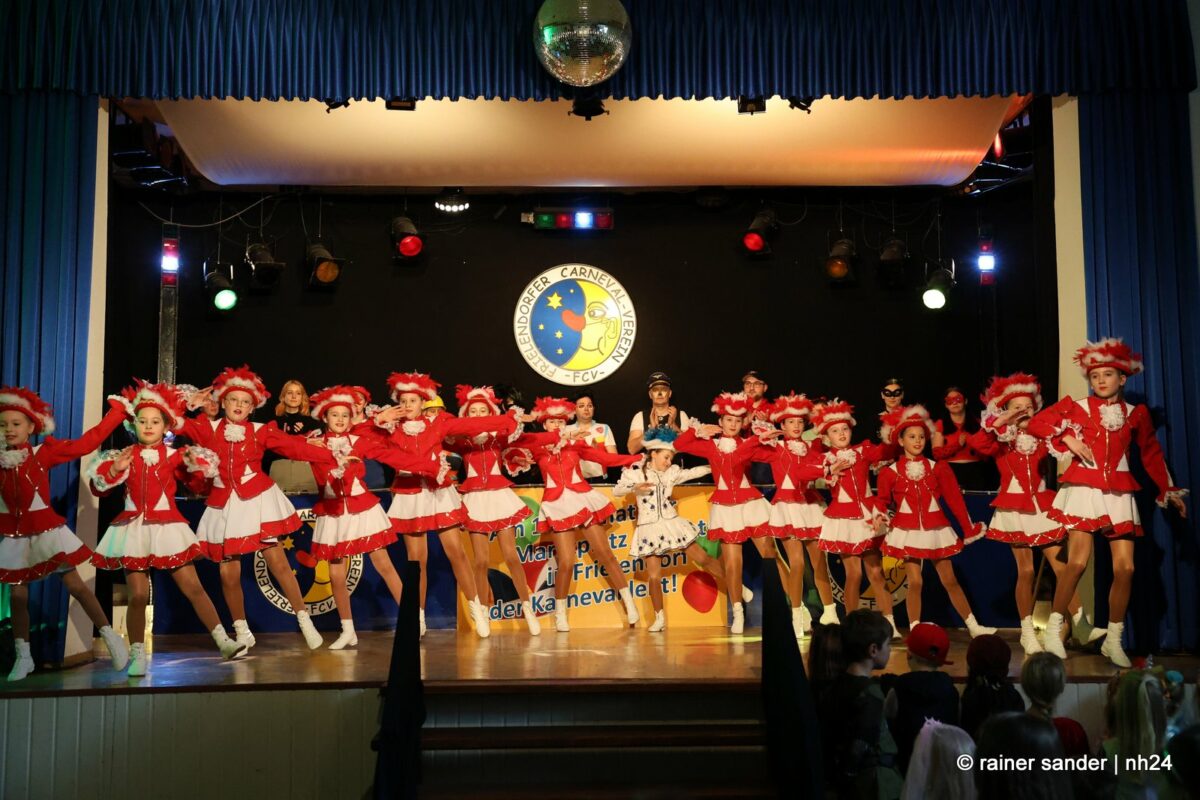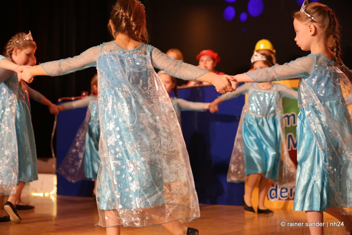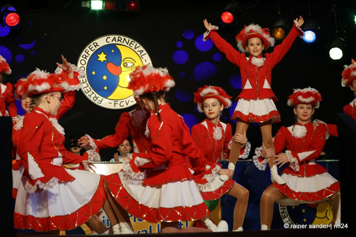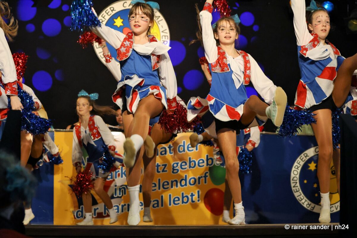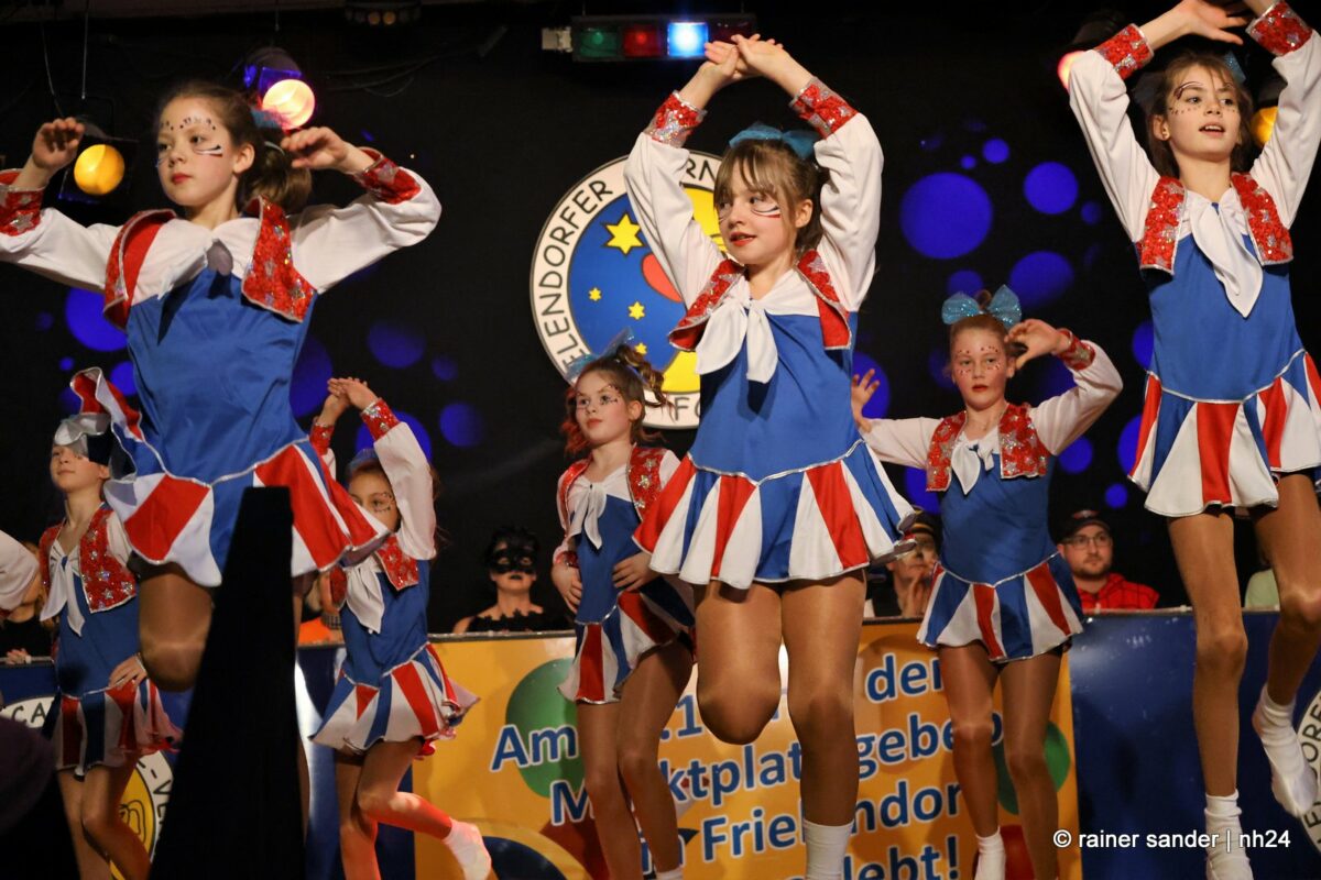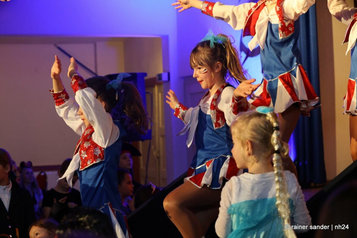 Keine Sorge, das Hassia wurde nicht zum Eispalast, aber zur Showbühne für die Garden 1 und 2 sowie die Cheeky Girls des FCV. Sie zeigten ihre Marschtänze oder sorgten für Bewunderung als Cheerleader. Zwischendurch durften die Kinder immer wieder zum Superheldentanz selbst die Bühne stürmen.