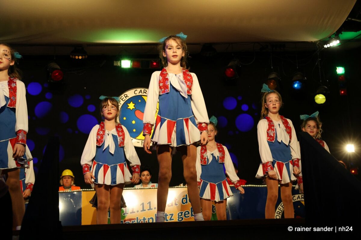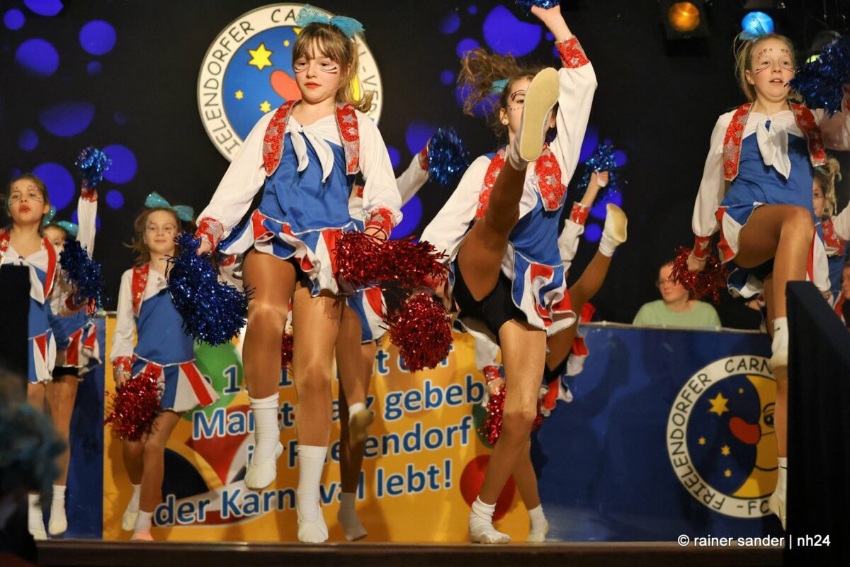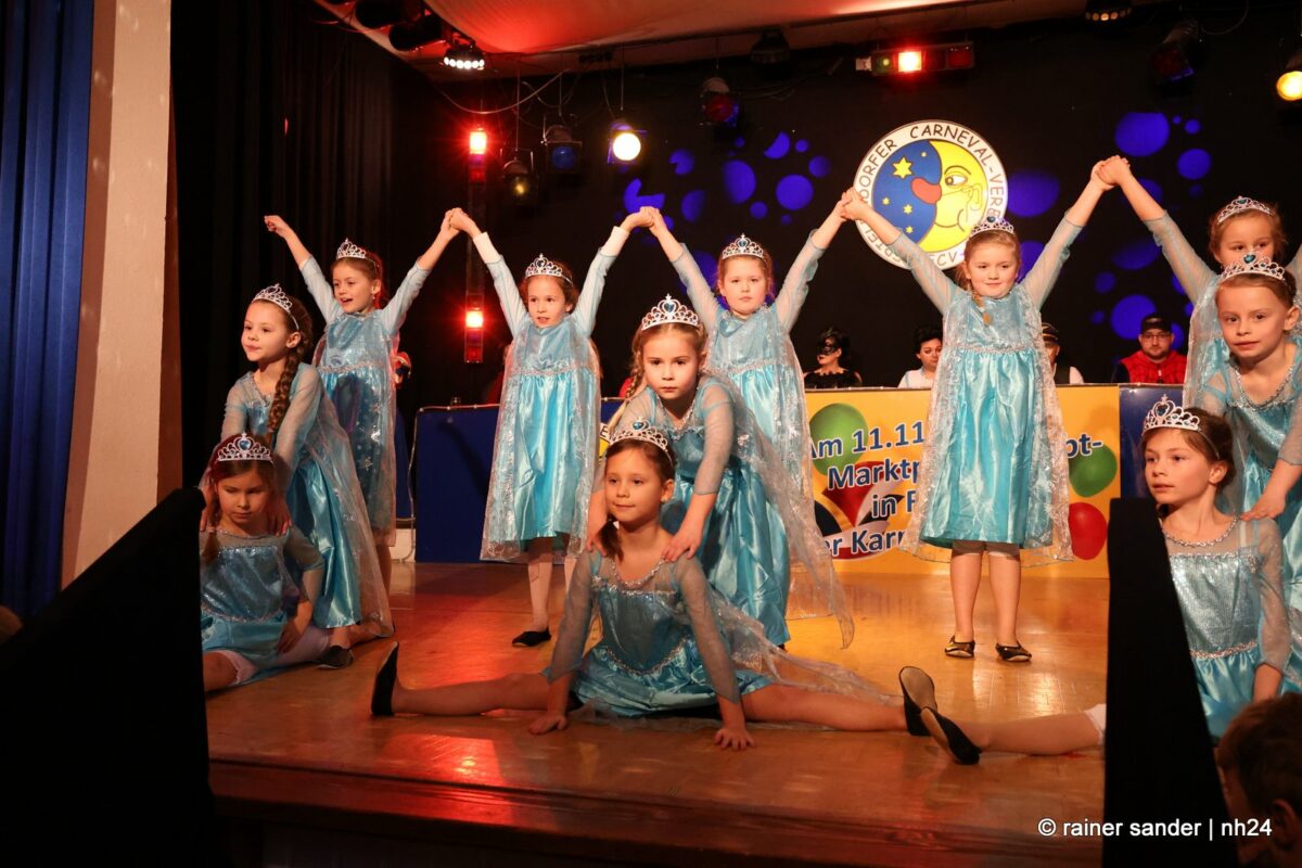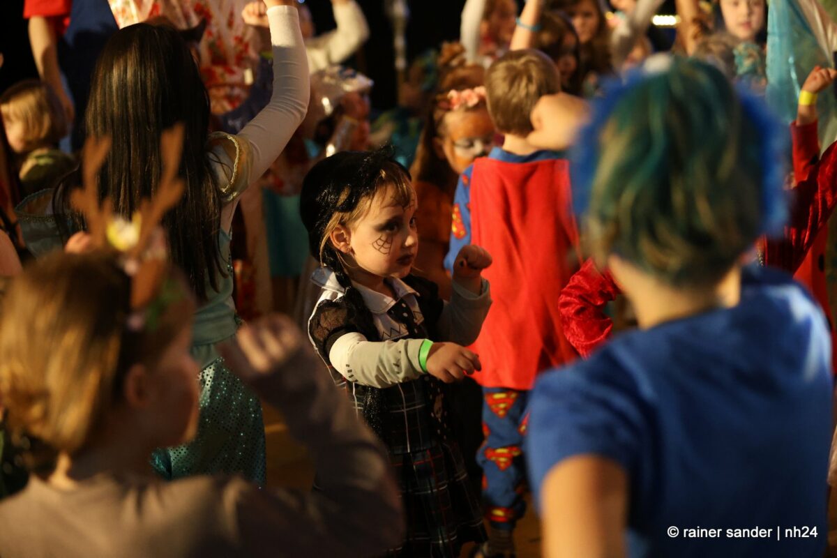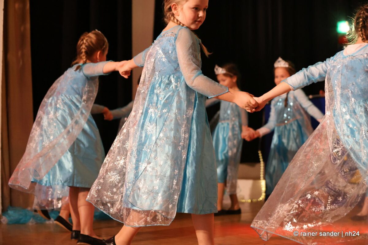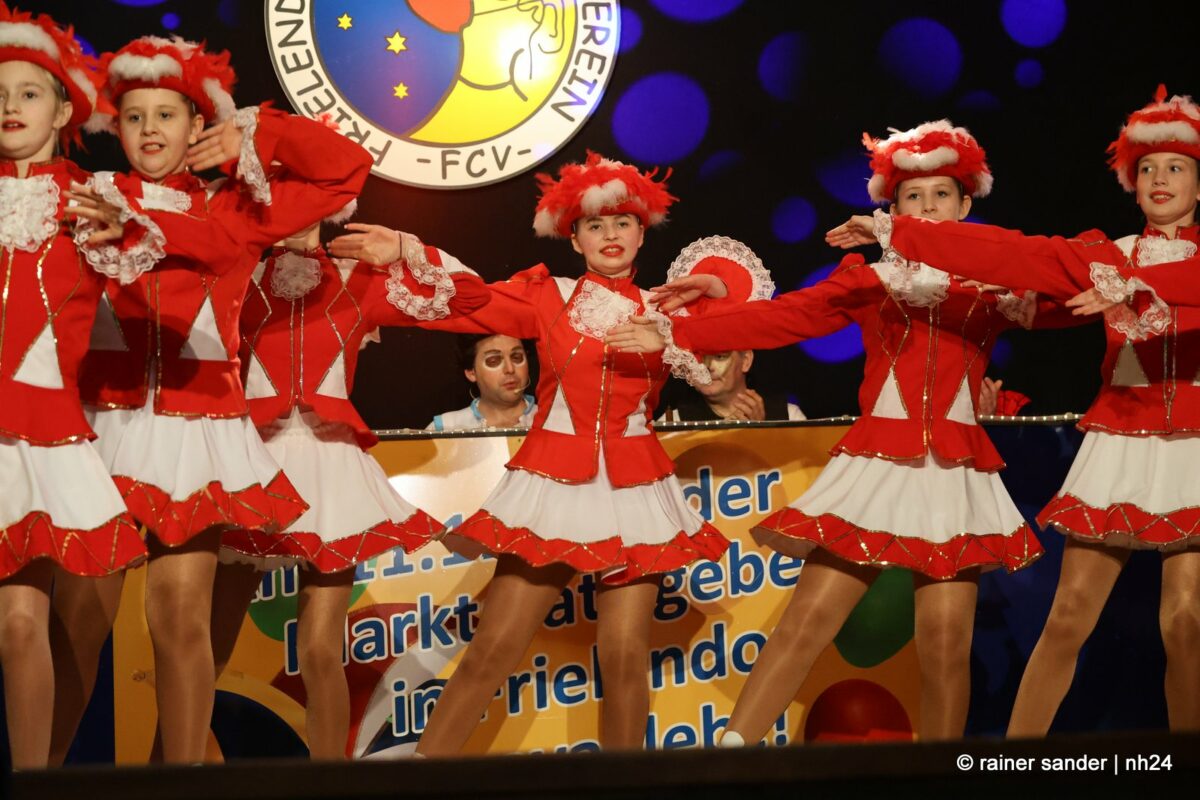 Keine Sorge, das Hassia wurde nicht zum Eispalast, aber zur Showbühne für die Garden 1 und 2 sowie die Cheeky Girls des FCV. Sie zeigten ihre Marschtänze oder sorgten für Bewunderung als Cheerleader. Zwischendurch durften die Kinder immer wieder zum Superheldentanz selbst die Bühne stürmen.