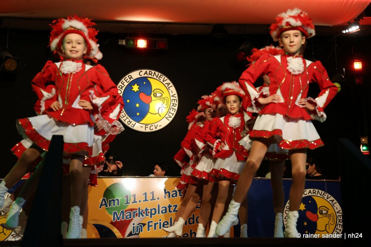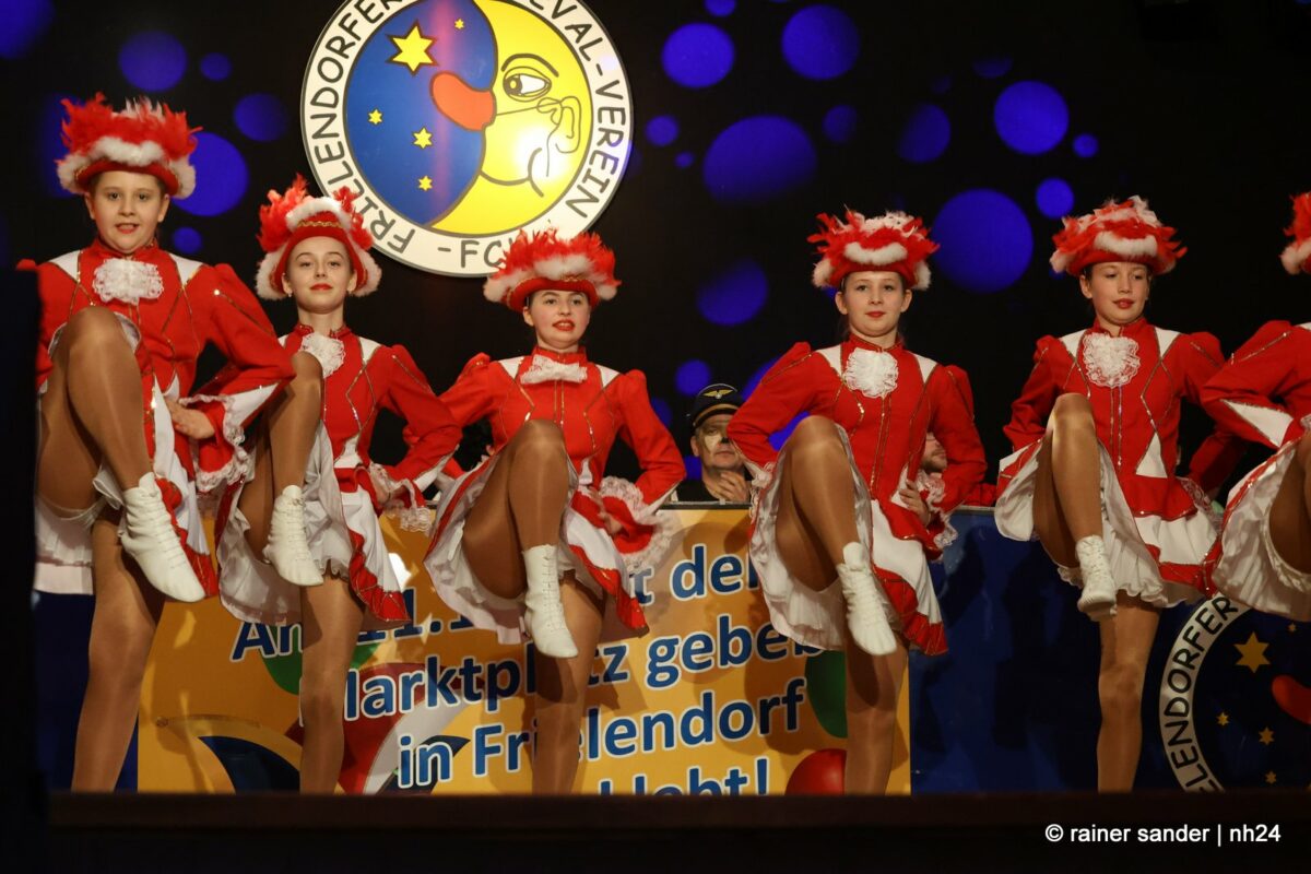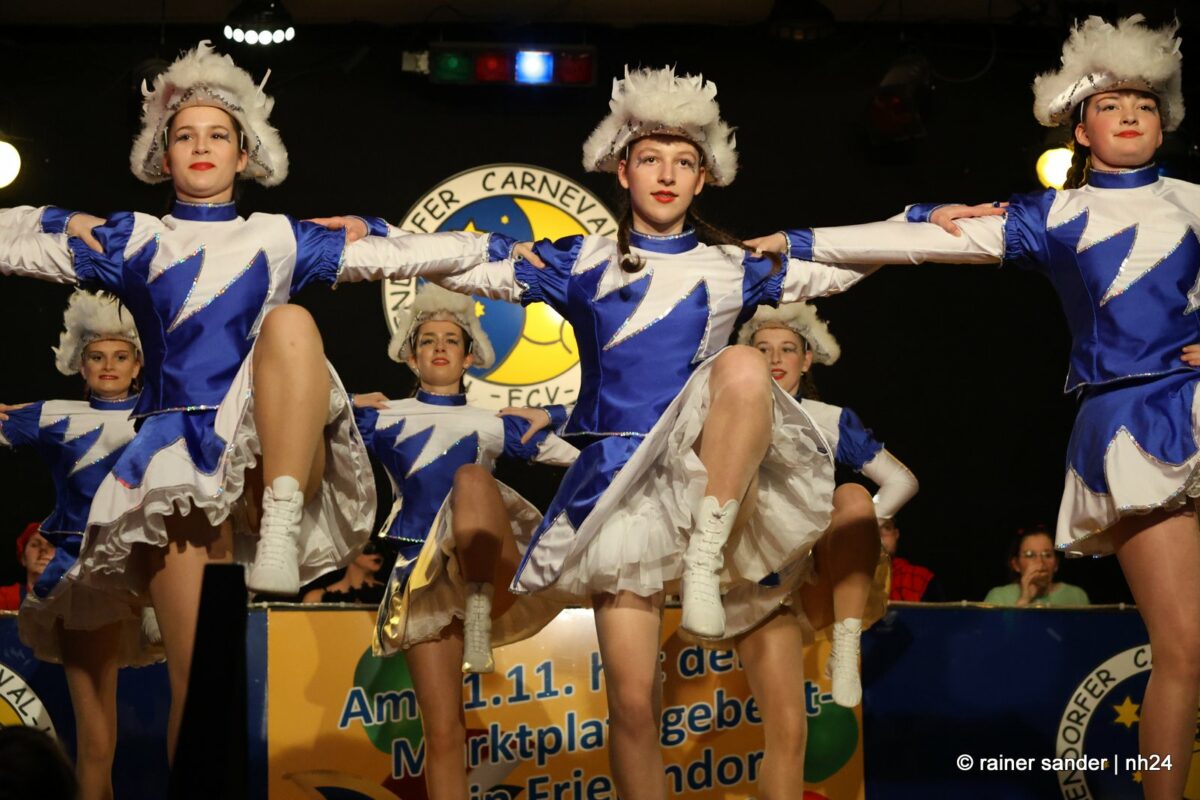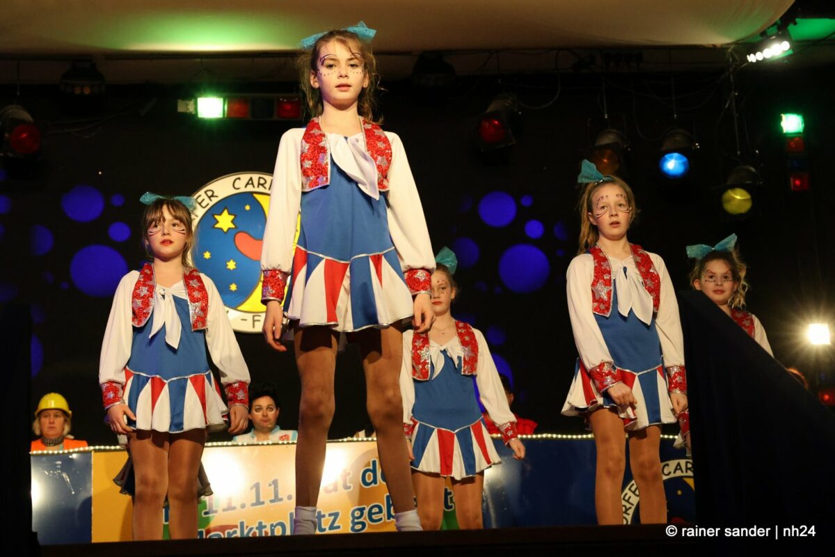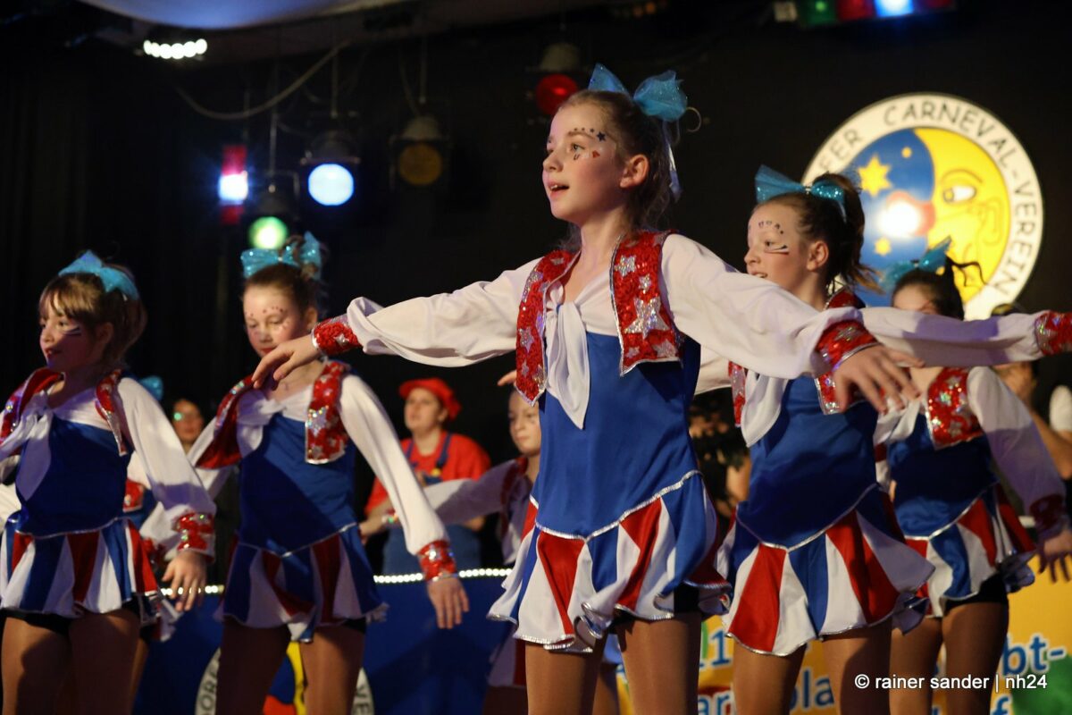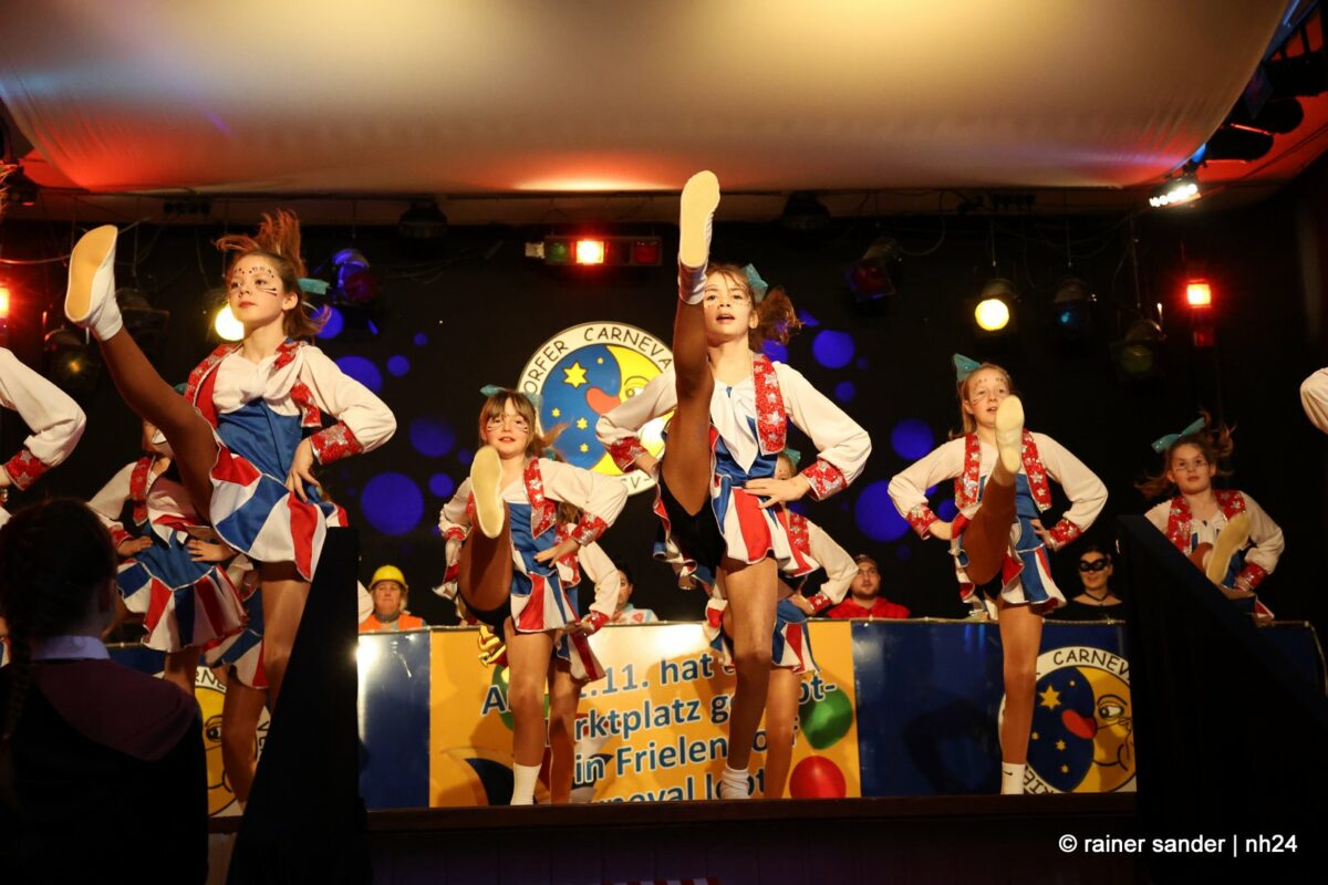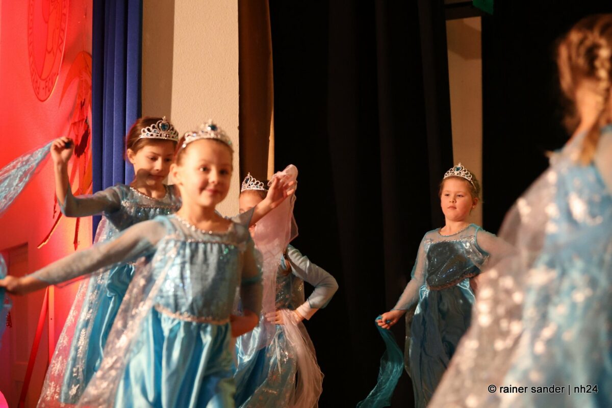 Keine Sorge, das Hassia wurde nicht zum Eispalast, aber zur Showbühne für die Garden 1 und 2 sowie die Cheeky Girls des FCV. Sie zeigten ihre Marschtänze oder sorgten für Bewunderung als Cheerleader. Zwischendurch durften die Kinder immer wieder zum Superheldentanz selbst die Bühne stürmen.