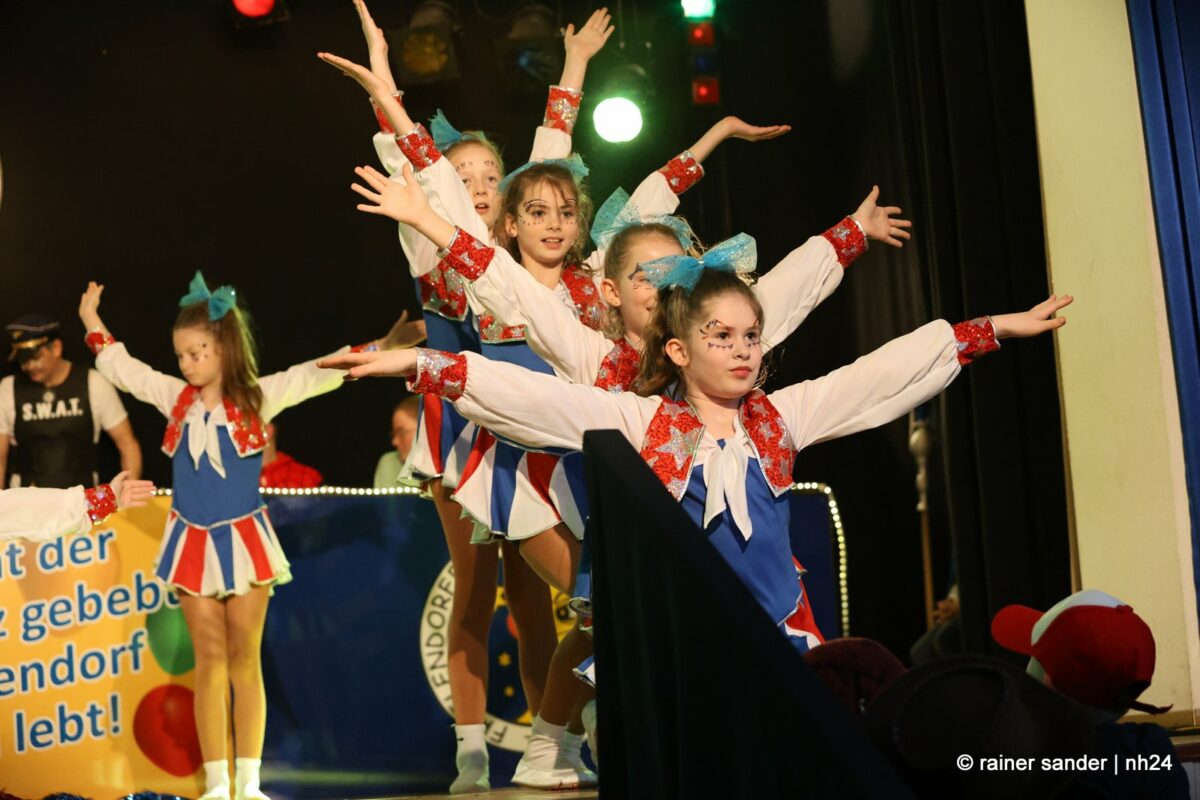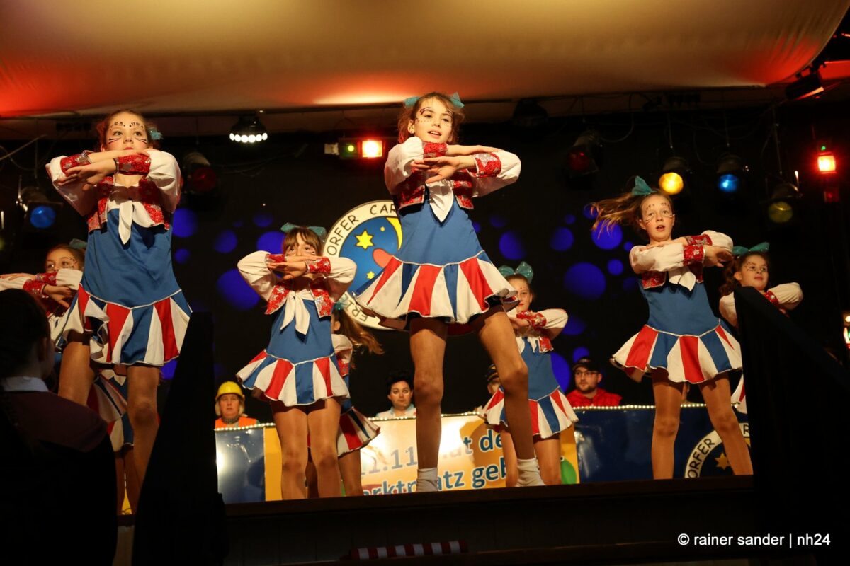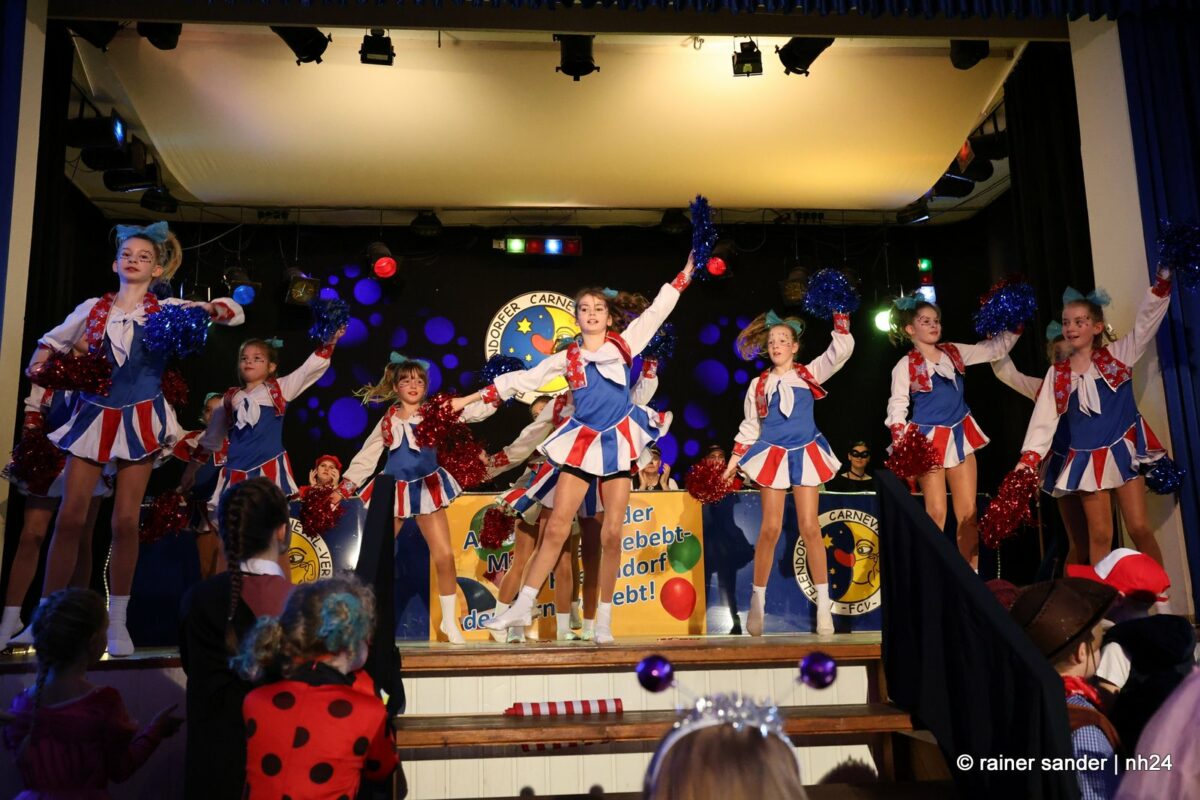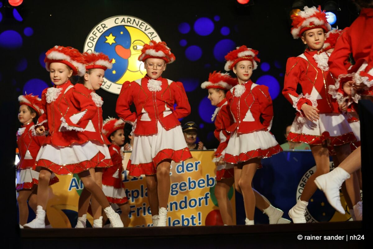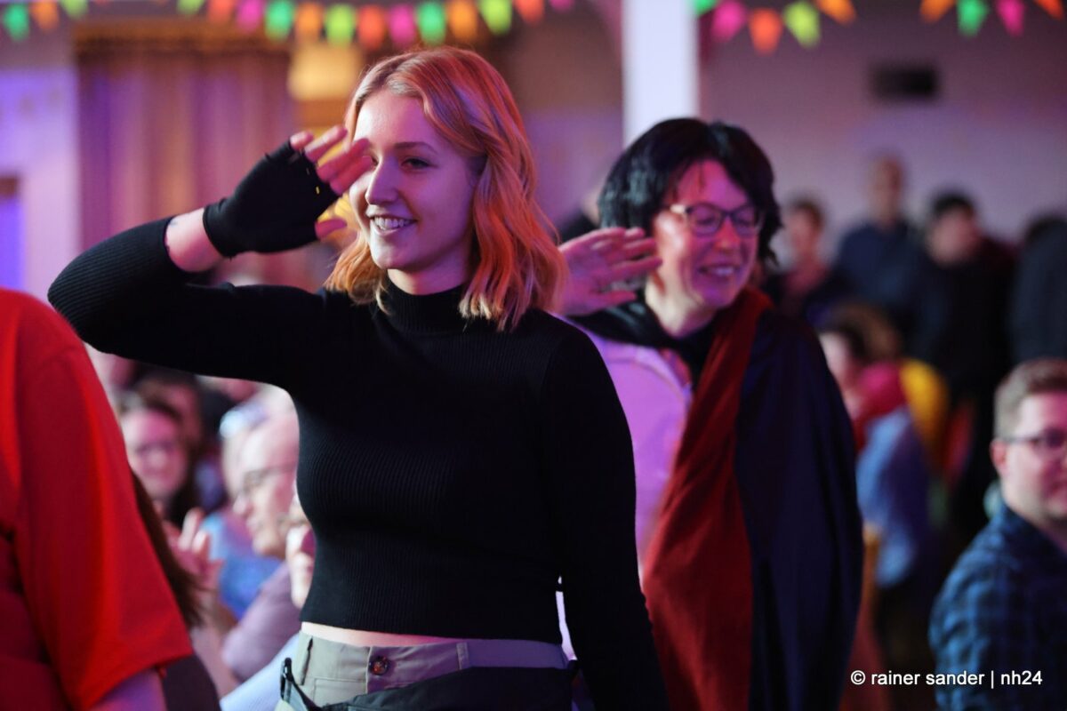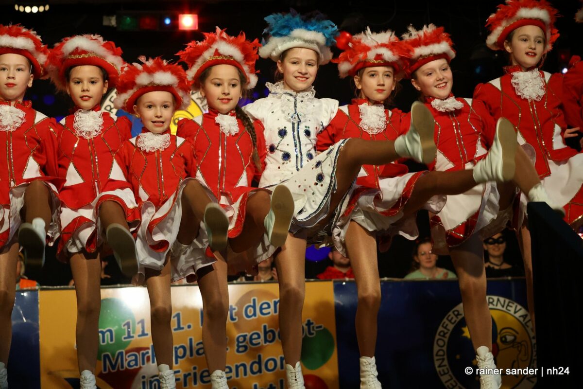 Keine Sorge, das Hassia wurde nicht zum Eispalast, aber zur Showbühne für die Garden 1 und 2 sowie die Cheeky Girls des FCV. Sie zeigten ihre Marschtänze oder sorgten für Bewunderung als Cheerleader. Zwischendurch durften die Kinder immer wieder zum Superheldentanz selbst die Bühne stürmen.