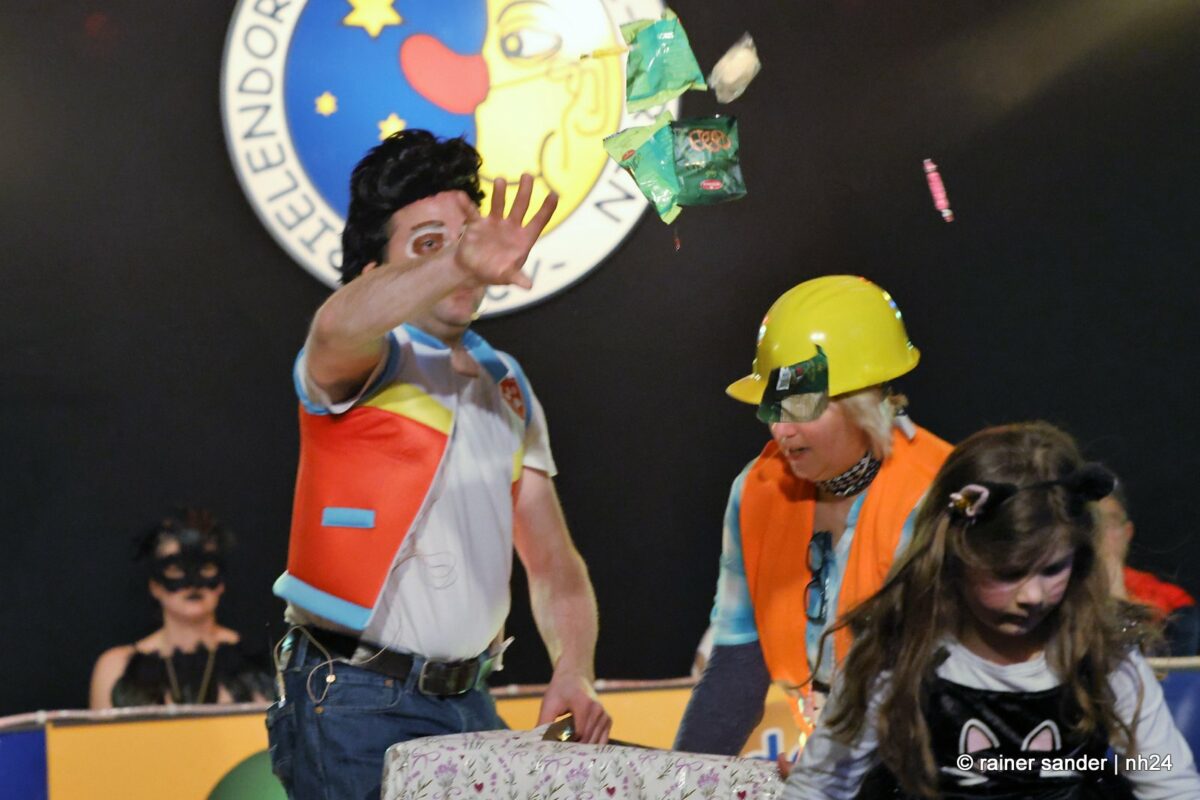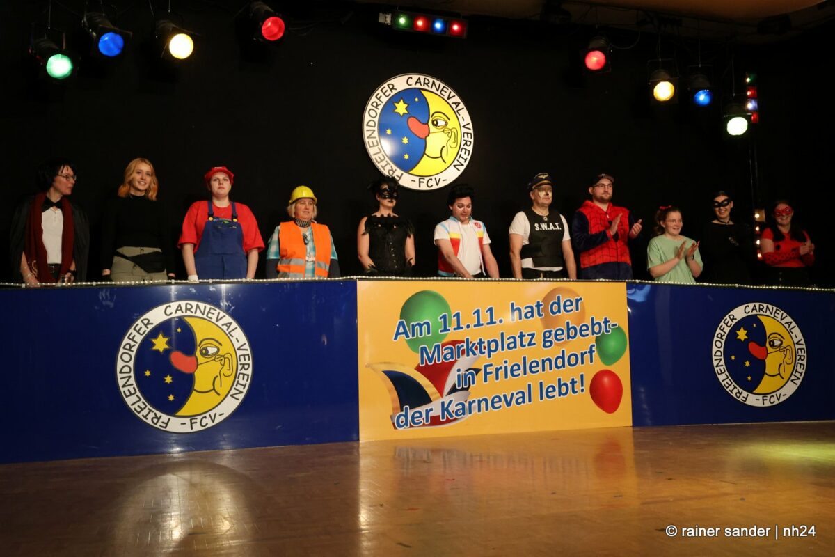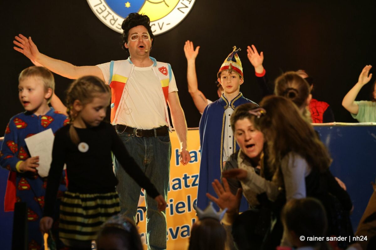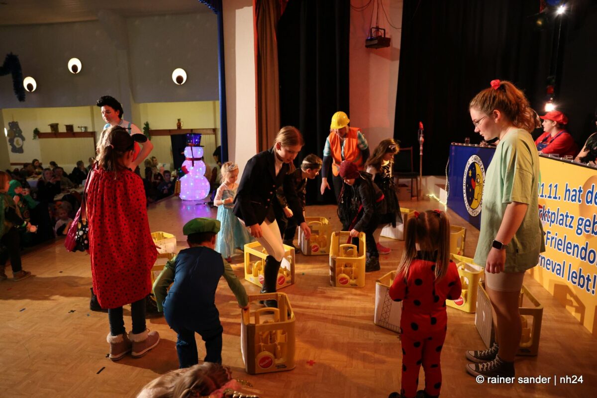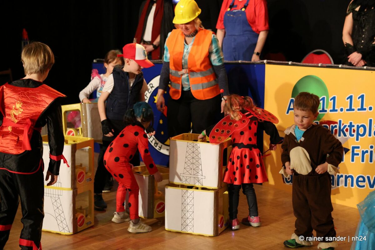 FRIELENDORF. Die Superhelden waren gekommen. Schnell stürmten Einhörner die Bühne, lauschten Ninja Turtles den Worten von Kinderkarneval-Sitzungspräsident Joachim Etzel, tobten Fabelwesen durch die Stuhlreihen und schließlich spielten Miraculous Ladybugs mit Eisköniginnen auf der Bühne um die Wette beim Bauen von Eiffeltürmen, Big Bens oder dem Erraten von Superheldentitelmelodien.