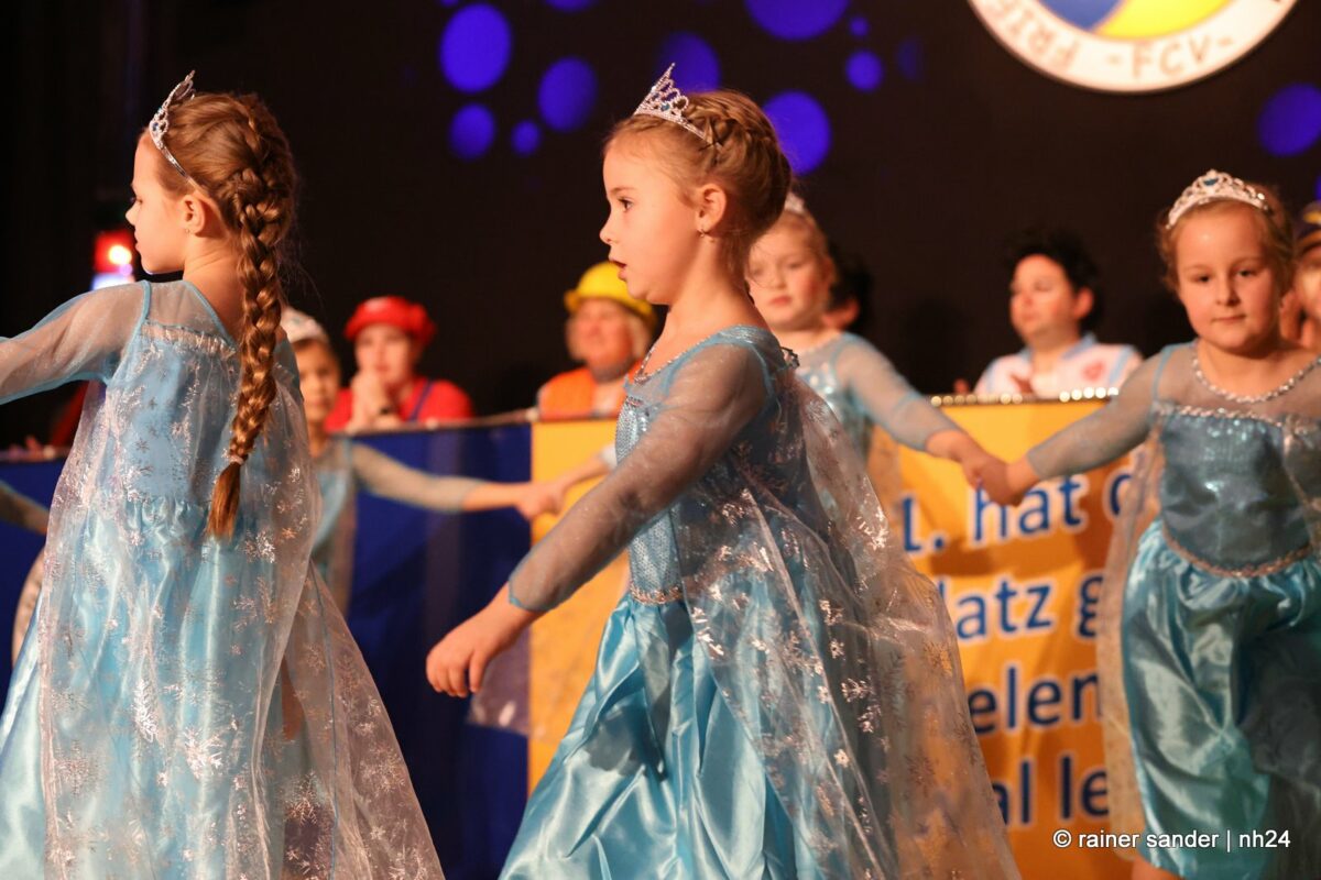 Superhelden war dieses Jahr das Thema und so sah es im Saal auch aus. Schwer zu sagen, wer die größten Helden sind. Vielleicht die Garden, die mit ihren Tänzen das Programm bestritten? Allen voran die Jüngsten, die FCV-Minis, die als Elsas über die Bühne schwebten und den Saal mit Eisköniginnen-Magie verzauberten.