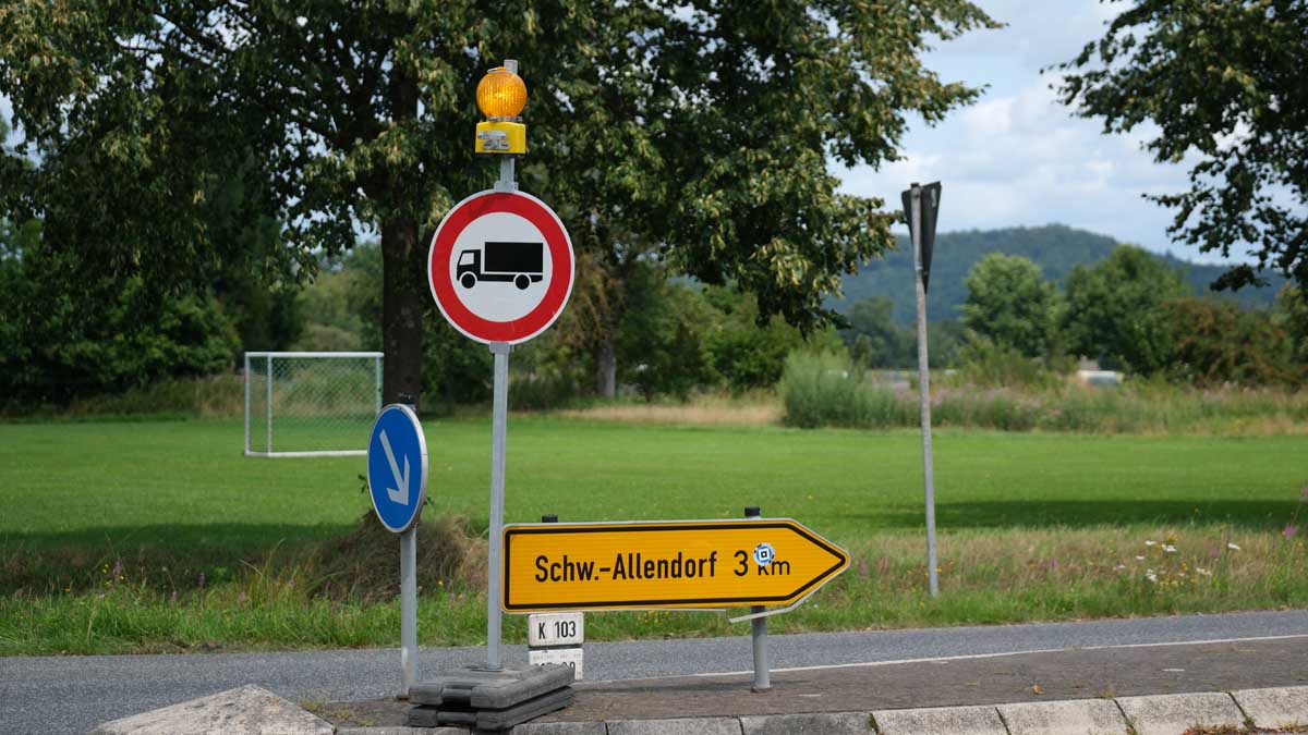 Am Montagabend nutzte mindestens ein Sattelzugfahrer statt der ausgeschilderten Umleitungsstrecke die Verbindung über Schwalmstadt-Treysa nach Allendorf. Das Fahrzeug war zu hoch für die Bahnunterführung nach der scharfen Rechtskurve vor Allendorf und stoppte rechtzeitig. Der Lkw blockierte über einen längeren Zeitraum die Fahrbahn, musste rückwärts fahren und dann wenden.