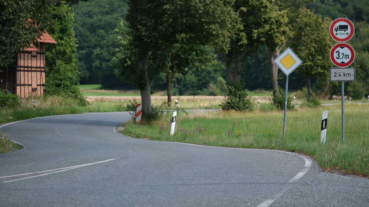 Heute morgen um 3 uhr kommen mir 3 40 Tonner aus Dittershausen Richtung Elenrode hinter dem Wald entgegen. Die Straße ist für 2 Auto im Gegenverkehr schon eng und dann noch 3 Lkw wo soll man da noch hin .