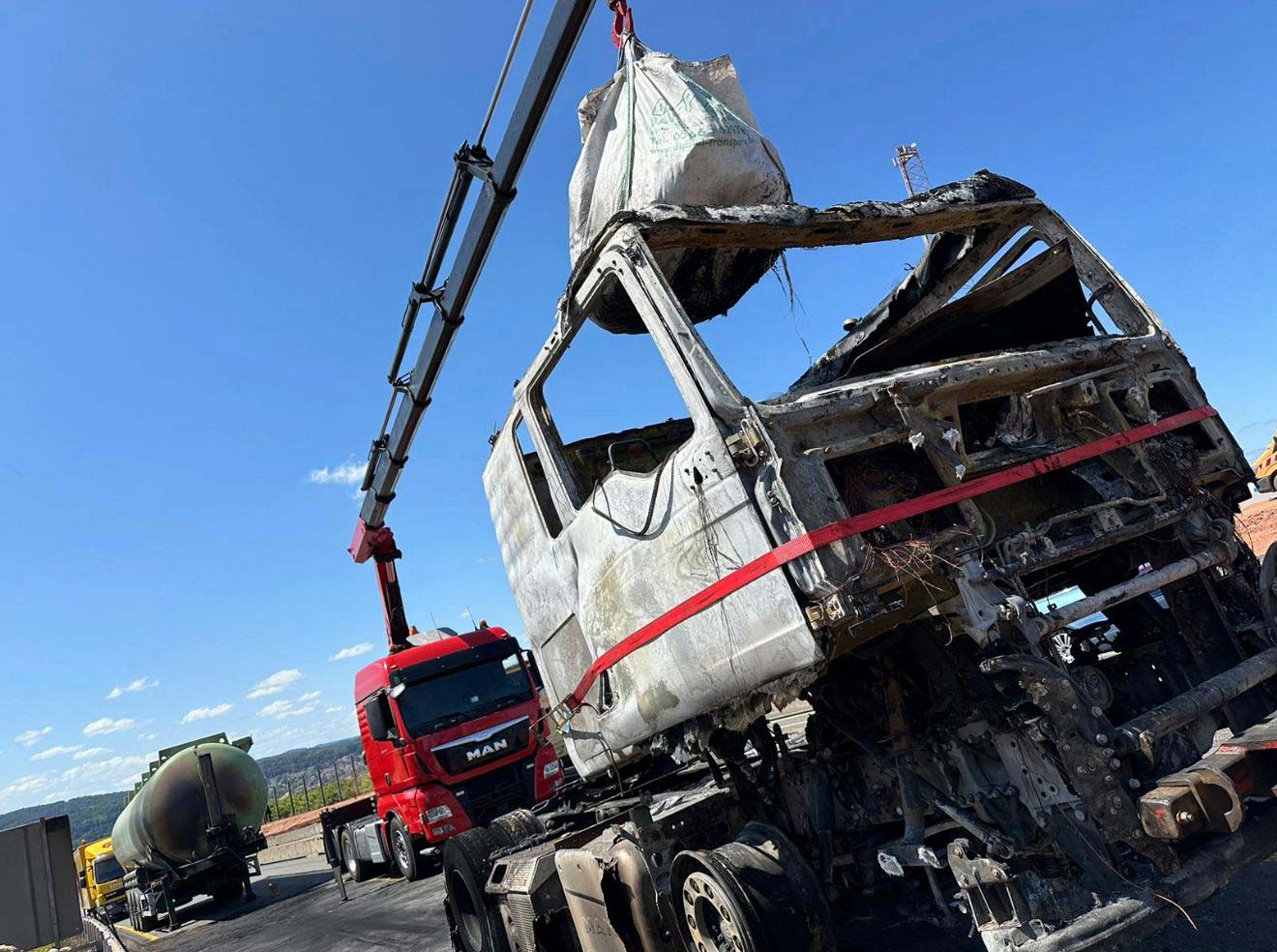 Der Fahrer stoppte das Fahrzeug umgehend und versuchte, den Brand mit einem Feuerlöscher zu bekämpfen. Die Flammen breiteten sich jedoch rasch aus, sodass die Sattelzugmaschine vollständig in Brand geriet.