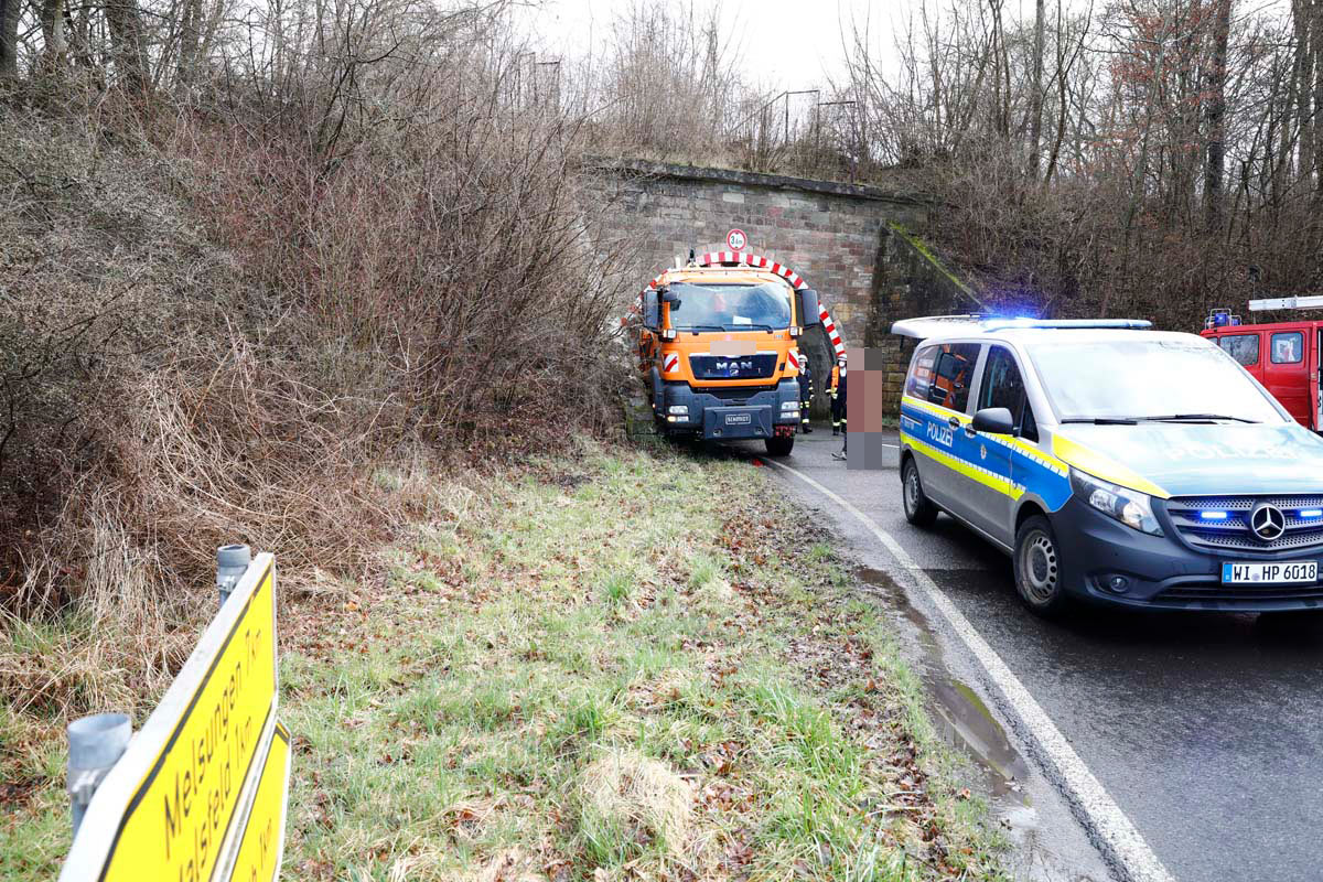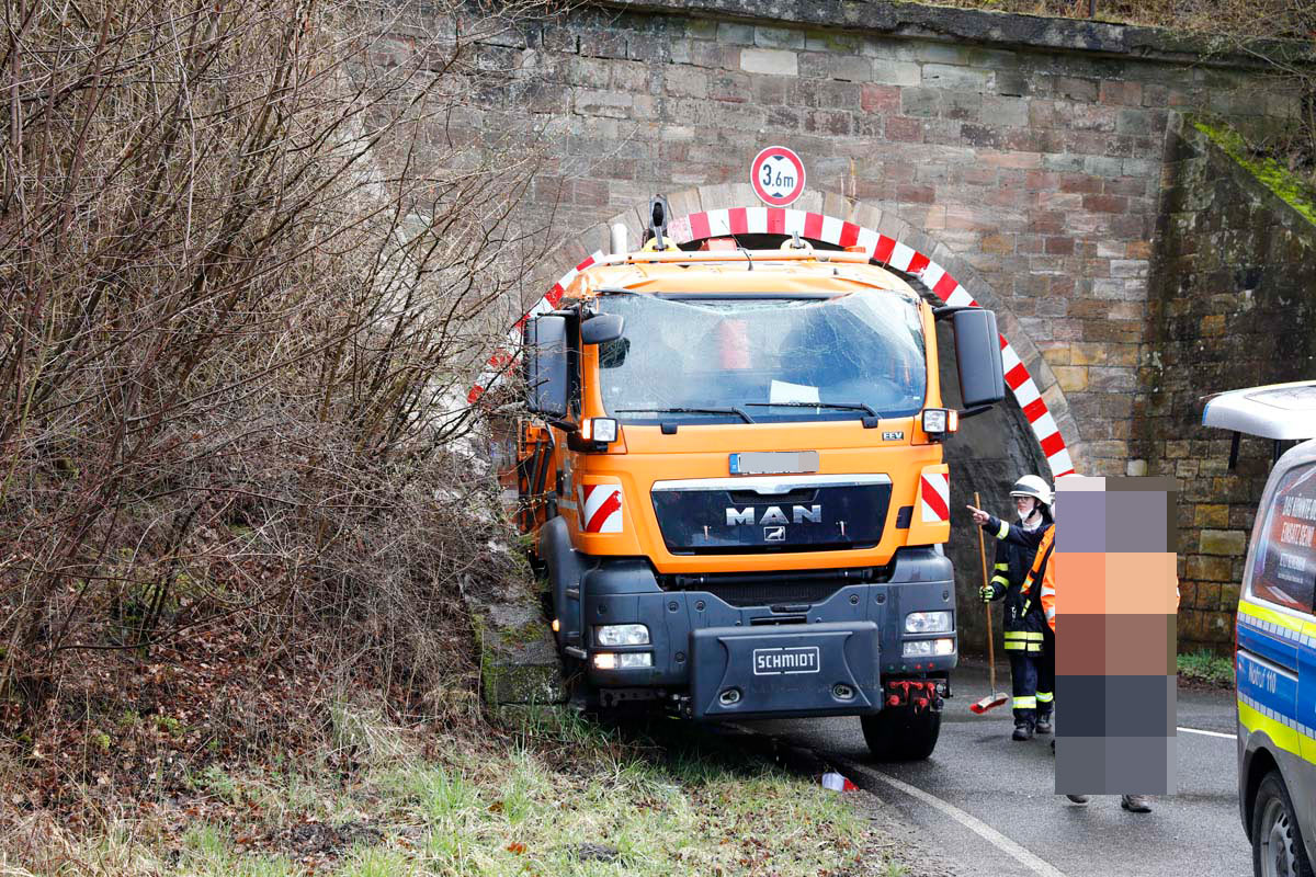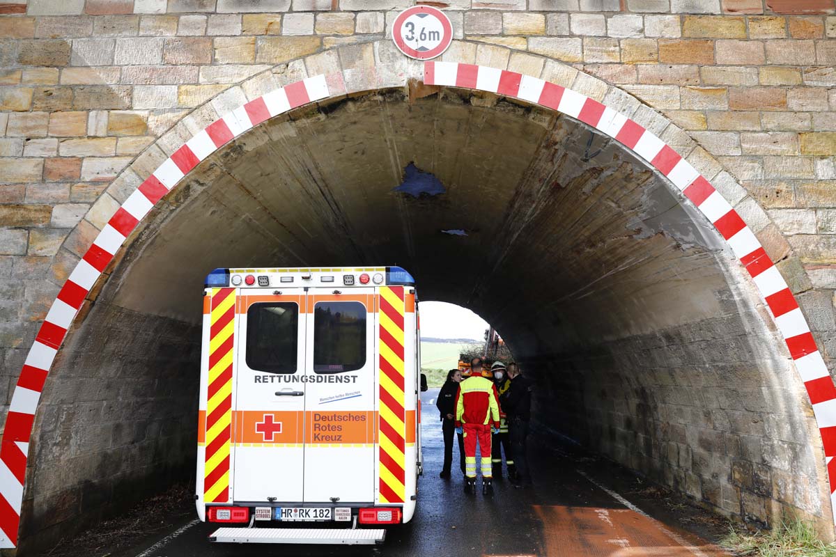 Der Fahrer des Lkw, ein 60-Jähriger aus Melsungen, war gegen 14:20 Uhr auf dem Weg von Beiseförth in Richtung Malsfeld. Geladen hatte der Lkw mit Ladekran Geäst und der Kran sollte vermutlich dazu dienen, die Ladung zu sichern. Am Ortsausgang von Beiseföhrt gibt das Schild eine maximale Durchfahrtshöhe von 3,60 Meter für die ehemalige Eisenbahnunterführung an.
