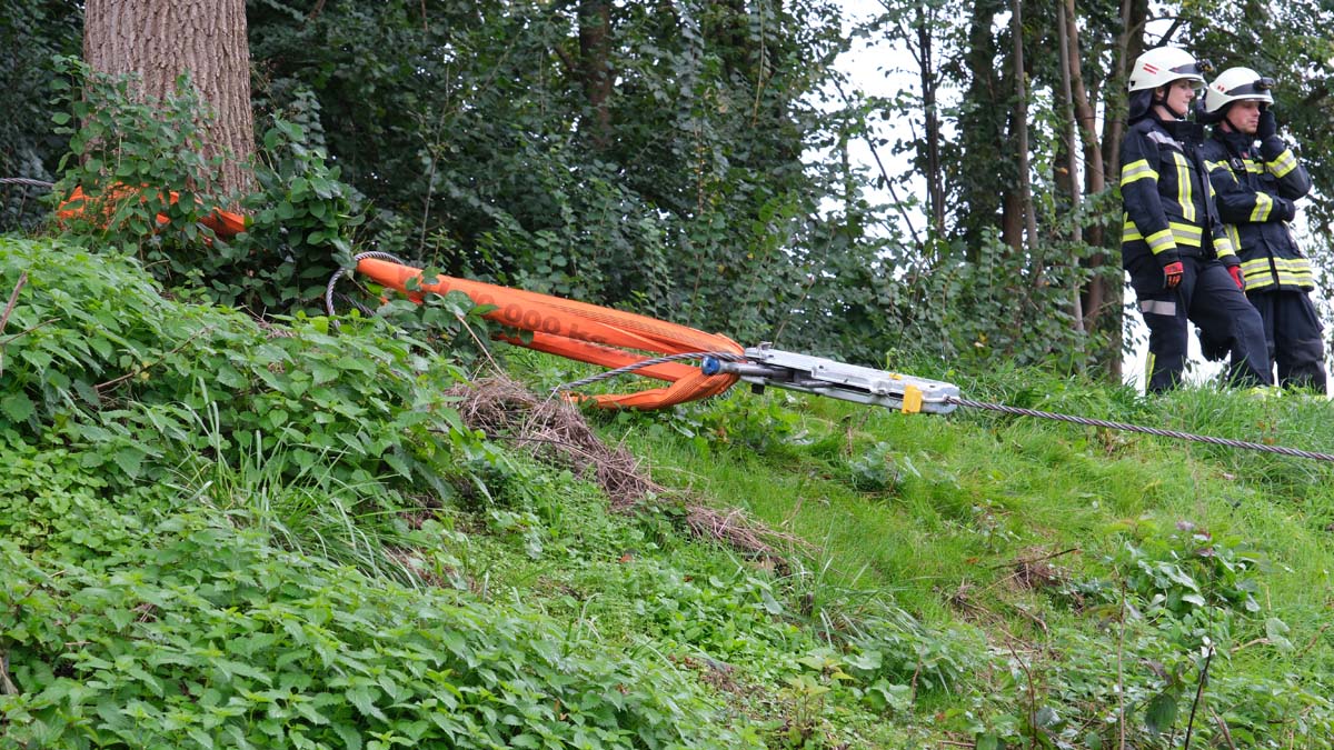 Die alarmierten Feuerwehrleute sicherten den Lkw, dessen Tank rund 20.000 Liter Heizöl fasst, und stellten eine Leiter an, damit das Rettungsdienstpersonal über die geöffnete Tür der Beifahrerseite in das Fahrerhaus gelangen und den Mann versorgen konnte.