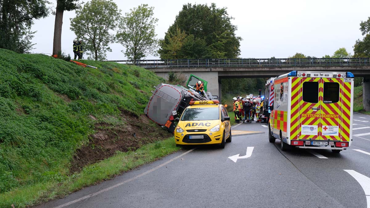 Laut Hombergs Stadtbrandinspektor Jörg Rohde, der den Einsatz leitete, blieben sowohl der Heizöltank als auch der Kraftstofftank des Lkw bei dem Unfall unbeschädigt, sodass keine weiteren Maßnahmen erforderlich waren. Die 18 Feuerwehrleute sperrten die Straße, stellten den Brandschutz sicher und retteten den Fahrer.