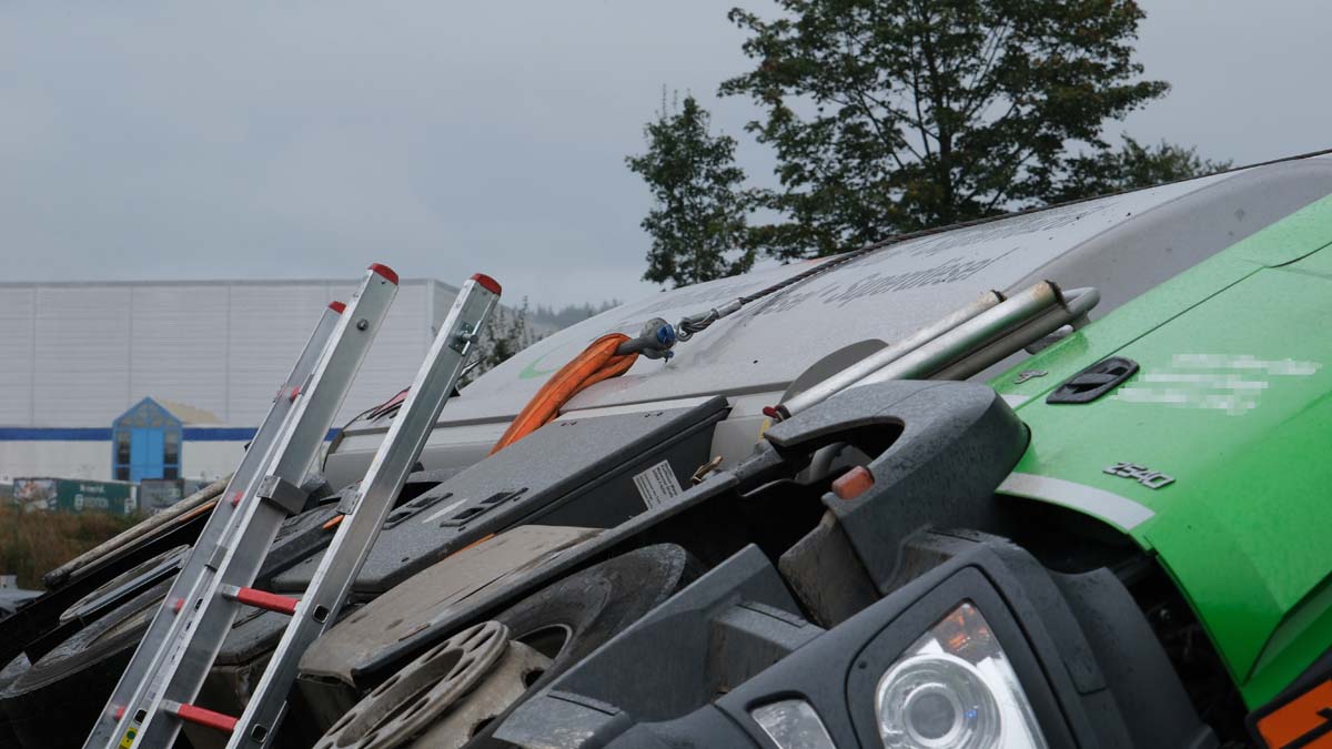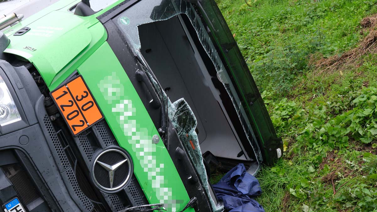 Nachdem die Windschutzscheibe herausgeschnitten worden war, konnte der Fahrer aus dem Lkw befreit werden.