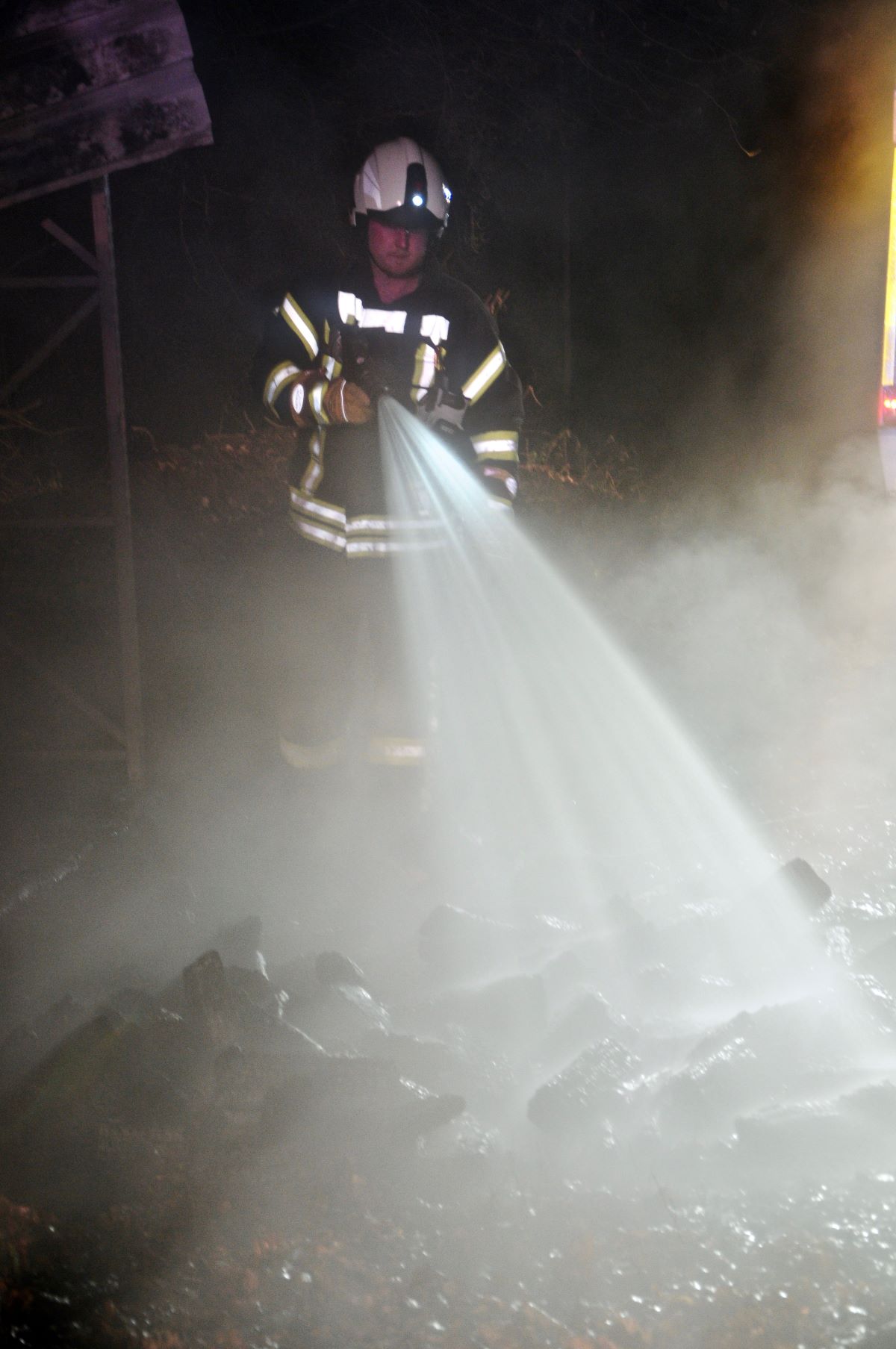 Am Ende eines Feldweges, welcher sich in der Verlängerung des Grenzweges in Waltersbrück befindet, brannten bei der Ankunft der Einsatzkräfte in einem Unterstand zwei Holzkisten mit Brennholz lichterloh. Mit insgesamt 3200 Litern Wasser aus dem Tanklöschfahrzeug Zimmersrode und dem Löschfahrzeug aus Schlierbach wurde das in Brand geratene Brennholz gelöscht. Auch der Unterstand wurde durch das Feuer erheblich in Mitleidenschaft gezogen.