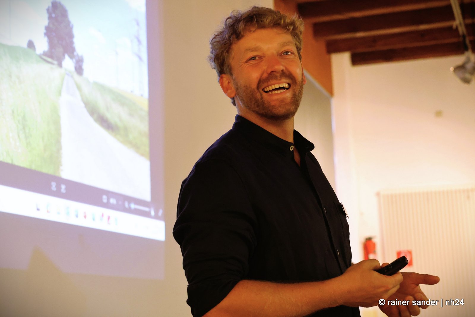 Simon Geiselsöder, unüberhörbar Franke und Projektentwickler bei der EAM, lässt keinen Zweifel daran zu, dass er nicht nur weiß, sondern auch liebt und lebt, was er tut. „Schön, dass so viele hier sind!“ Freut er sich und zelebriert seine Präsentation schlüssig, schnörkellos und schon mit Antworten auf jedes Gegenargument bewaffnet. Vorher wissen, welche Argumente kommen? Klar! Er hat bereits viele Windenergieanlagen gebaut und jedes sachliche Gegenargument schon Hunderte Male pariert. Er weiß, woran sie juristisch scheitern können, welche Fehler Planer vermeiden müssen und wie viel man in welcher Phase sagt.