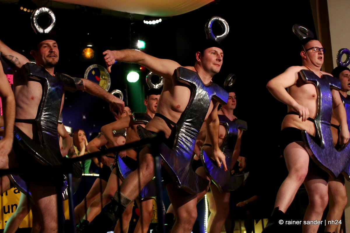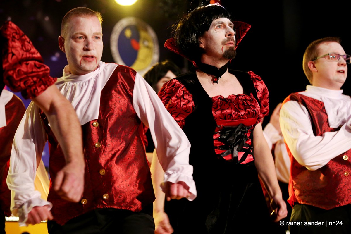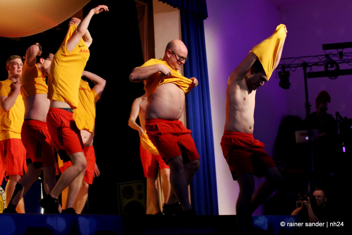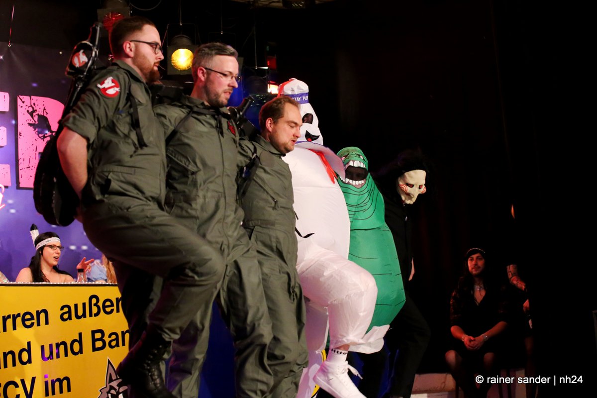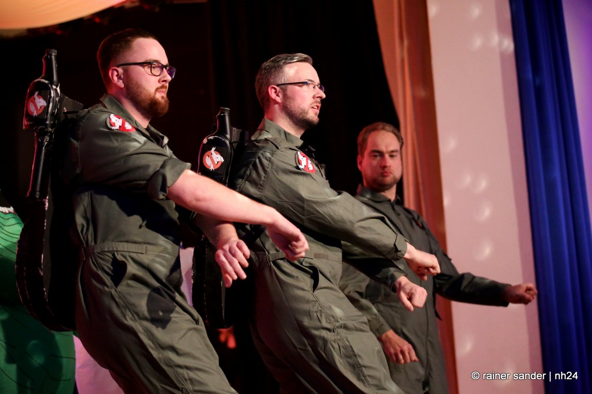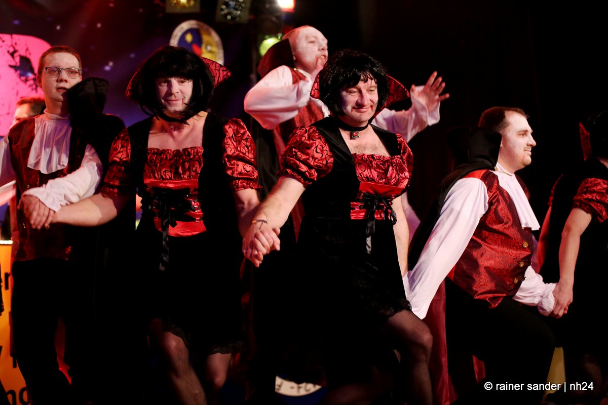 Sie präsentierten an einem Abend acht Männer-Ballett-Gruppen, eine jede anders und jede auf ihre Weise spitze. Zum Auftakt N.A.S.A. aus Röllshausen. Tief in der Schwalm wohnt vermutlich der typische Mallorca-Fahrer, jedenfalls um den ging es in der Show. Die „Jungs“ vom BCC aus Borken sorgten für Gruseln mit ihrer Vampir-/Rocky Horror- und E-Nomine-Dance/Trance-Show. Perfekt getanzt und geil kostümiert! Aus Fürstenhagen am Hohen Meißner kamen die „Unglaublichen“ Ghostbusters. Die Ranzengarde aus Guxhagen brillierte mit einer Breakdance-Einlage – und das bei der Altersspanne…