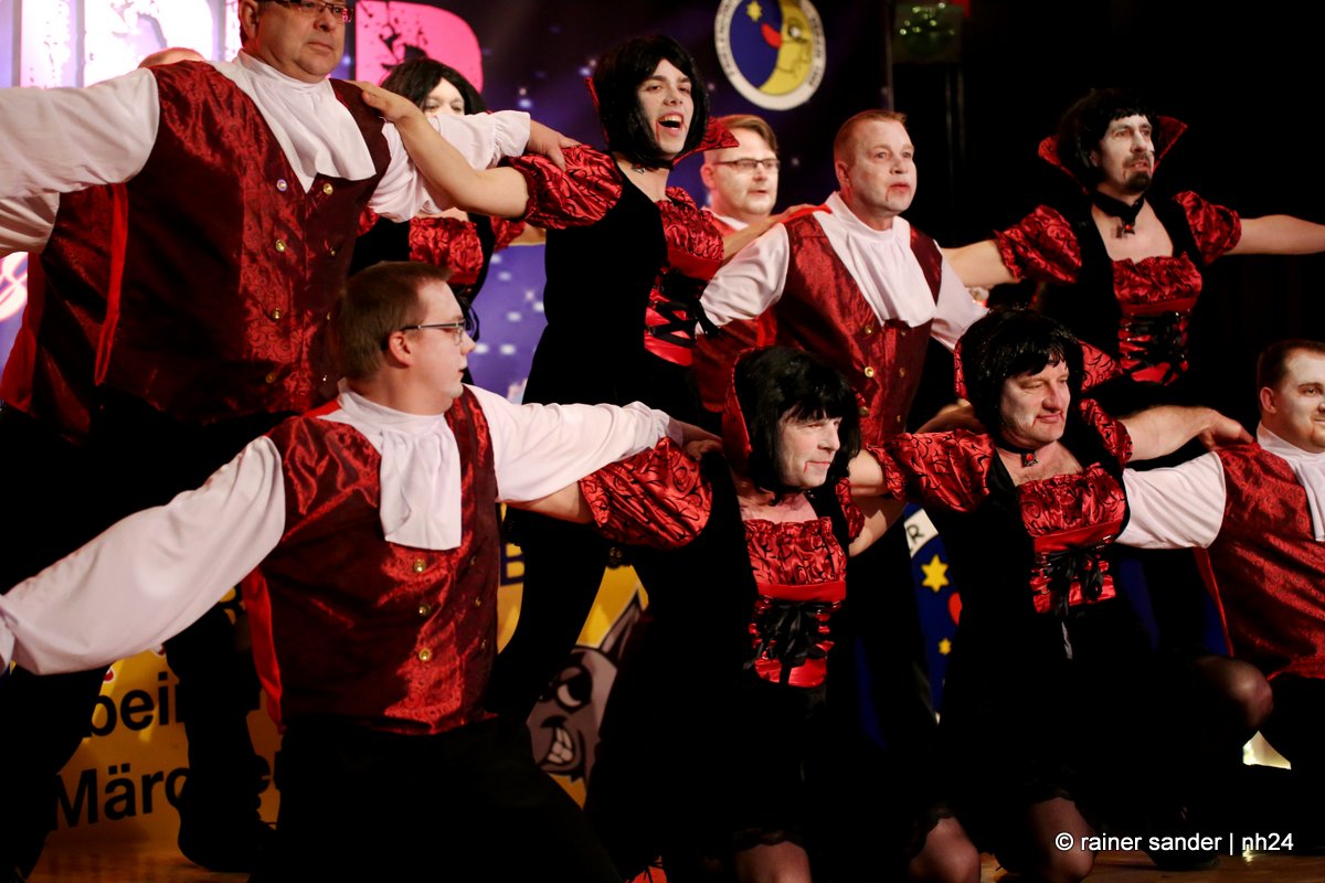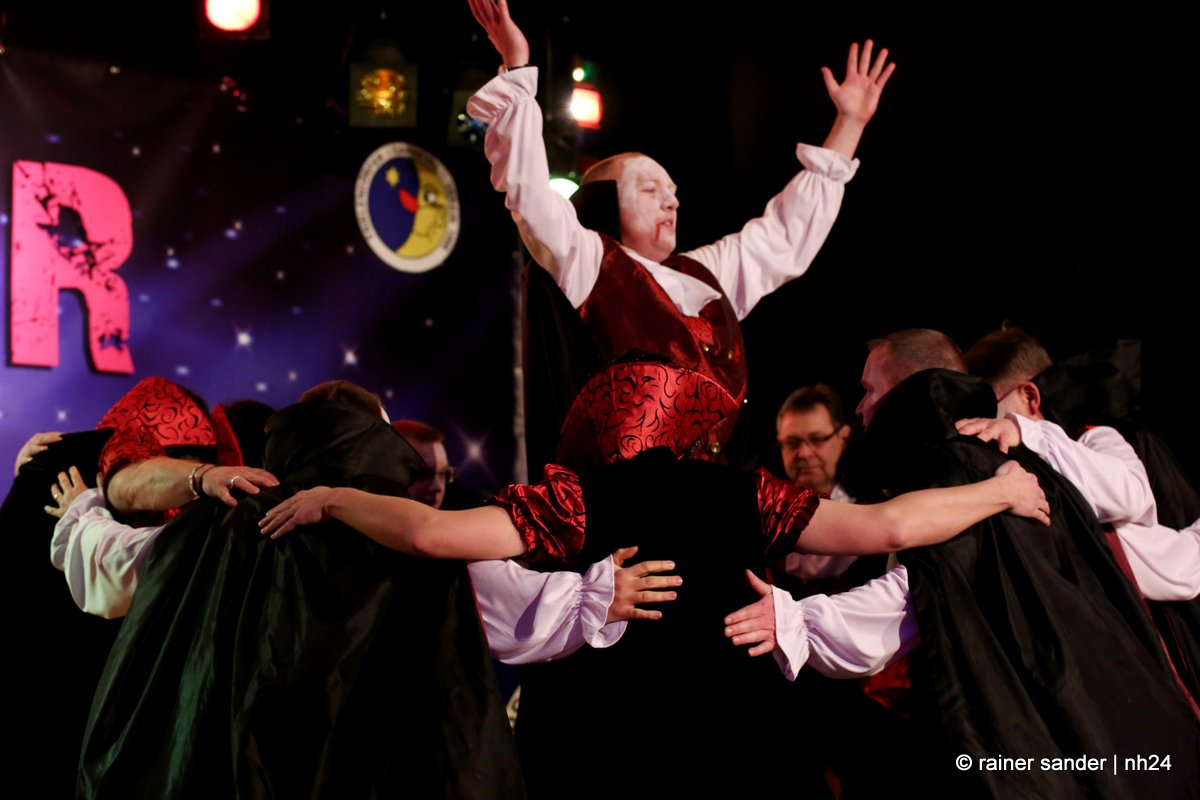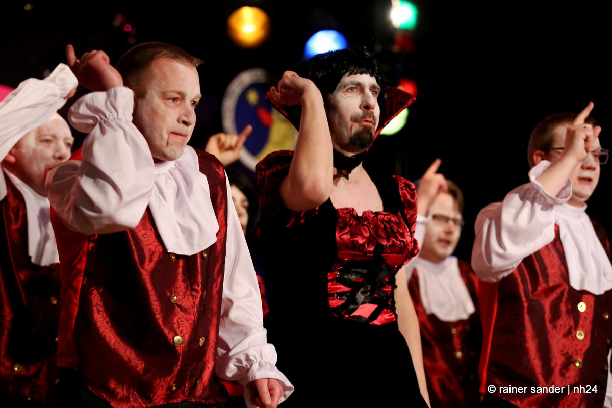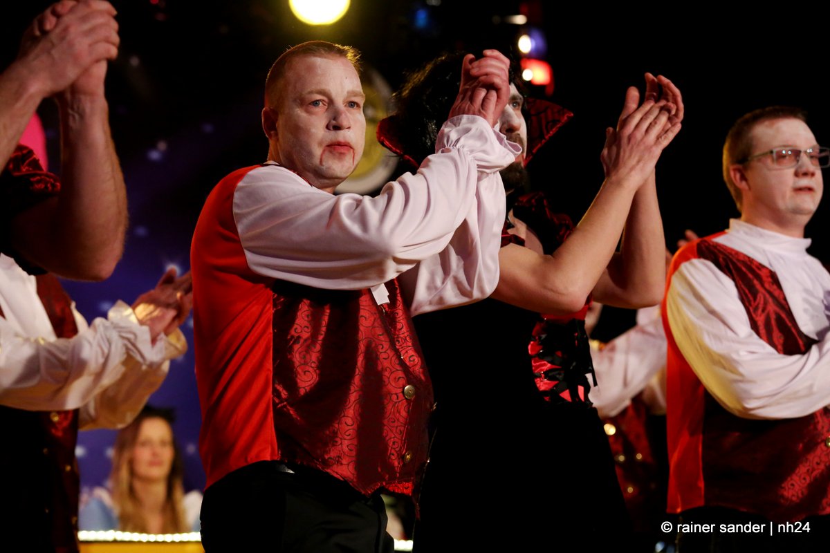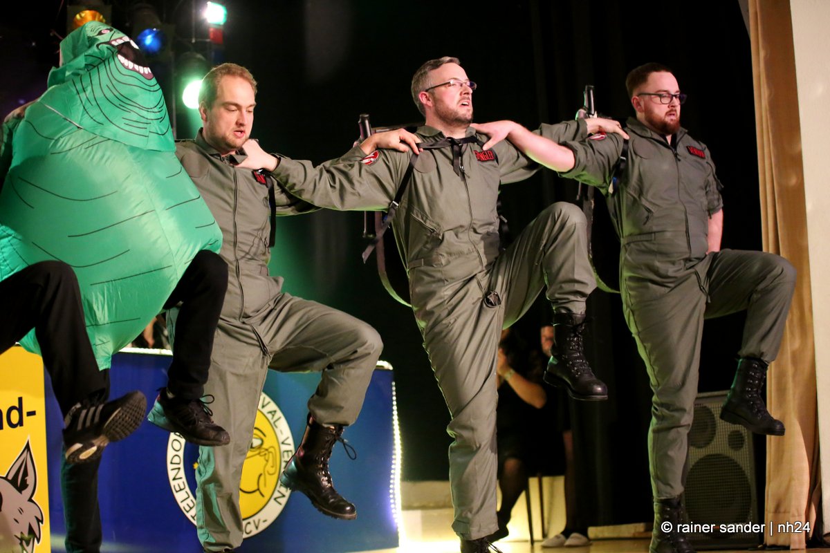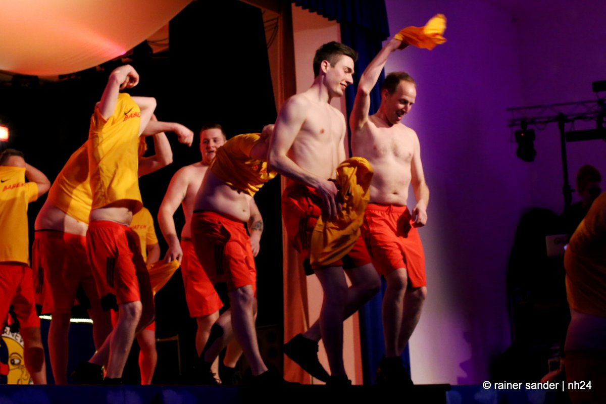Sie präsentierten an einem Abend acht Männer-Ballett-Gruppen, eine jede anders und jede auf ihre Weise spitze. Zum Auftakt N.A.S.A. aus Röllshausen. Tief in der Schwalm wohnt vermutlich der typische Mallorca-Fahrer, jedenfalls um den ging es in der Show. Die „Jungs“ vom BCC aus Borken sorgten für Gruseln mit ihrer Vampir-/Rocky Horror- und E-Nomine-Dance/Trance-Show. Perfekt getanzt und geil kostümiert! Aus Fürstenhagen am Hohen Meißner kamen die „Unglaublichen“ Ghostbusters. Die Ranzengarde aus Guxhagen brillierte mit einer Breakdance-Einlage – und das bei der Altersspanne…