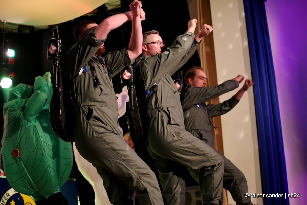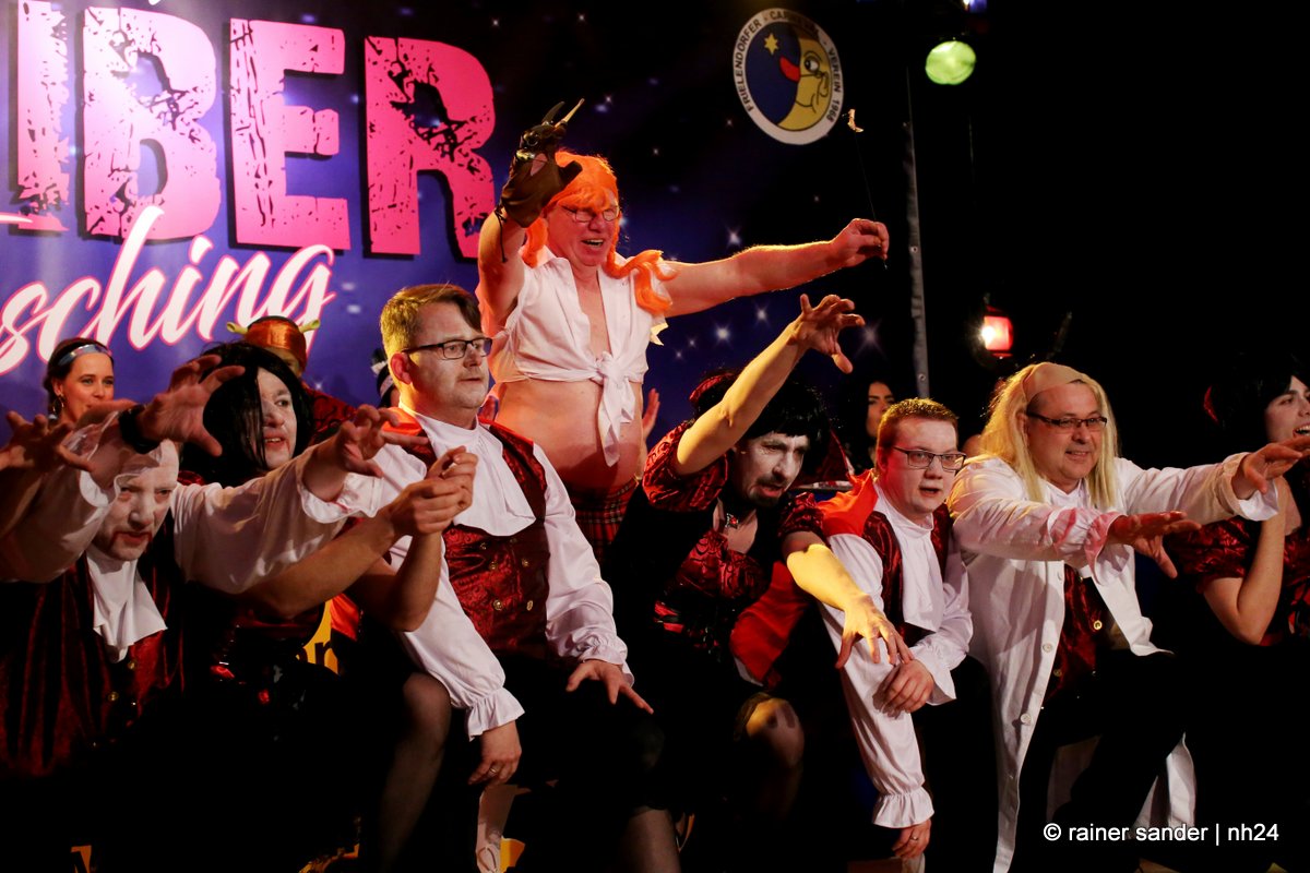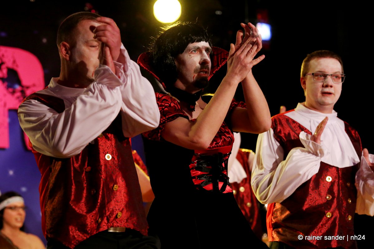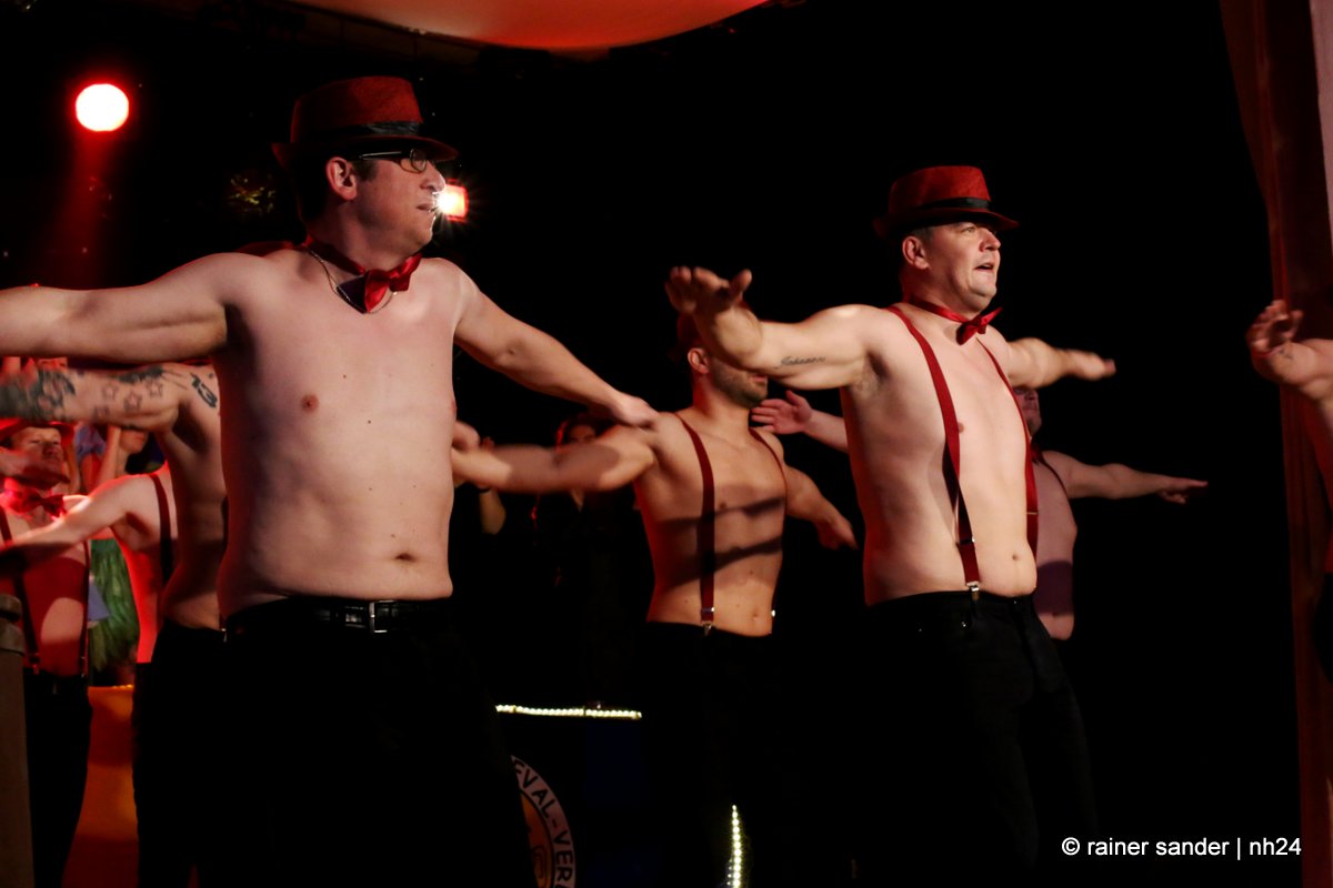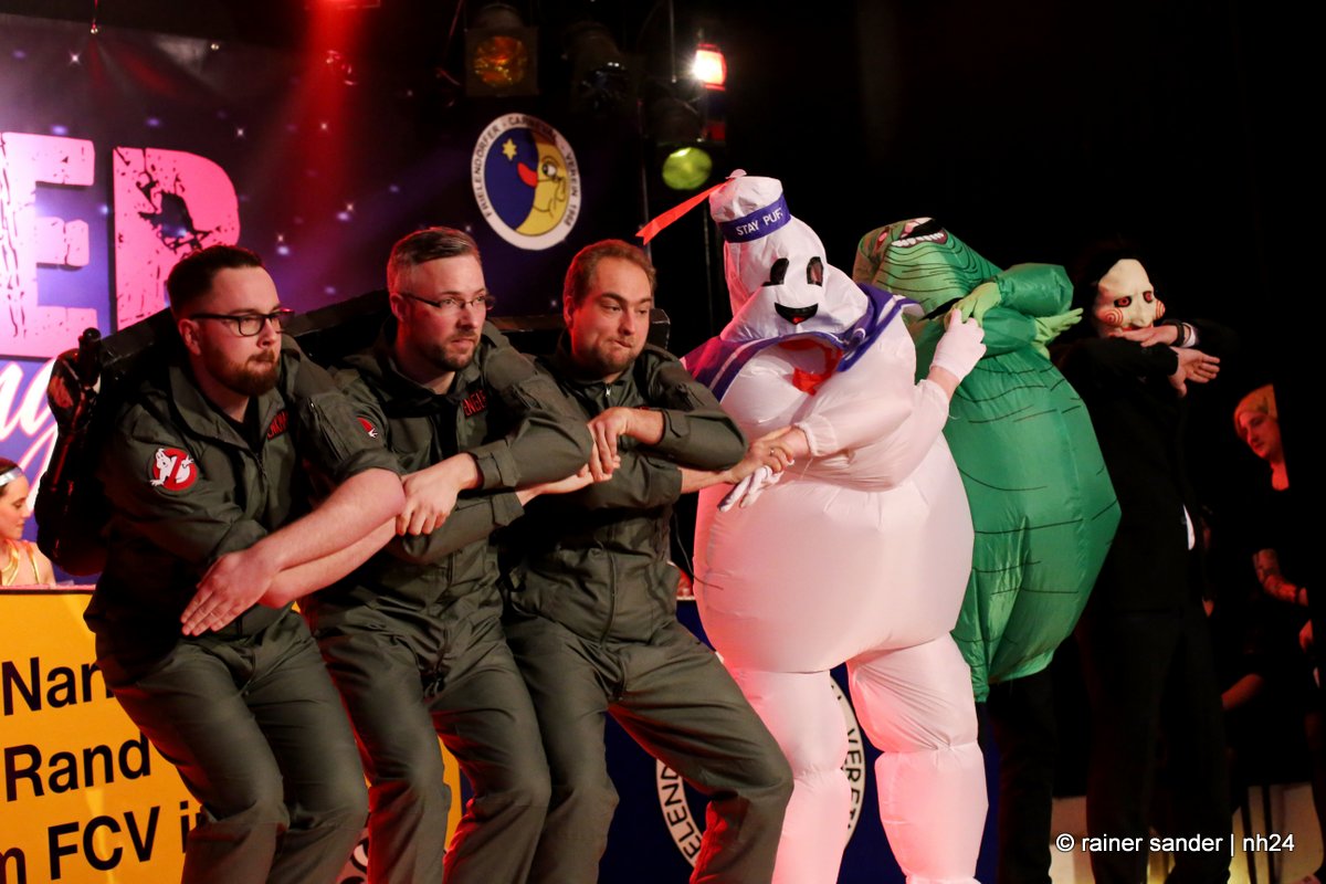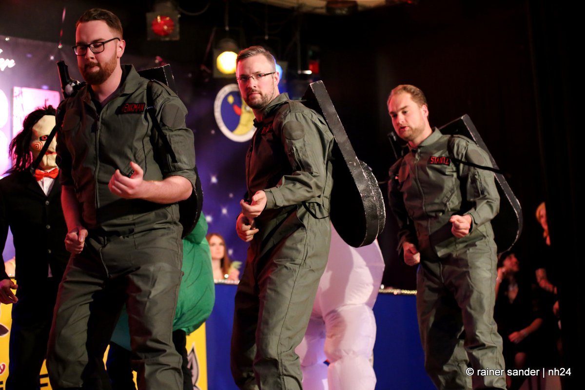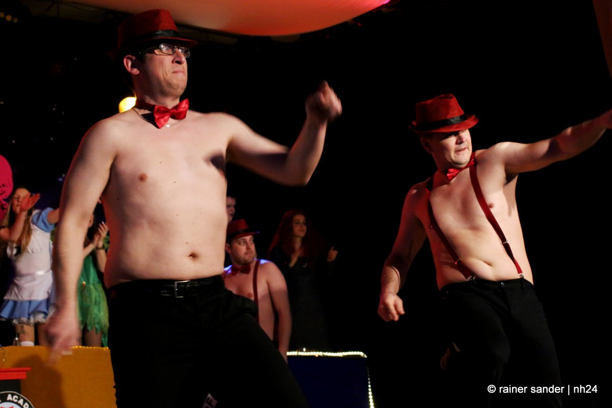 Sie präsentierten an einem Abend acht Männer-Ballett-Gruppen, eine jede anders und jede auf ihre Weise spitze. Zum Auftakt N.A.S.A. aus Röllshausen. Tief in der Schwalm wohnt vermutlich der typische Mallorca-Fahrer, jedenfalls um den ging es in der Show. Die „Jungs“ vom BCC aus Borken sorgten für Gruseln mit ihrer Vampir-/Rocky Horror- und E-Nomine-Dance/Trance-Show. Perfekt getanzt und geil kostümiert! Aus Fürstenhagen am Hohen Meißner kamen die „Unglaublichen“ Ghostbusters. Die Ranzengarde aus Guxhagen brillierte mit einer Breakdance-Einlage – und das bei der Altersspanne…