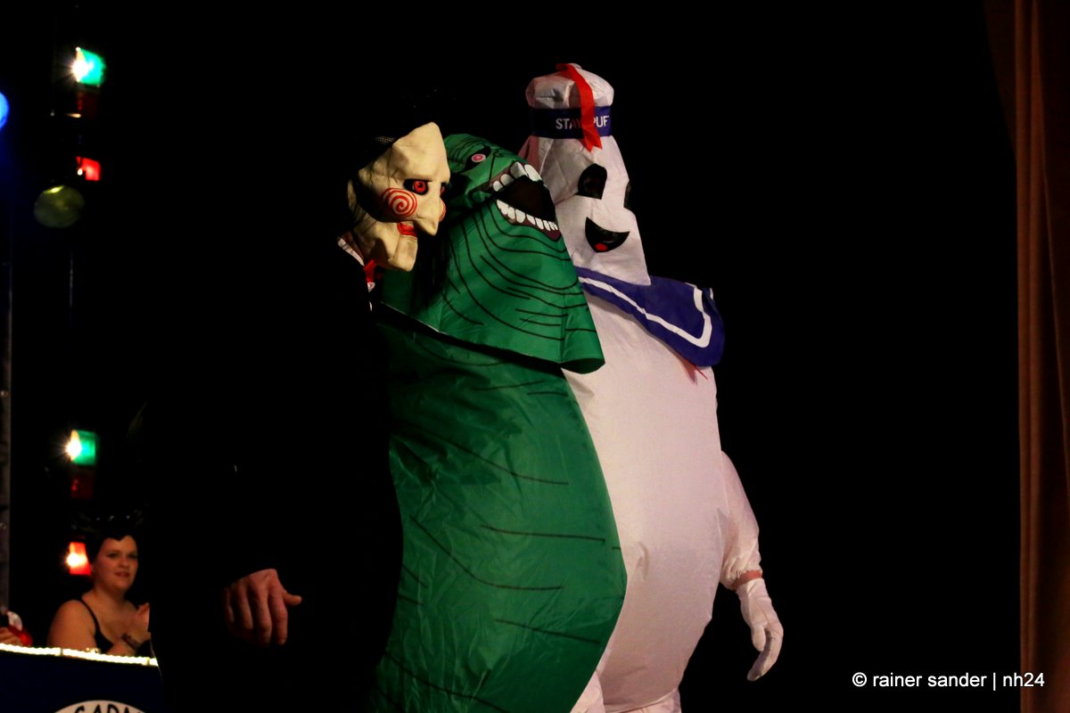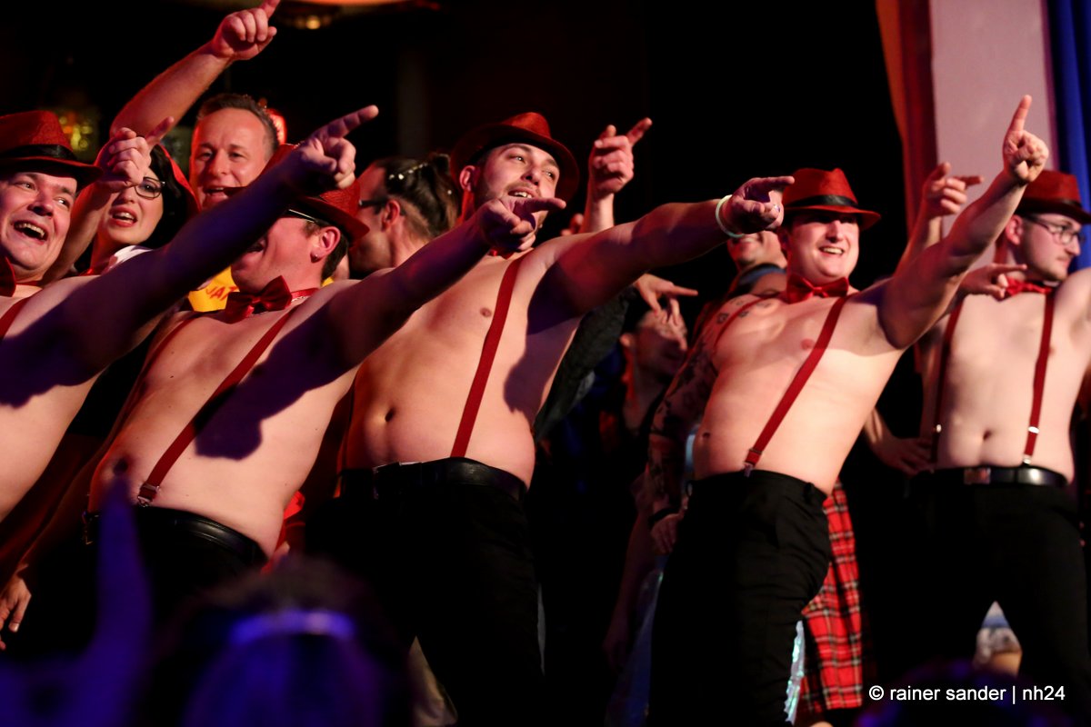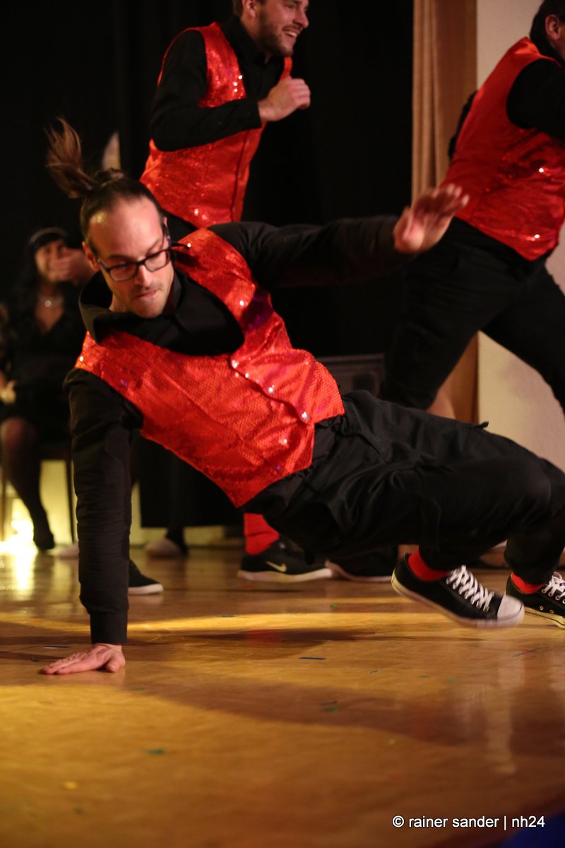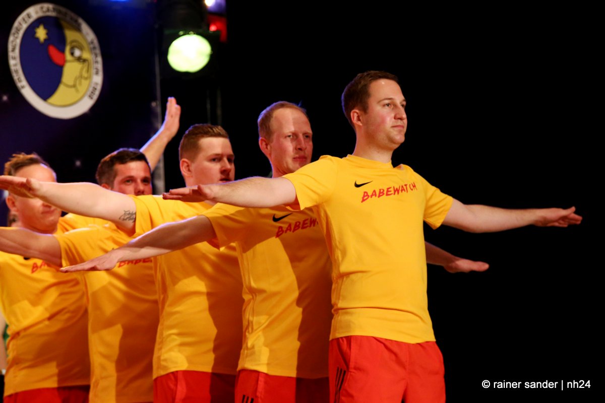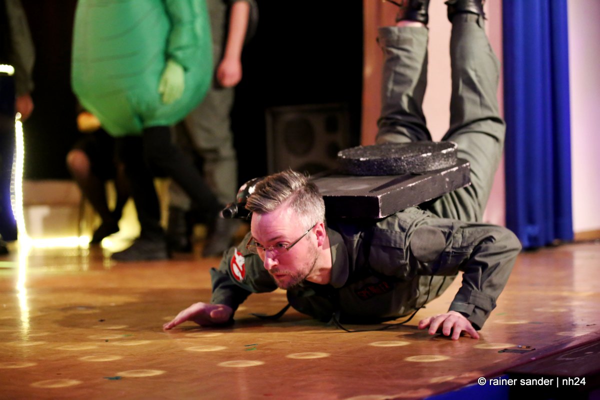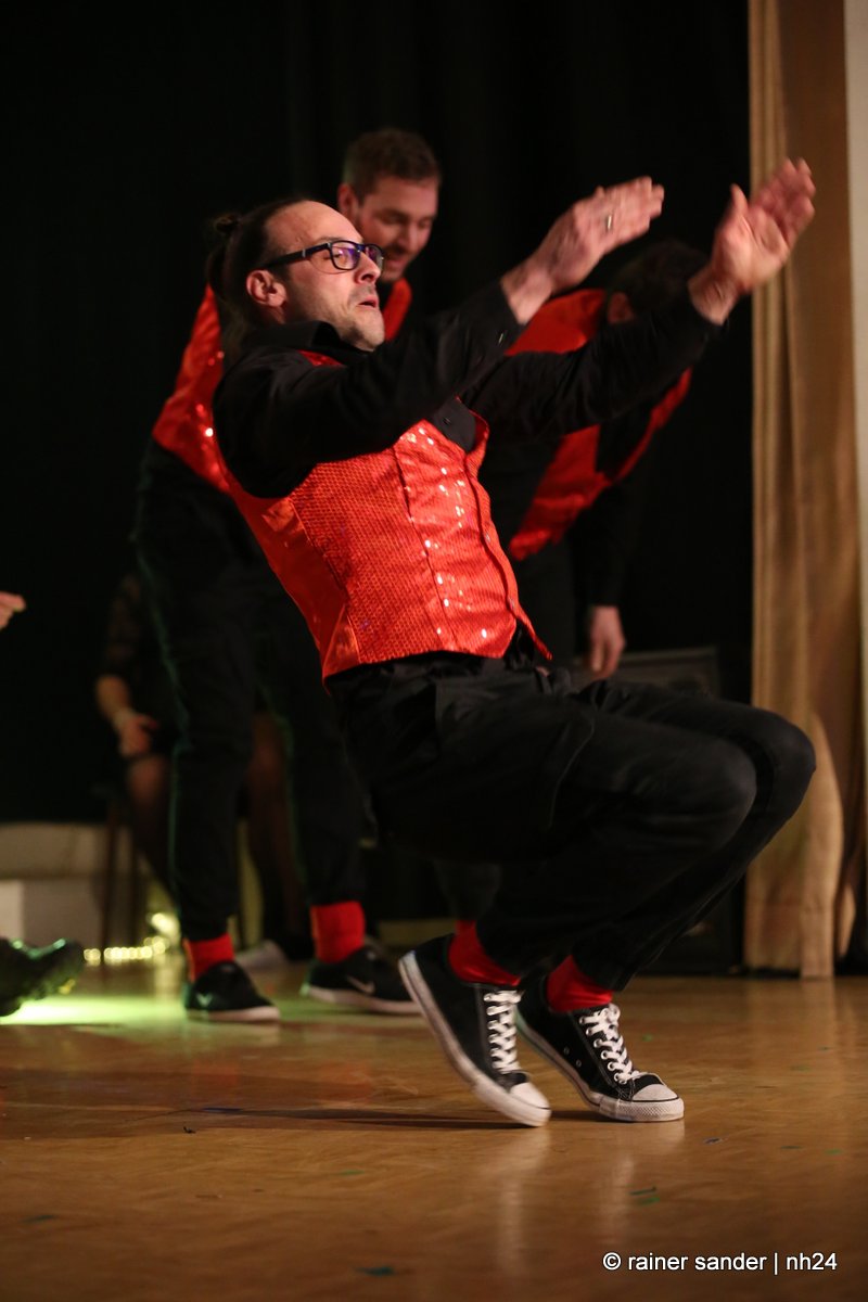 Sie präsentierten an einem Abend acht Männer-Ballett-Gruppen, eine jede anders und jede auf ihre Weise spitze. Zum Auftakt N.A.S.A. aus Röllshausen. Tief in der Schwalm wohnt vermutlich der typische Mallorca-Fahrer, jedenfalls um den ging es in der Show. Die „Jungs“ vom BCC aus Borken sorgten für Gruseln mit ihrer Vampir-/Rocky Horror- und E-Nomine-Dance/Trance-Show. Perfekt getanzt und geil kostümiert! Aus Fürstenhagen am Hohen Meißner kamen die „Unglaublichen“ Ghostbusters. Die Ranzengarde aus Guxhagen brillierte mit einer Breakdance-Einlage – und das bei der Altersspanne…
