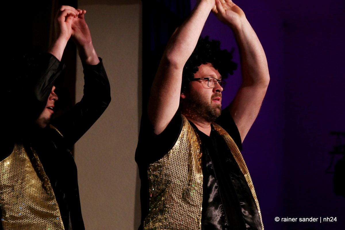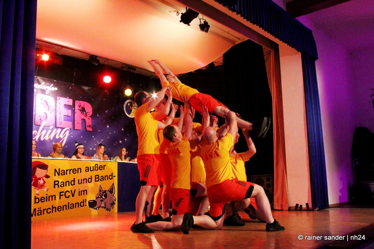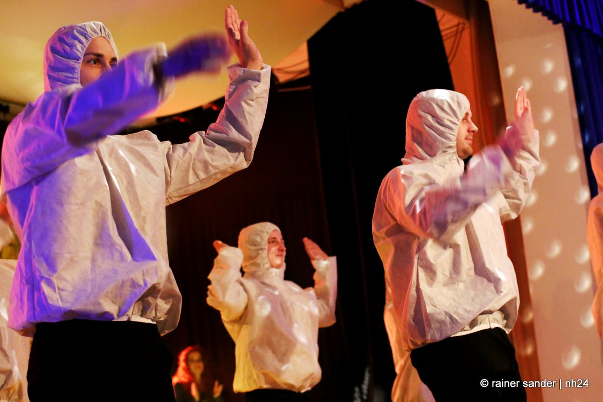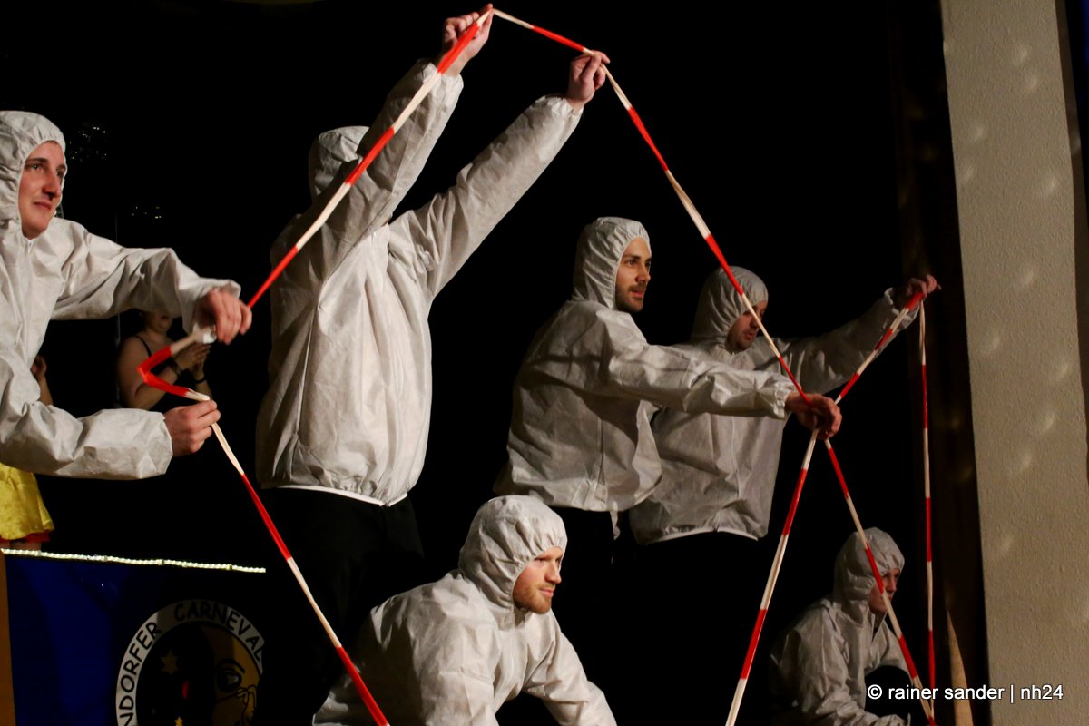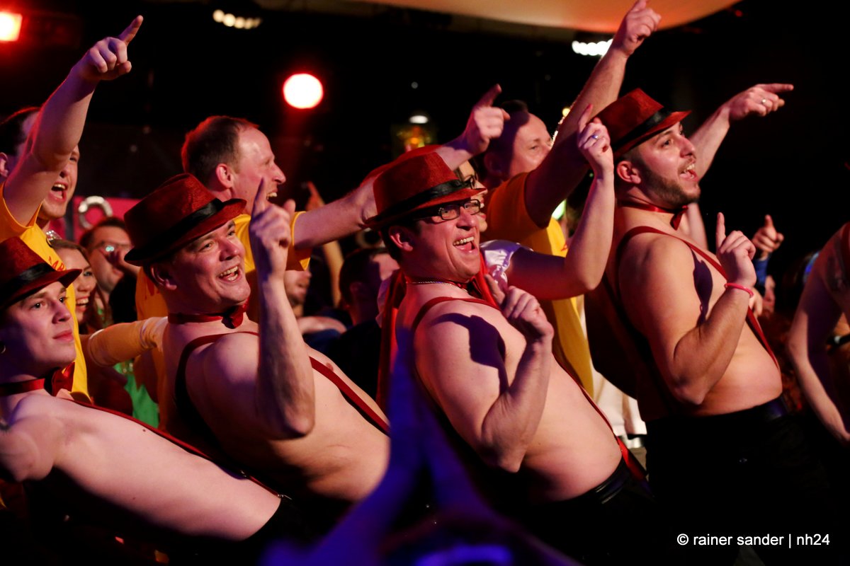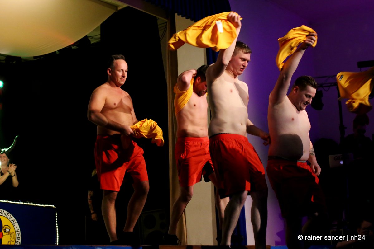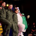Sie präsentierten an einem Abend acht Männer-Ballett-Gruppen, eine jede anders und jede auf ihre Weise spitze. Zum Auftakt N.A.S.A. aus Röllshausen. Tief in der Schwalm wohnt vermutlich der typische Mallorca-Fahrer, jedenfalls um den ging es in der Show. Die „Jungs“ vom BCC aus Borken sorgten für Gruseln mit ihrer Vampir-/Rocky Horror- und E-Nomine-Dance/Trance-Show. Perfekt getanzt und geil kostümiert! Aus Fürstenhagen am Hohen Meißner kamen die „Unglaublichen“ Ghostbusters. Die Ranzengarde aus Guxhagen brillierte mit einer Breakdance-Einlage – und das bei der Altersspanne…