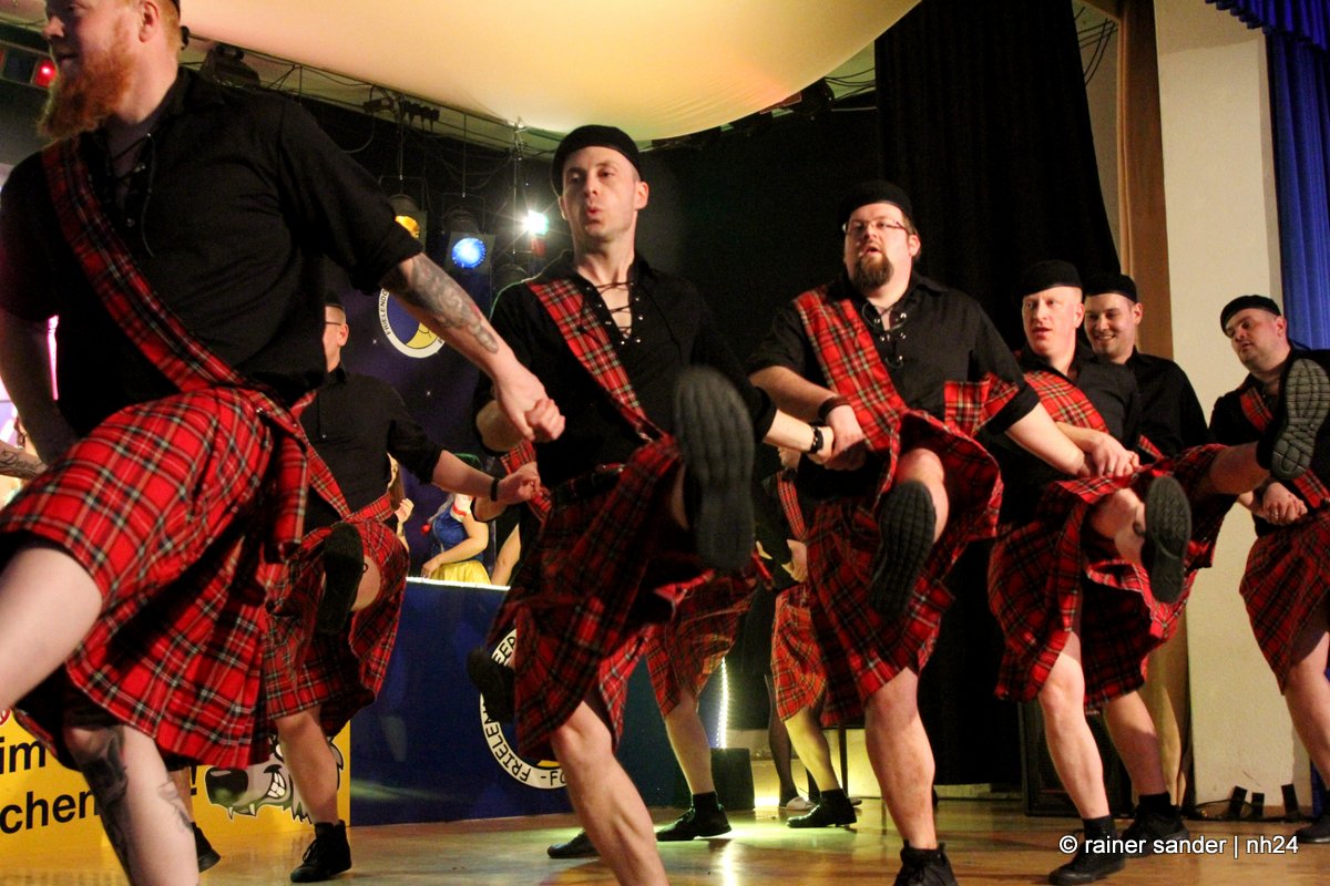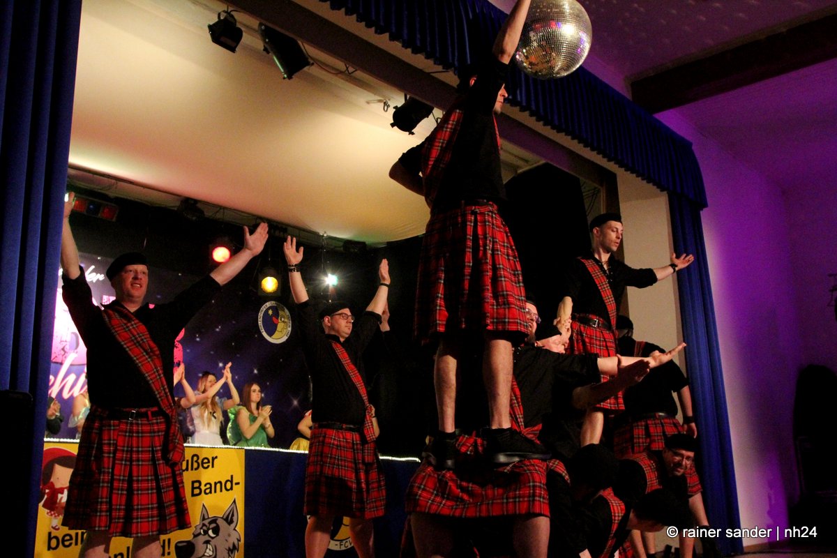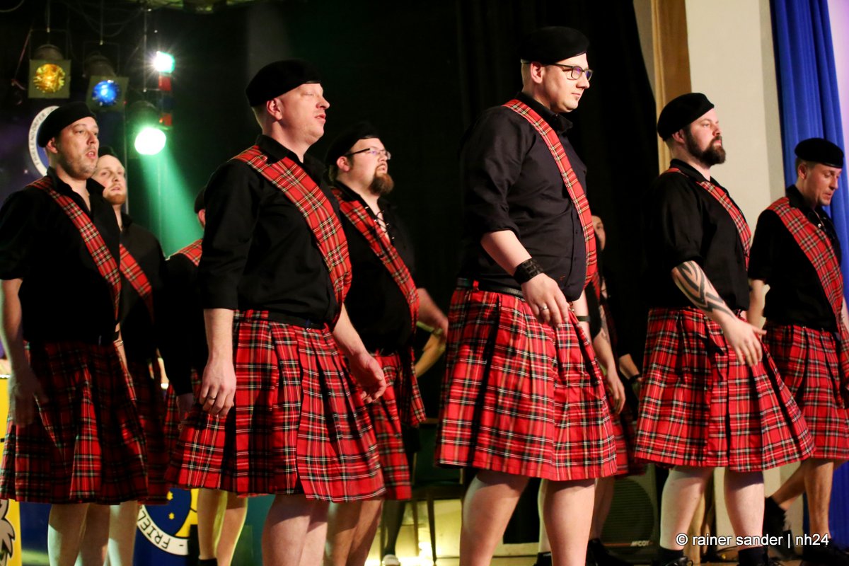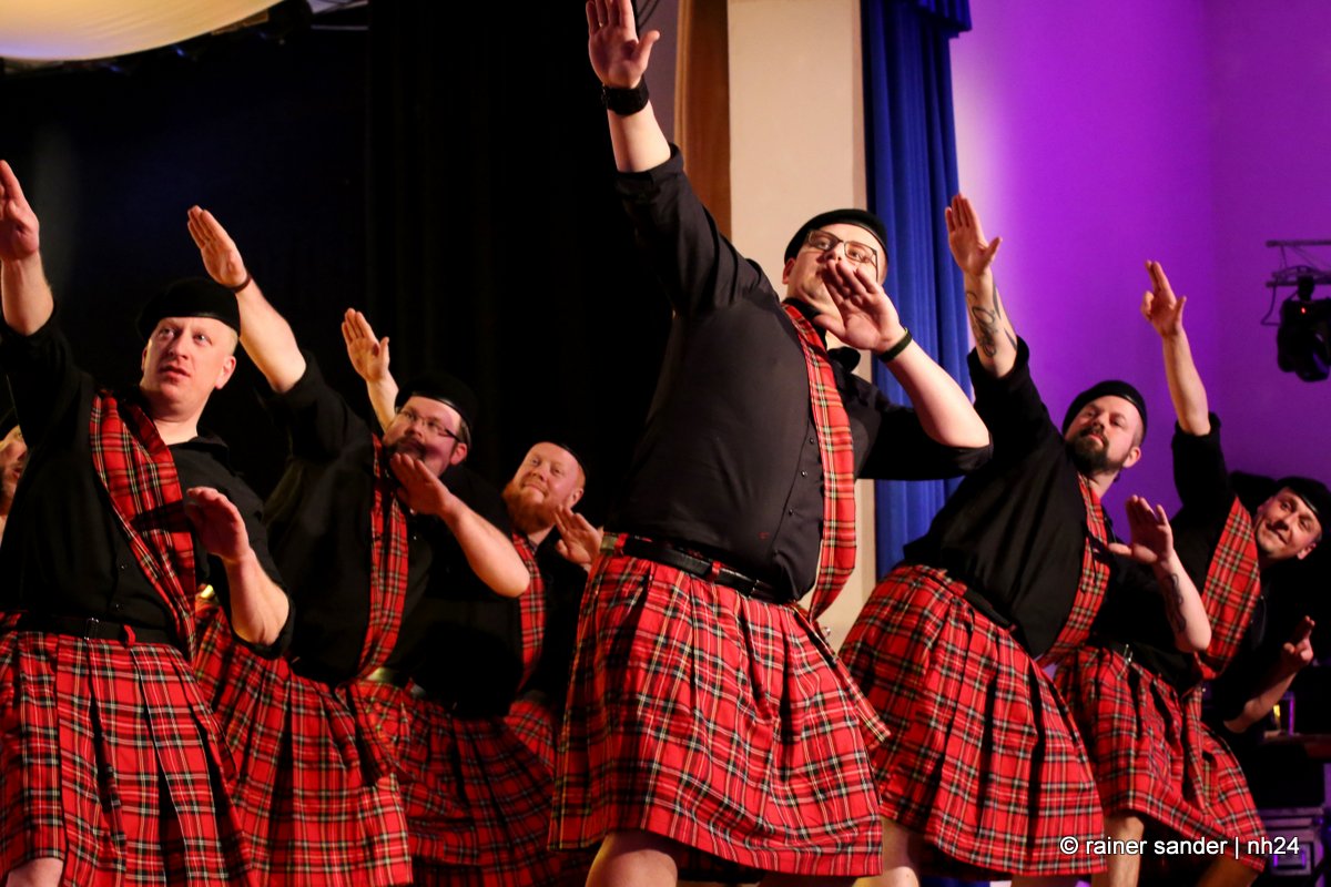 Die Gazellen aus Treysa bauten im Saal die Davidswache auf und entführten die Damenwelt auf die Reeperbahn nachts um halb eins. Aus Empfershausen (Körle) kommen die, wo der ICE im Stundentakt über die die Brücke im Fuldatal donnert. Vielleicht kommt man nur mit dieser Unruhe auf eine verrückt-schöne Idee mit der Muppet-Show. Die Schoppendales aus Gemünden kamen in Röcken. In Schottenröcken. „Scotland The Brave!“ Klar, aus dem Hochland kommen Highlander, was sonst…