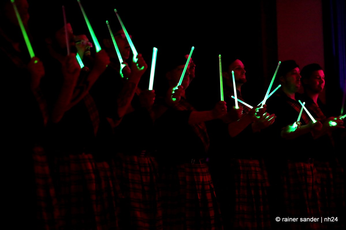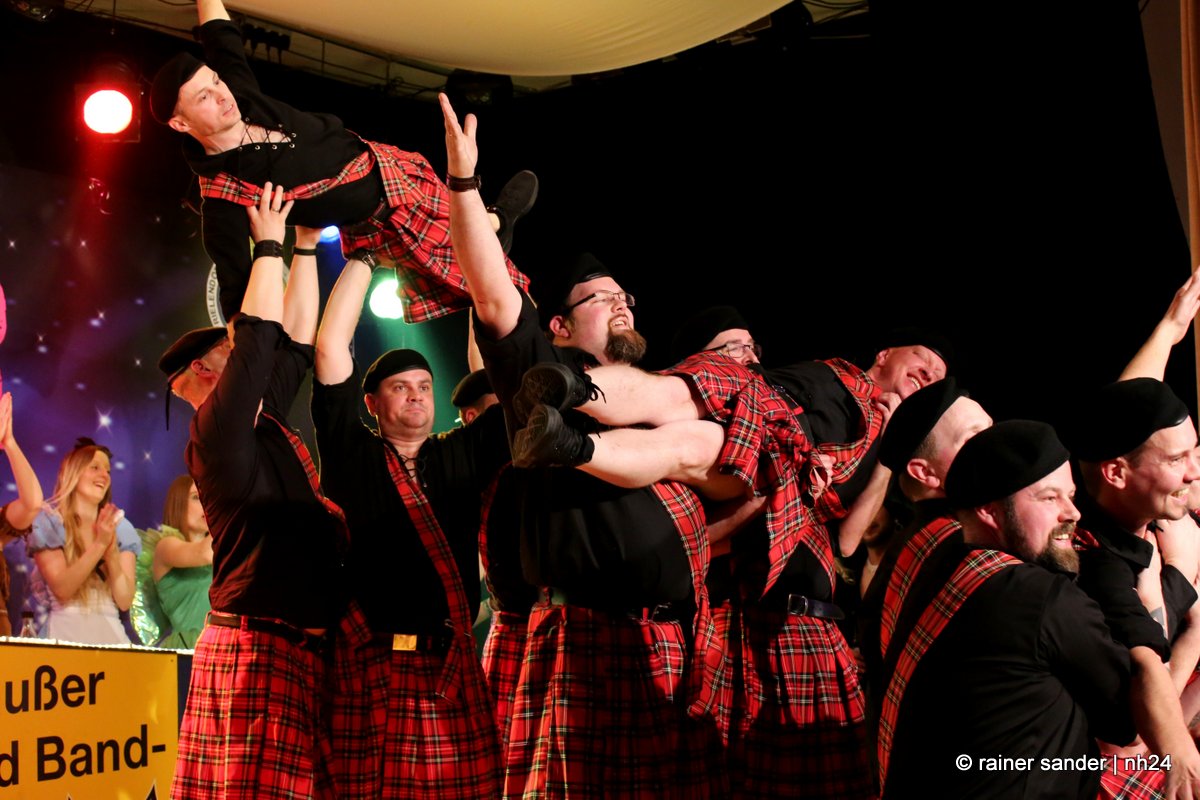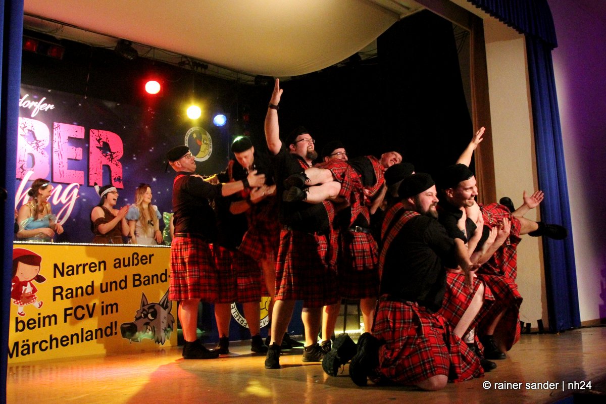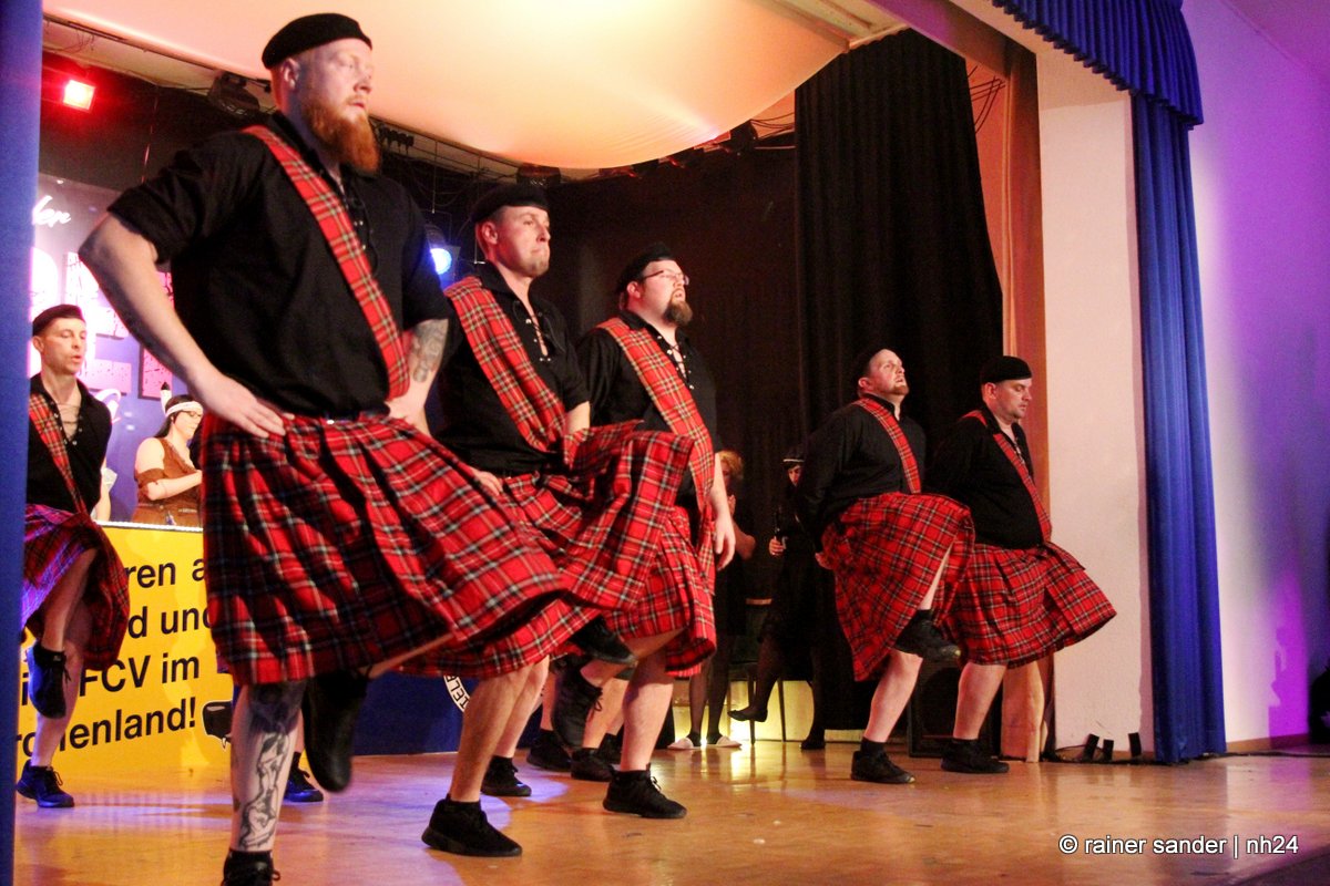 Die Gazellen aus Treysa bauten im Saal die Davidswache auf und entführten die Damenwelt auf die Reeperbahn nachts um halb eins. Aus Empfershausen (Körle) kommen die, wo der ICE im Stundentakt über die die Brücke im Fuldatal donnert. Vielleicht kommt man nur mit dieser Unruhe auf eine verrückt-schöne Idee mit der Muppet-Show. Die Schoppendales aus Gemünden kamen in Röcken. In Schottenröcken. „Scotland The Brave!“ Klar, aus dem Hochland kommen Highlander, was sonst…