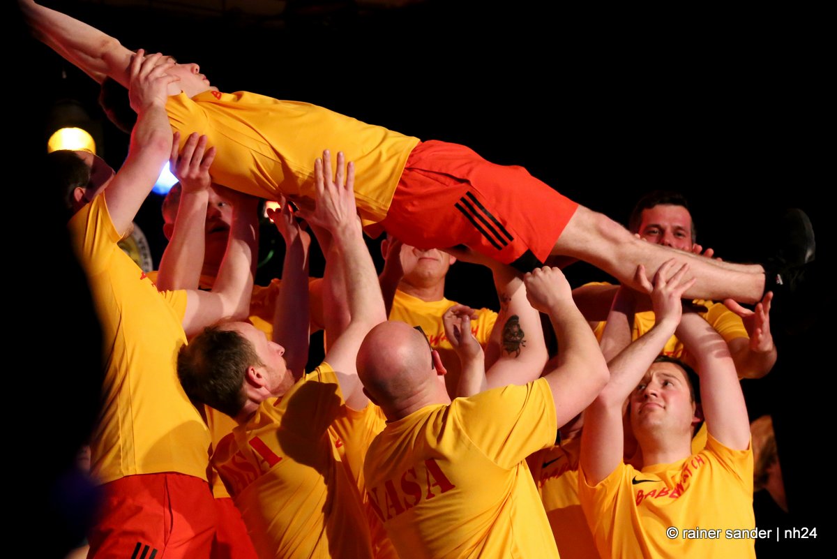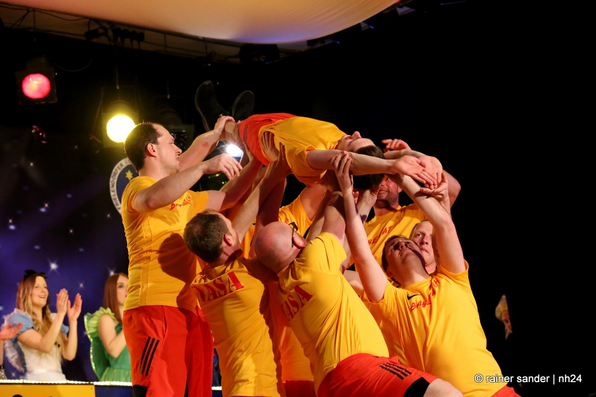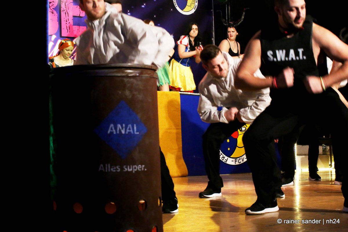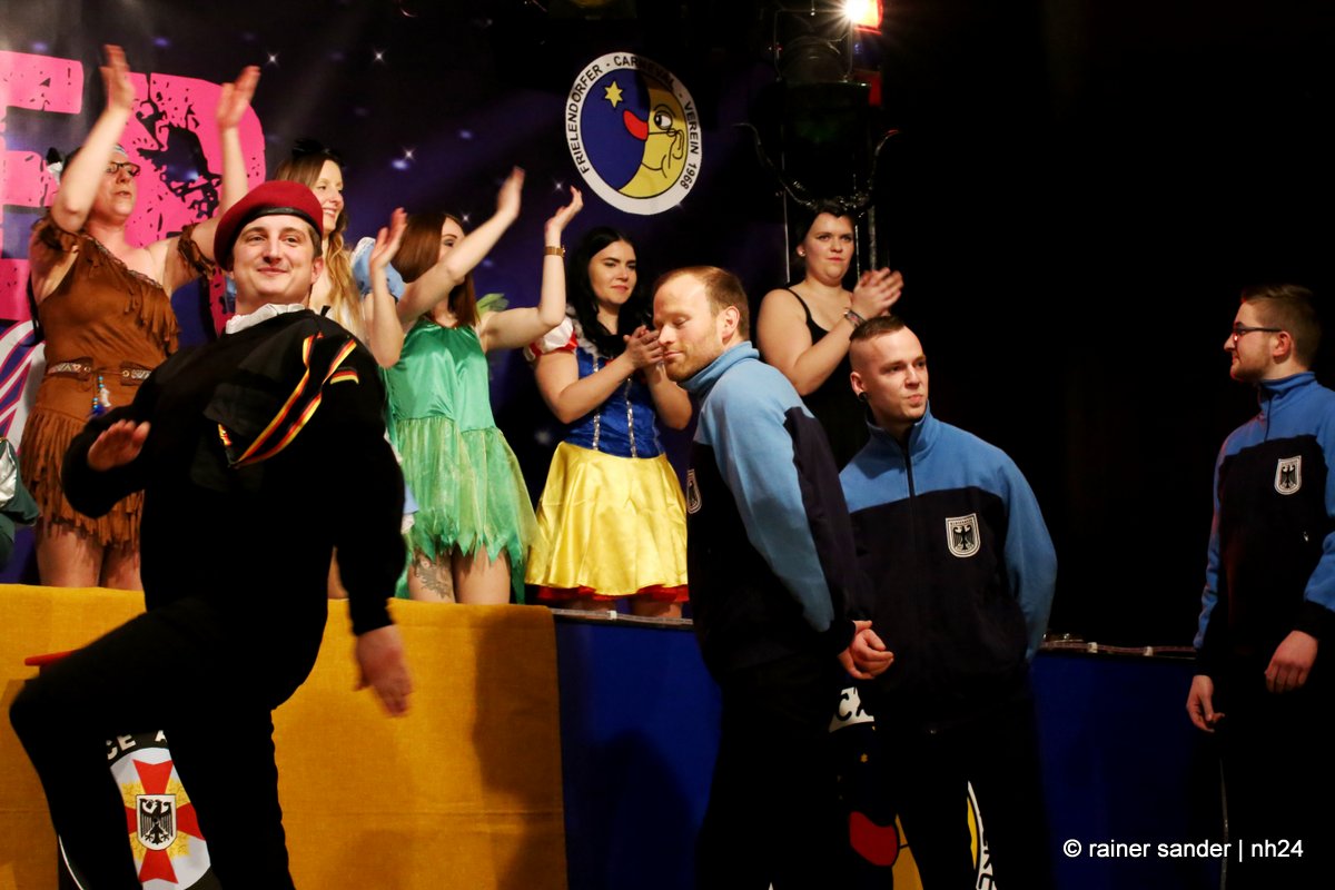 Sie alle hätten nicht kommen können, am Faschings-Donnerstag, denn da waren sie alle in ihren Heimatvereinen im Einsatz und die Gastgeber selbst standen an der Fulda auf der Karnevalsbühne. Die Fresh-Mett-Boys kamen ganz zum Schluss mit einer abwechslungsreichen und mega anspruchsvollen Show. Das „Karnevalistische Kampfsport-Sondereinsatz-Ballett“ provozierte mit freien Oberkörpern für Dauerkreischen im Saal – auch wenn nicht jeder ein Sixpack mitbringt. Das Alter fordert seinen Tribut, aber in dieser Verfassung sollten sie am nächsten Sonntag (9. März Rundsporthalle Baunatal) den Besser Traumtänzern vielleicht den Titel abjagen können. Im Fanbus ab Frielendorf sollen noch ein paar Plätze frei sein…
