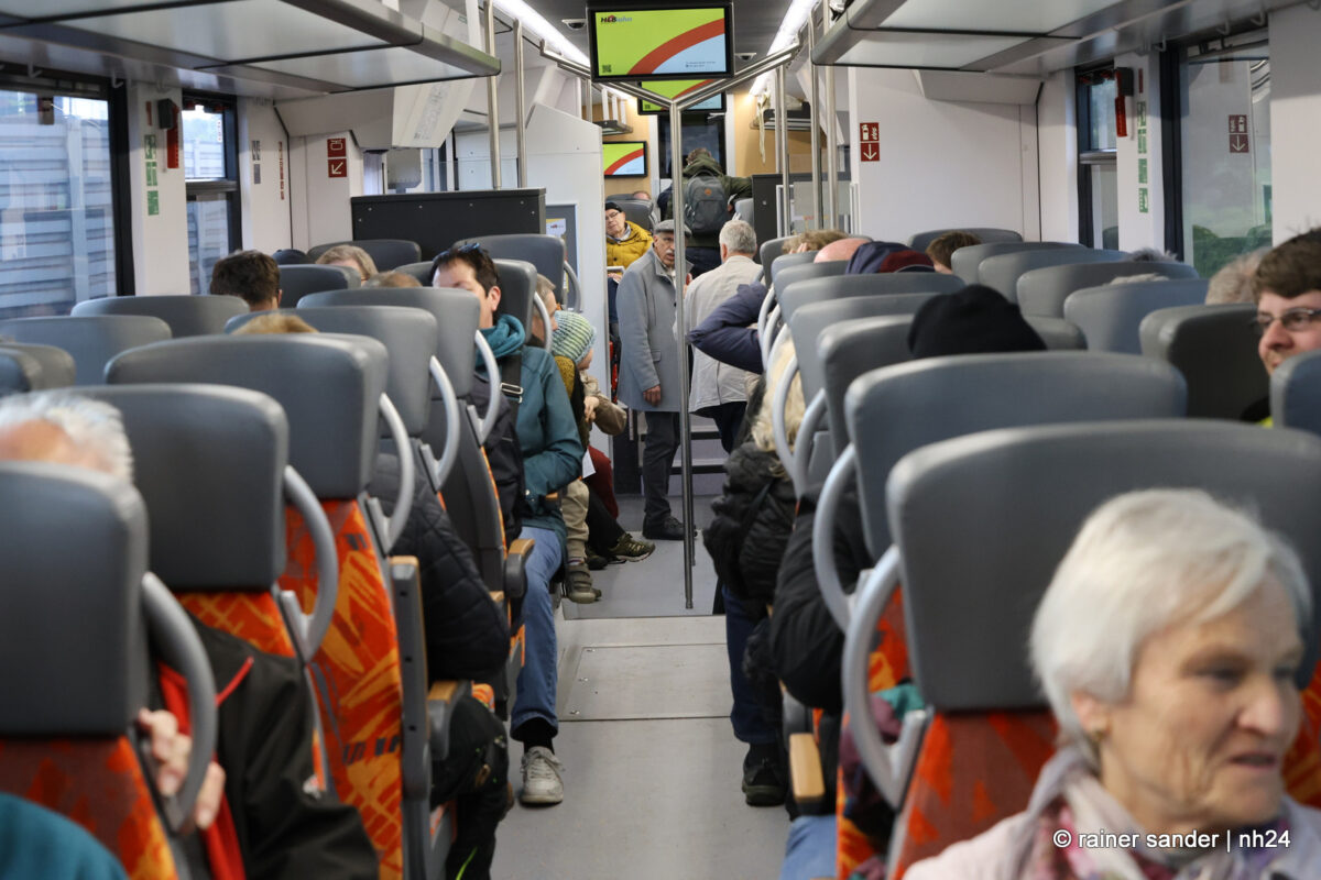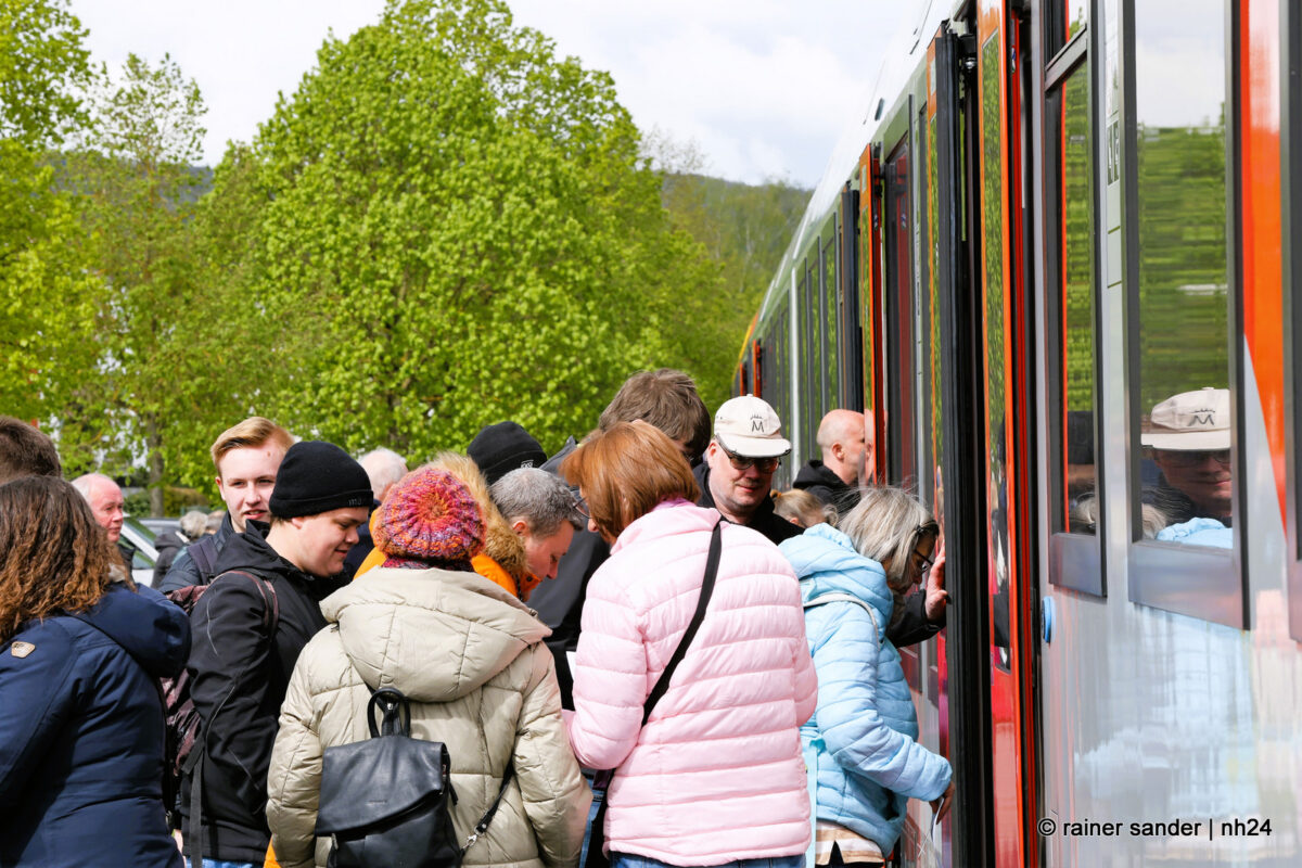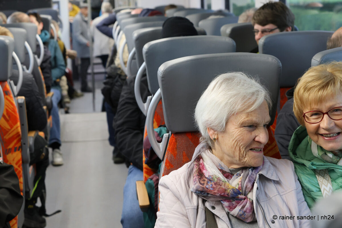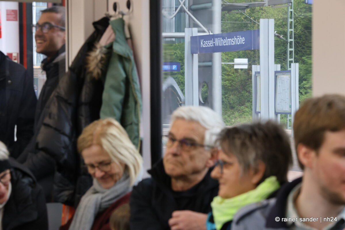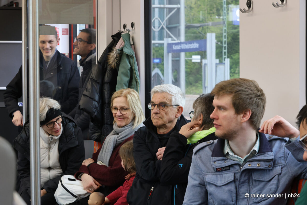 Sehenswürdigkeiten entlang der Strecke? Jede Menge: der alte Bahnhof in Großenritte, der Busbahnhof in Altenbauna, die Kleingartensiedlung, das Volkswagenwerk, die Georg-Lichtenberg-Schule, die Willy-Brandt-Schule, die Dönche, der Magazinhof und der ICE-Bahnhof. Und schon ist man treu der Welt oder mitten Kulturlandschaft der Nordhessen-Metropole. Viele Menschen saßen im Zug, die vor Stilllegung der Strecke in den Siebzigerjahren regelmäßig hier gependelt sind. Vor allem die Schülerinnen und Schüler der Berufsschulen und des Gymnasiums des Landkreises Kassel. Auch Gerhild Tuchan (AG ÖPNV) stellte fest, dass sich viele Menschen noch gut an die Strecke erinnern. Eine schöne Kombination aus alten Erinnerungen und neuen Perspektiven.
