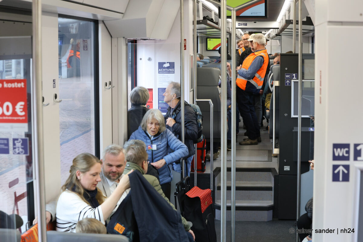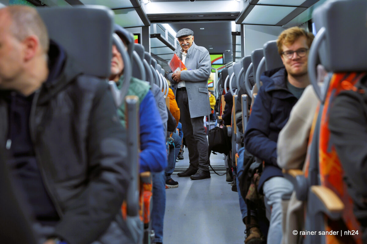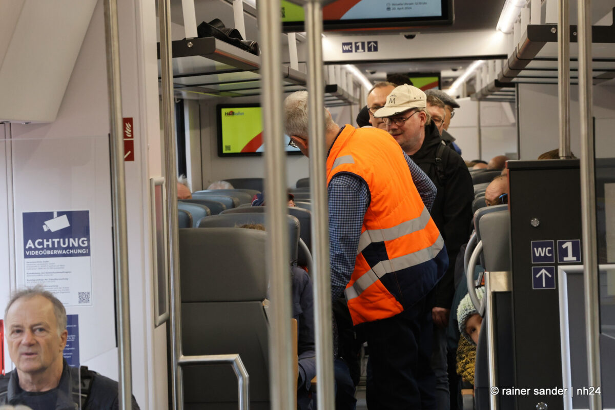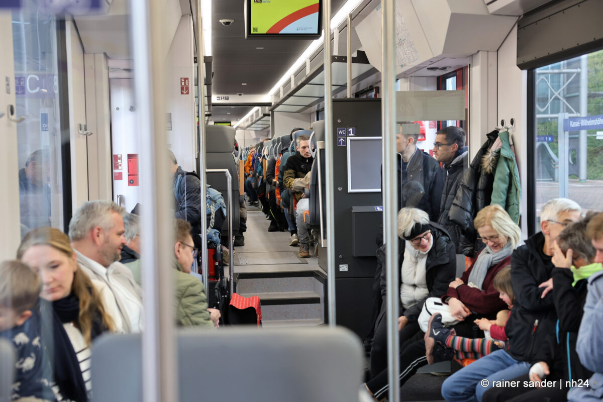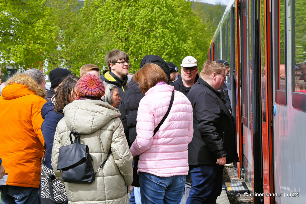 Sehenswürdigkeiten entlang der Strecke? Jede Menge: der alte Bahnhof in Großenritte, der Busbahnhof in Altenbauna, die Kleingartensiedlung, das Volkswagenwerk, die Georg-Lichtenberg-Schule, die Willy-Brandt-Schule, die Dönche, der Magazinhof und der ICE-Bahnhof. Und schon ist man treu der Welt oder mitten Kulturlandschaft der Nordhessen-Metropole. Viele Menschen saßen im Zug, die vor Stilllegung der Strecke in den Siebzigerjahren regelmäßig hier gependelt sind. Vor allem die Schülerinnen und Schüler der Berufsschulen und des Gymnasiums des Landkreises Kassel. Auch Gerhild Tuchan (AG ÖPNV) stellte fest, dass sich viele Menschen noch gut an die Strecke erinnern. Eine schöne Kombination aus alten Erinnerungen und neuen Perspektiven.