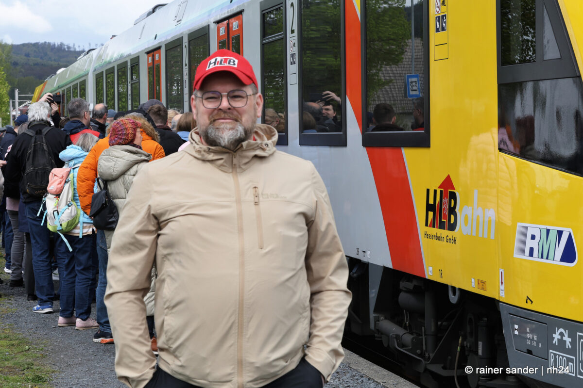 Das hieße für Fernreisen keine Koffer mehr zur Straßenbahn und zum Bahnhof zu schleppen, in 15 Minuten, statt in 37 Minuten in Wilhelmshöhe zu sein und den Staus oder Behinderungen unterwegs ein Schnippchen zu schlagen. Um das auszuprobieren, hatte die Hessische Landesbahn (HLB) – in der die frühere Kleinbahn aufgegangen ist – den Zug und das Personal, um ihn zu steuern, zur Verfügung gestellt. Funktioniert hat auf zwei Schnupperfahrten um 10:00 Uhr und 11:55 Uhr alles. Davon konnten sich alle drei Baunataler Bürgermeisterkandidaten, voran die Mit-Organisatorin Gerhild Tuchan, Henry Richter und Erster Stadtrat Daniel Jung (mit Familie) live überzeugen. Außerdem konnten sie gleichzeitig die positive Stimmung der „Reisenden“ aufnehmen. Deren Laune war schließlich beeindruckend gut!