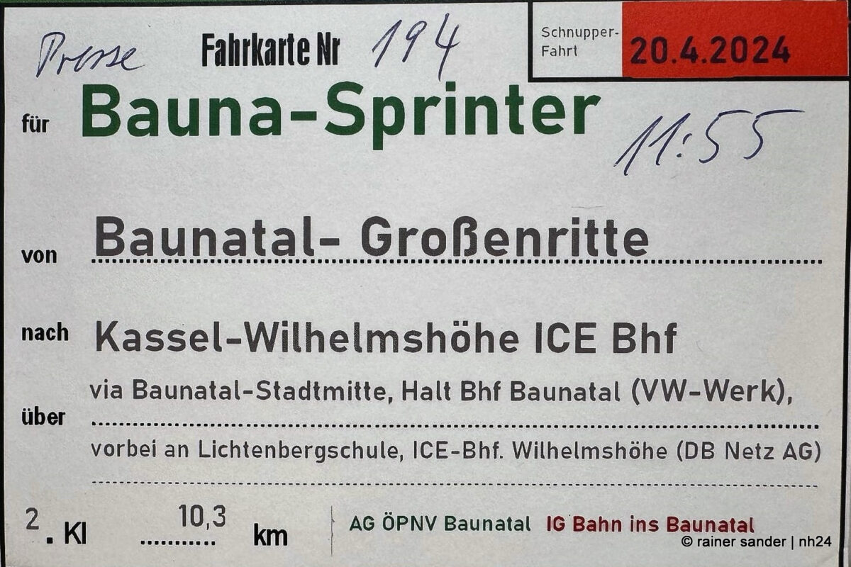 BAUNATAL | KASSEL. Auf alter Strecke unterwegs waren gestern viele Menschen aus Baunatal und Kassel. Mit der AG ÖPNV und der IG „Mit der Bahn ins Baunatal“ hatten zwei Initiativen gemeinsam zu einer Schnupperfahrt mit dem „Bauna-Sprinter“ eingeladen. Mit ihnen im Zug saßen Mitarbeiter der Baunataler und Kasseler Verwaltung sowie drei Bürgermeisterkandidaten.