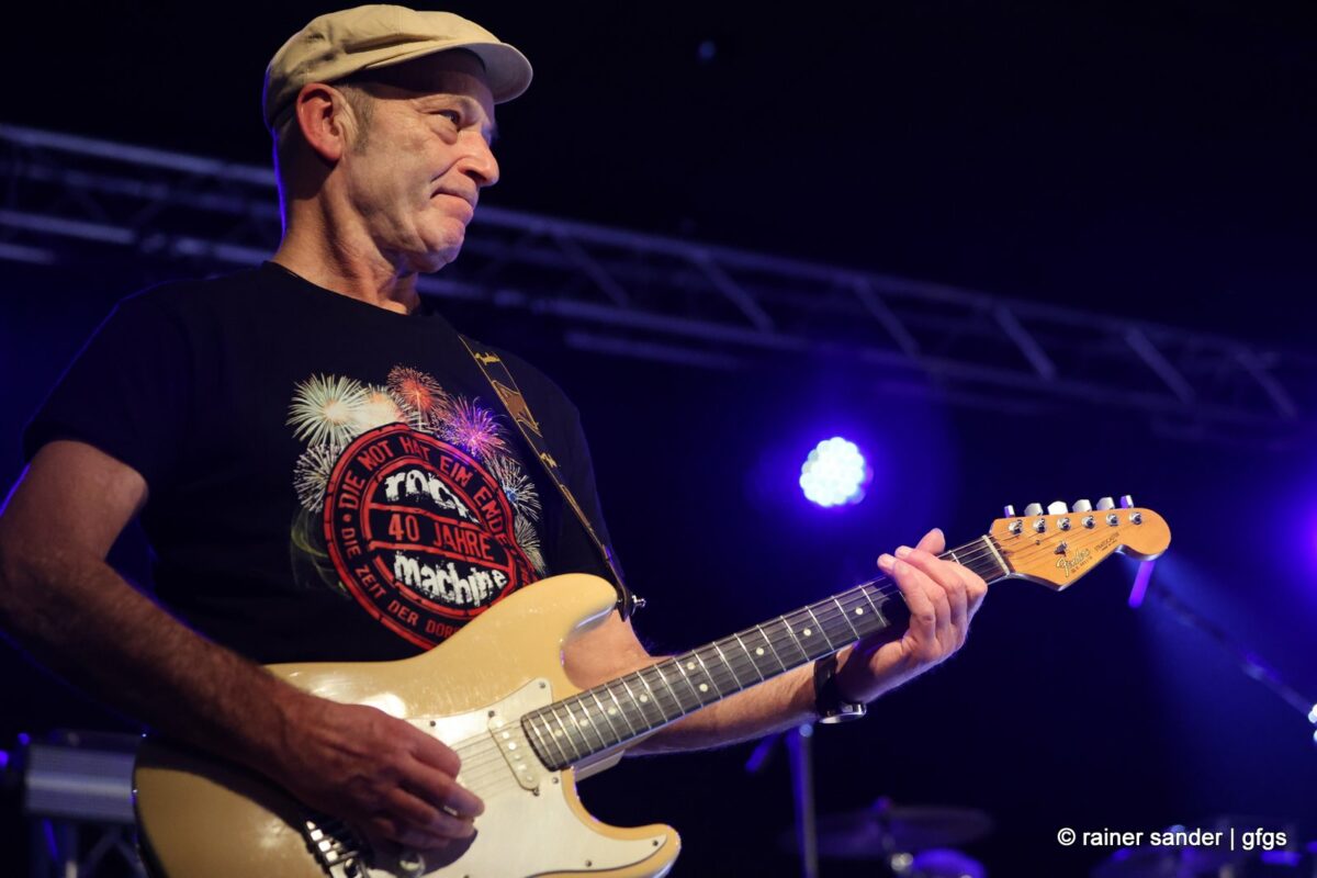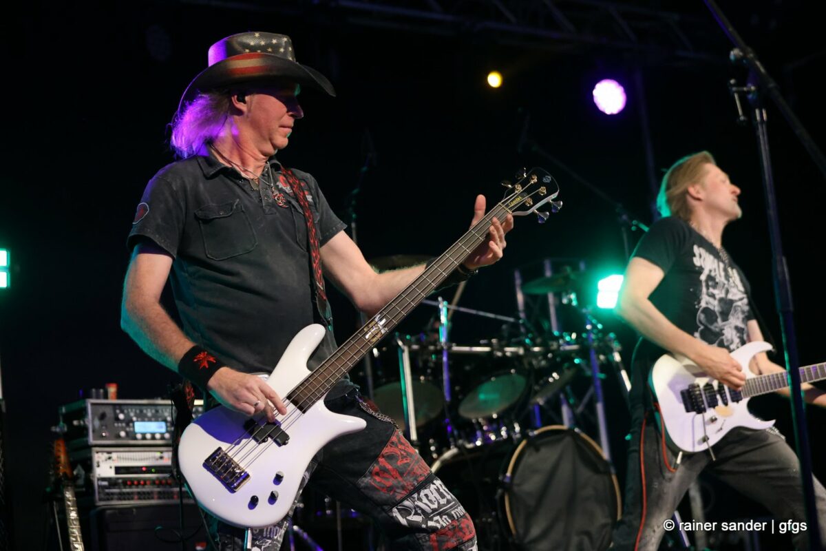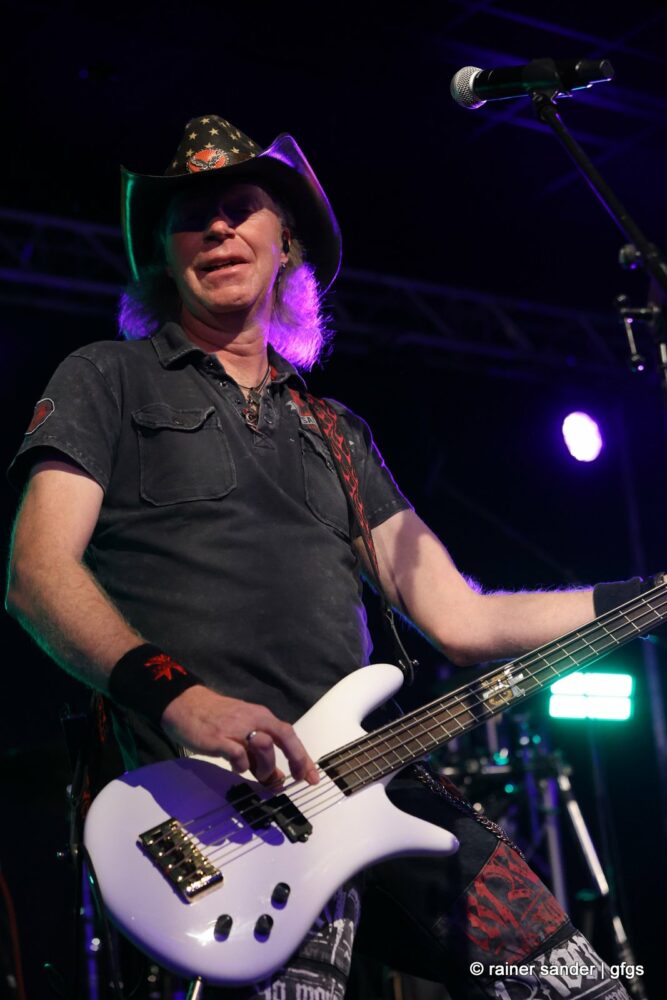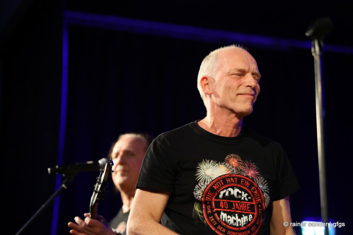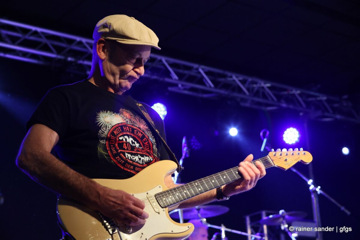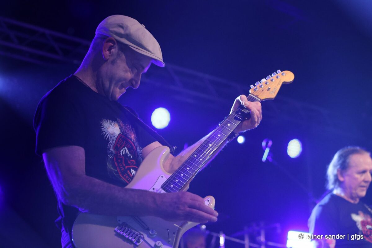 Auf der warteten schon Rockmachine und Harry Stingl, der für den verunglückten Fichte an der Gitarre einsprang. Keine Sorge, Fichte geht’s besser und bald wieder gut! „Come Together“ forderten die Rocker mit „Superstition“. „Davy‘s immer noch on The Road Again! „Westerland“ grüßt den, „Flieger und die Sonne“!. Lange Bärte wuchsen zum ZZ-Top-Medley und gelbe Haare (ja, nee) für „In The Midnight Hour“ um Viertel vor zwölf …