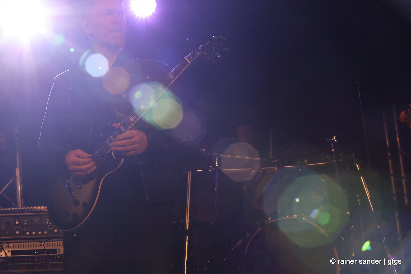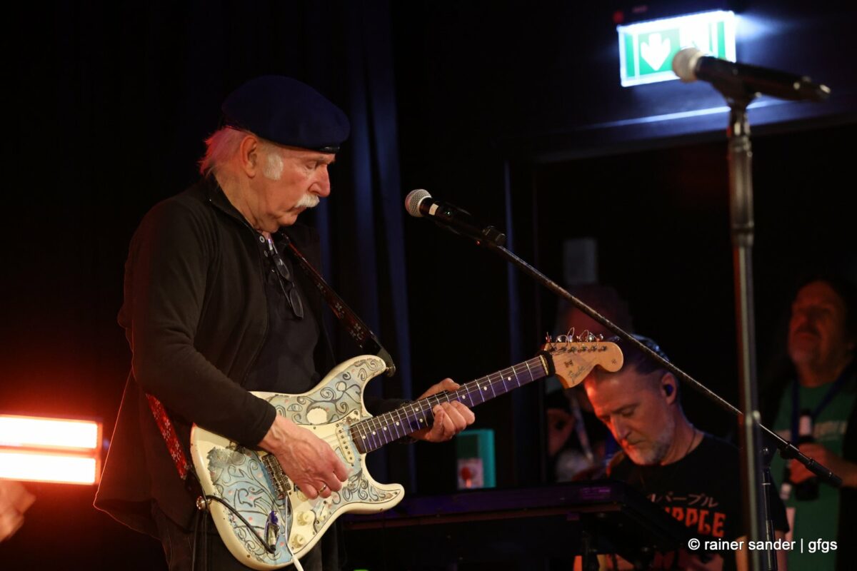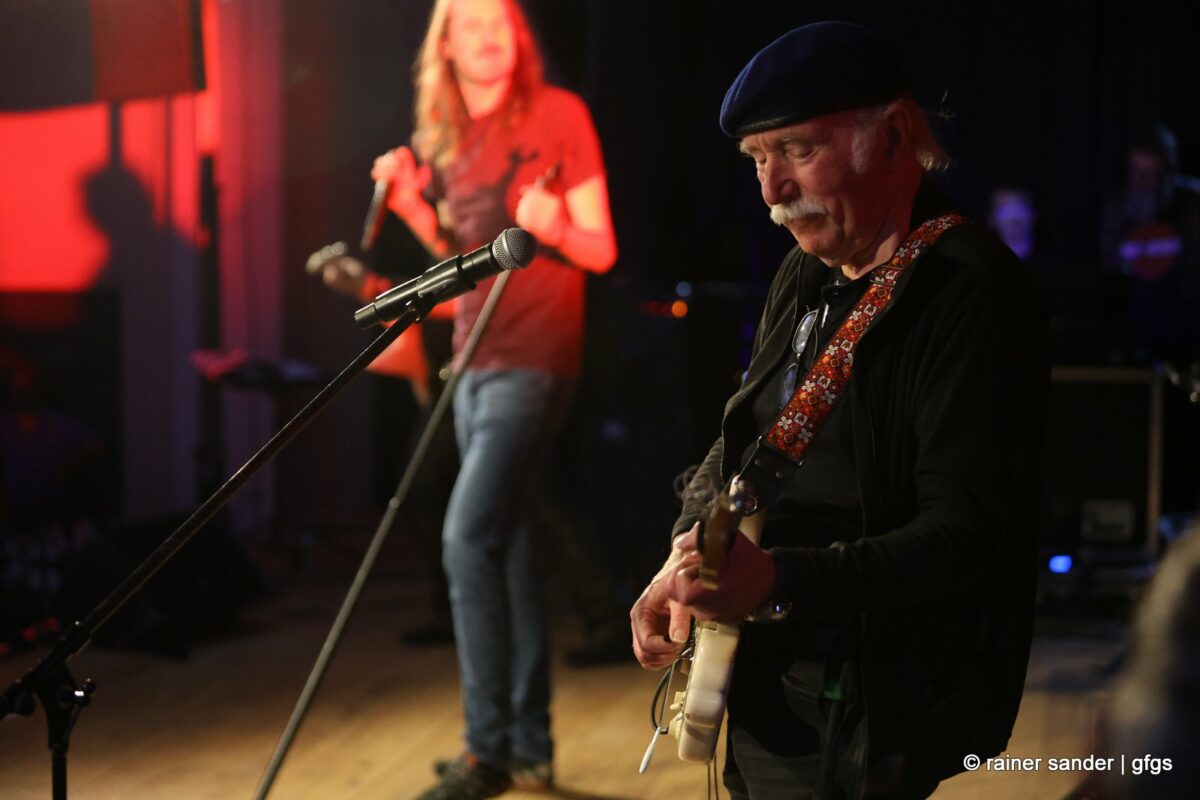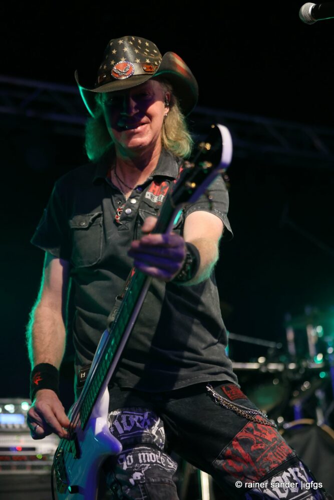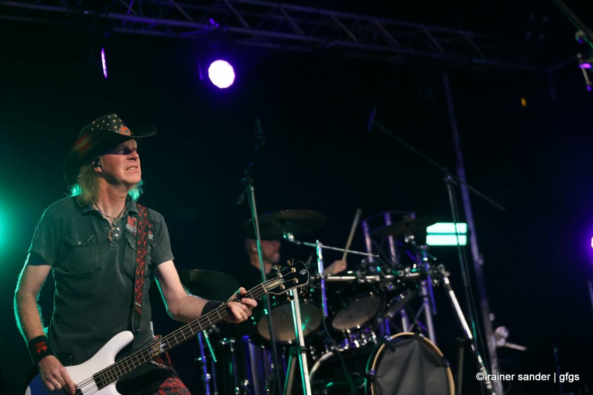 Auf der warteten schon Rockmachine und Harry Stingl, der für den verunglückten Fichte an der Gitarre einsprang. Keine Sorge, Fichte geht’s besser und bald wieder gut! „Come Together“ forderten die Rocker mit „Superstition“. „Davy‘s immer noch on The Road Again! „Westerland“ grüßt den, „Flieger und die Sonne“!. Lange Bärte wuchsen zum ZZ-Top-Medley und gelbe Haare (ja, nee) für „In The Midnight Hour“ um Viertel vor zwölf …