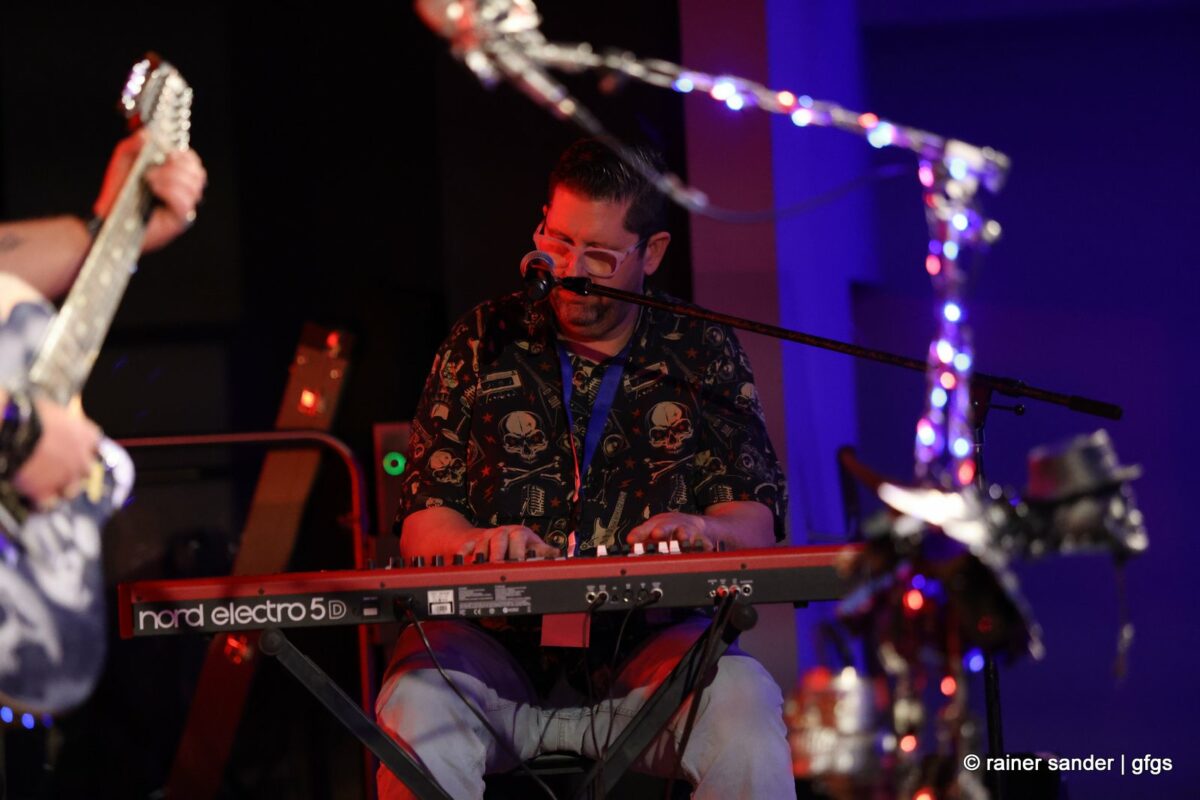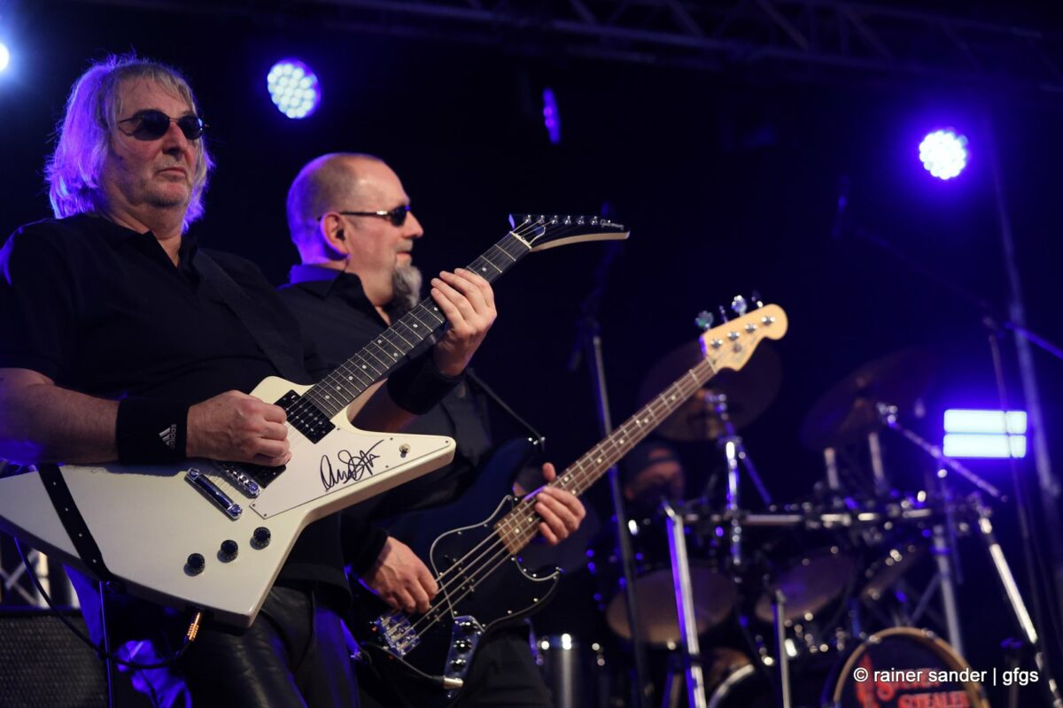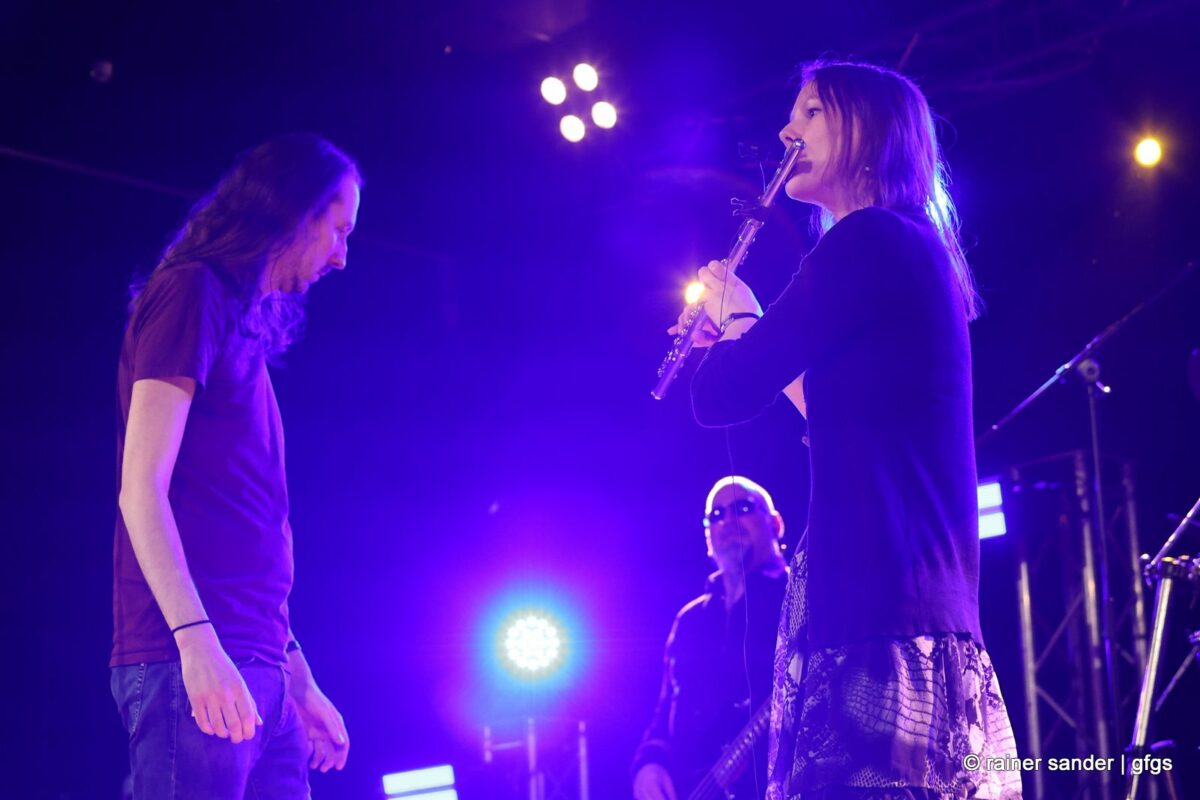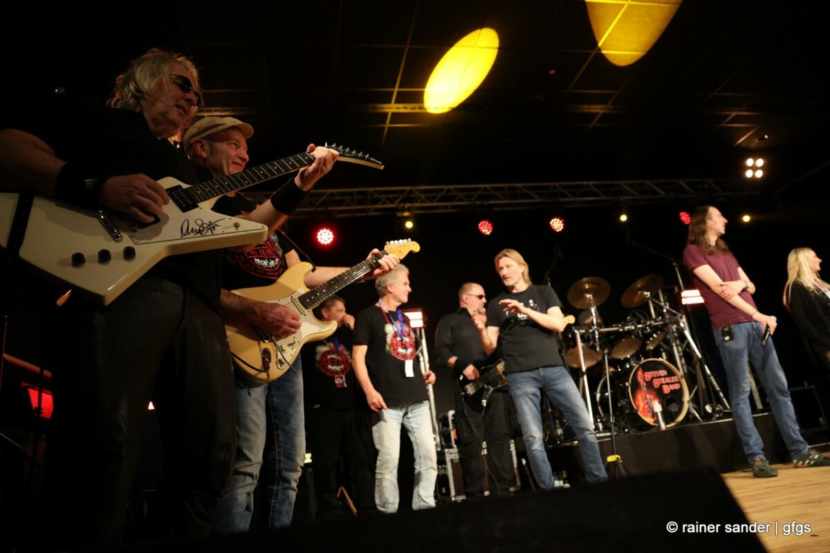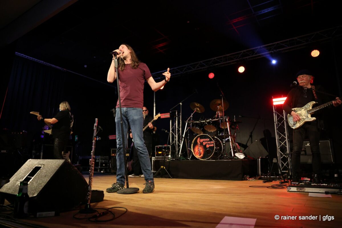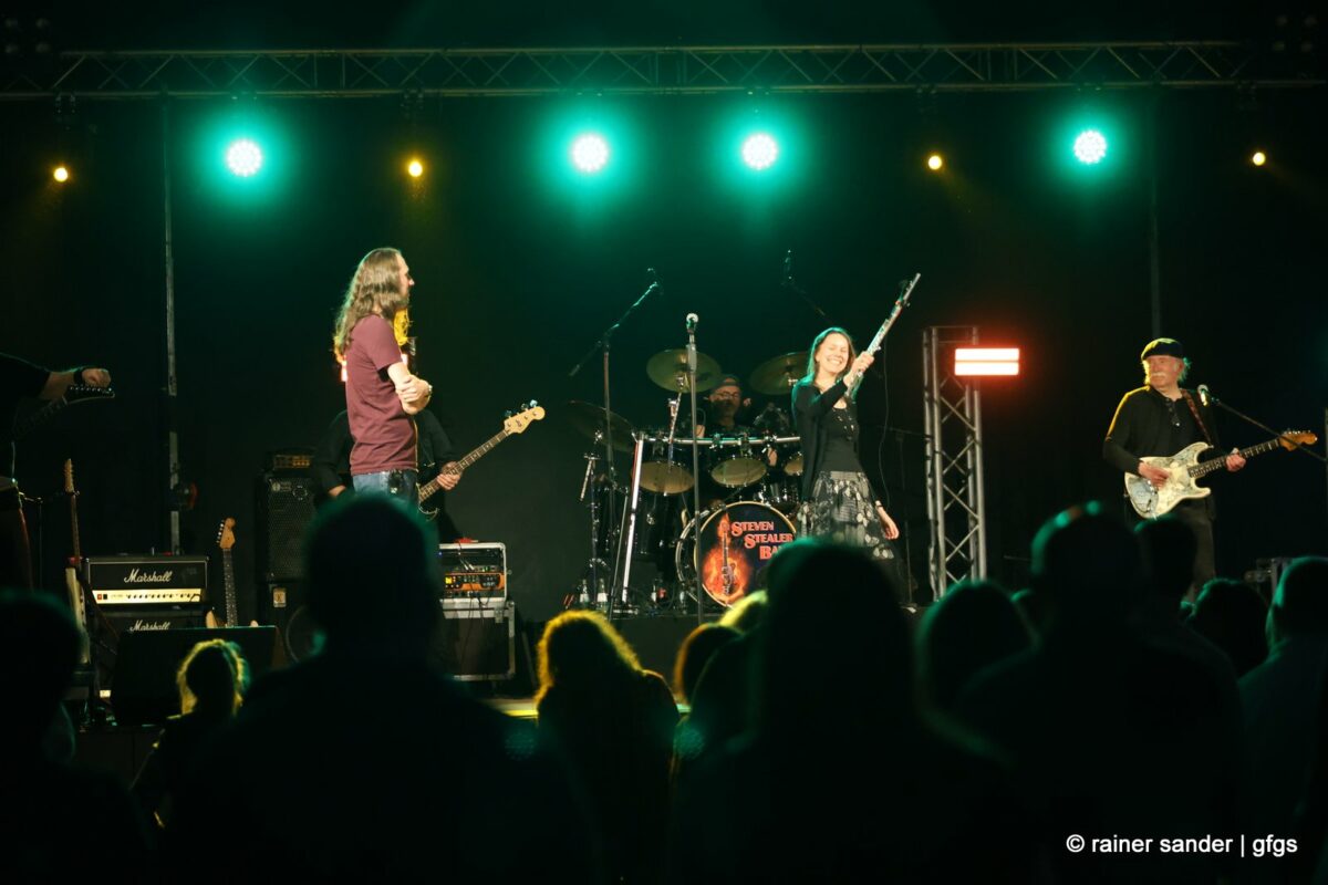 Viertel nach zwölf dann die letzte Band des Abends. Wie immer in den 20 Jahren: Die Steven Stealer Band. Zum Start mit Led Zeppelins „Immigrantensong“ und Roger Moores „Over The Hills And Far Away“. Dass Liebe wie Sauerstoff ist, wussten schon The Sweet, als sie endlich selber Liede schreiben durften. „I Came For You“ hat Manfred Mann gesagt und schließlich kommt die Band einmal wieder mit ihrem instrumentalischen Upgrade: Gastmusikerin Bianca van Kemenade an der Querflöte. Diesmal nicht nur für „Locomotive Breath“, sondern zusätzlich das Intro von „Stairway To Heaven“. Der Schlusspunkt des offiziellen Teils.