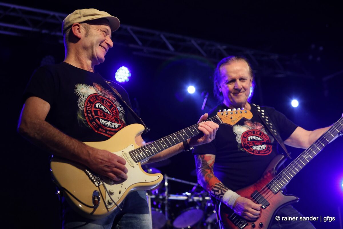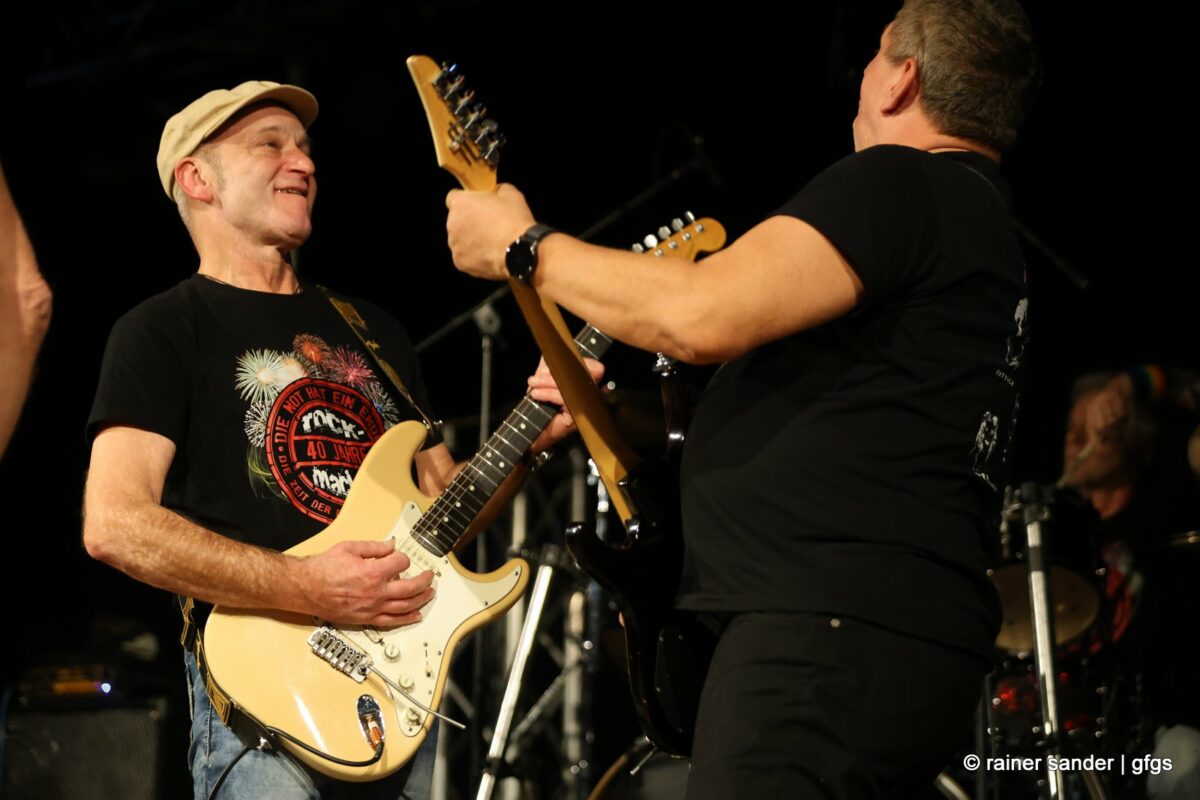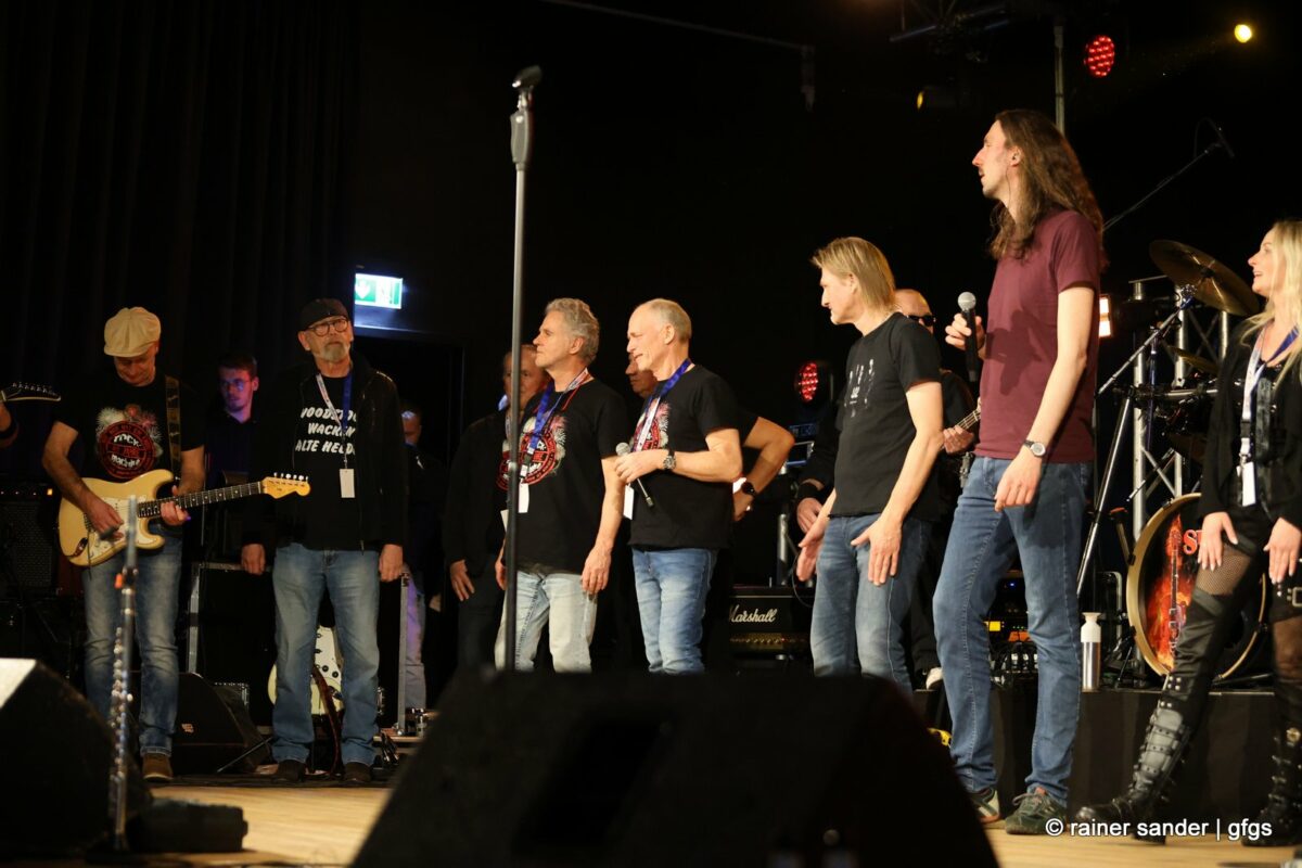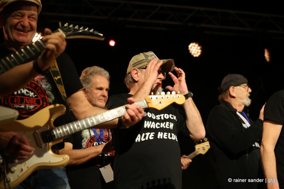 Walter Mayer und Kalle Paltinat hatten 2004 die Idee, alte Musik-Helden der 70er- und 80er-Jahre zurück auf die Bühne zu holen. Here weg go again! Vorgestern Abend haben sie erneut fünf Bands in die stets ausverkaufte Location eingeladen. Wieder rockten sie sich quer durch die Musikgeschichte und längst gibt es um die 70 er und 80er keine Brandmauer mehr. Die inzwischen alten und jungen Helden beschäftigten das Publikum auch mit ein paar ganz alten Titeln aus den 60ern, aber mehr und mehr aus den 90ern und 2000ern.