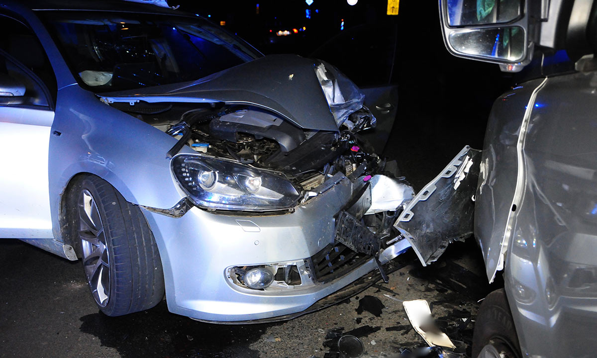 Der 42-Jährige kam gegen 21:45 Uhr auf die Fahrspur in Richtung Borken und streifte in Höhe des Abzweigs nach Römersberg den Audi TT einer 53 Jahre alten Frau aus Schwalmstadt. Der Pkw schleuderte und prallte in der Folge frontal gegen einen ebenfalls entgegenkommenden Ford Transit. Dessen 59-jähriger Fahrer und sein 46-jähriger Mitfahrer aus Borken wurden leicht verletzt. Die 53-Jährige sowie eine 46-Jährige aus Schwalmstadt in dem Audi TT blieben unverletzt.