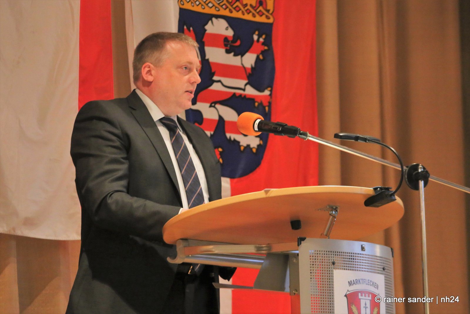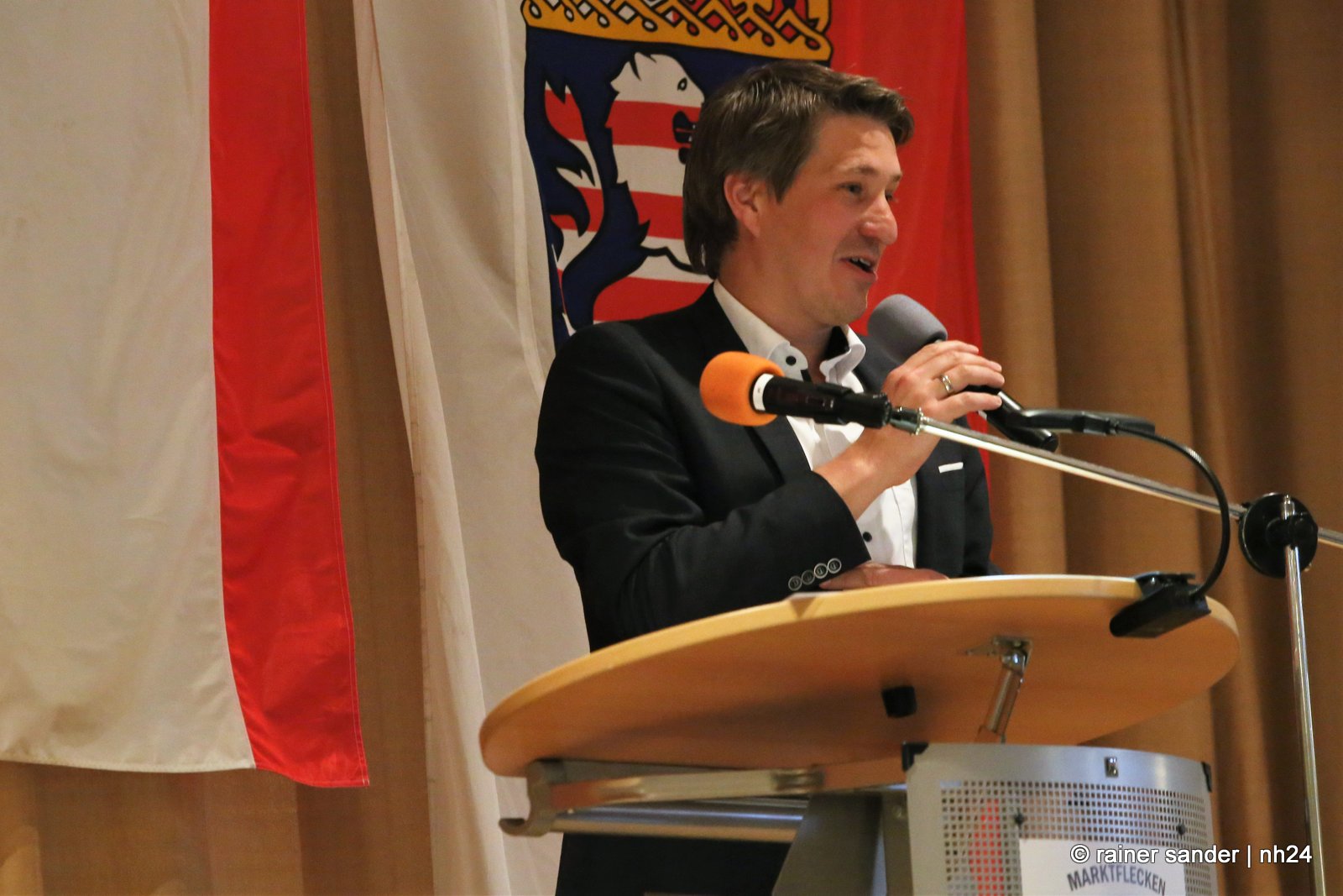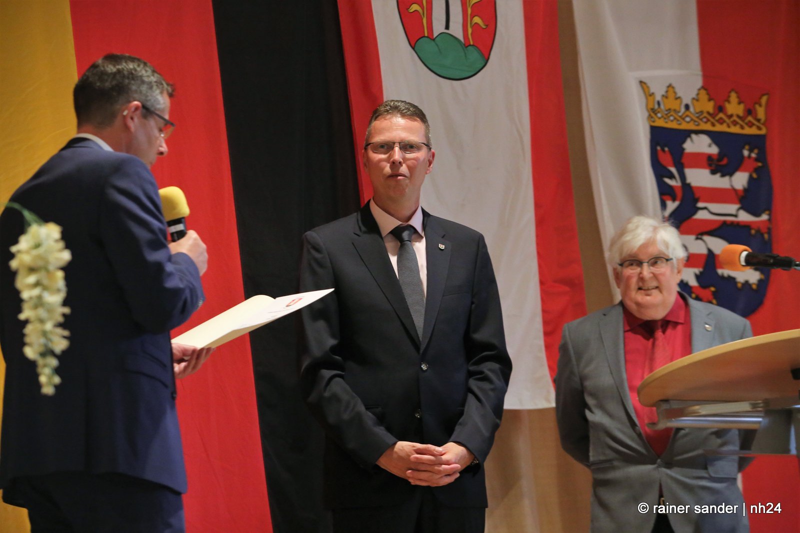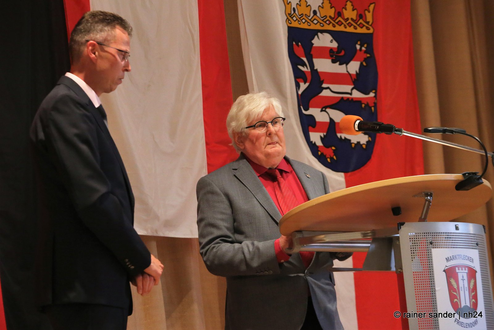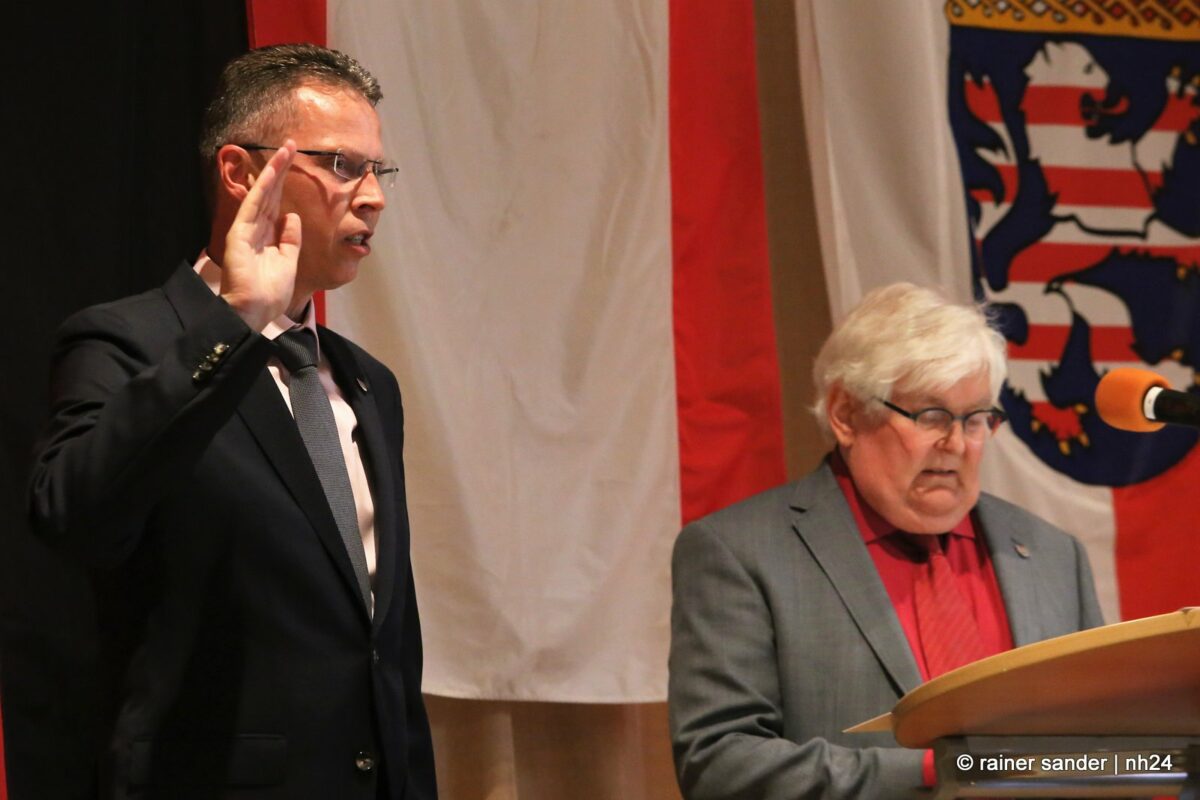 Gestern fand im Hotel Hassia der offizielle Stabwechsel statt. In der ehemaligen Bergbau- und heutigen Tourismusgemeinde Marktflecken Frielendorf, ist die Stimmung noch nicht ganz entschieden. Ist es mehr schade, dass Thorsten Vaupel geht oder mehr schön, dass Jens Nöll kommt? Kann man Thorsten Vaupel verstehen oder nicht? Rudolf Matheis, Vorsitzender der Gemeindevertretung, zeigte sich noch immer enttäuscht, dass Vaupel nicht noch einmal antrat und unternahm den Versuch einer Einordnung in die weltpolitische Lage, mit den derzeit meist geäußerten Worten, „niemand hätte gedacht…“, und sieht Deutschland in der Sorge, in den Krieg gezogen zu werden. Gleichzeitig wollte er die Sache offensichtlich schnell erledigen. Kurz und knapp: „Lieber Jens Nöll, ich führe Dich hiermit in das Amt ein“ und „lieber Thorsten Vaupel, ich verabschiede Dich hiermit aus dem Amt!“ Ganz so kurz ging es dann nicht, drei Stunden dauerte die Zeremonie.