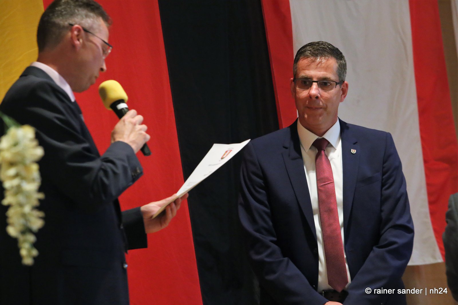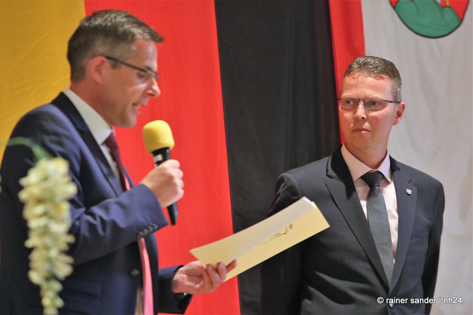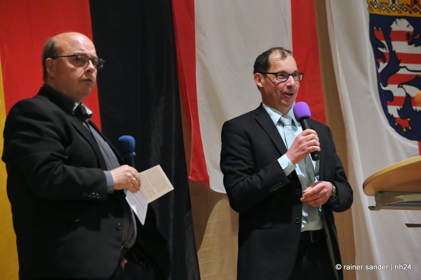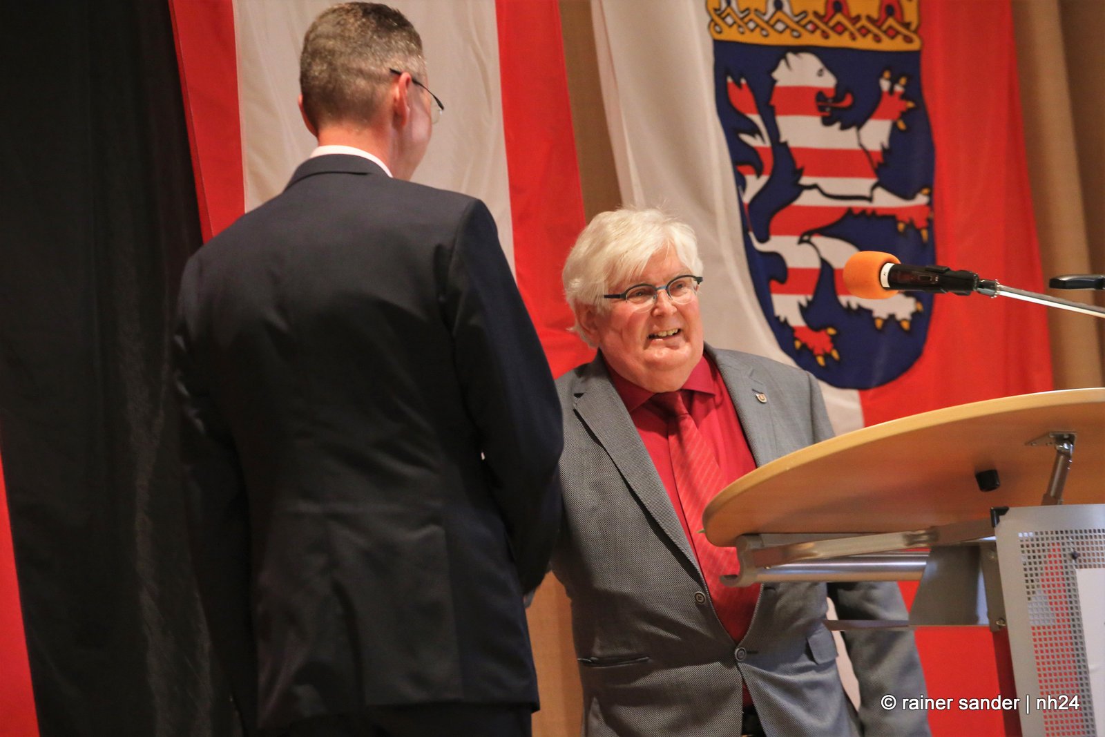 Gestern fand im Hotel Hassia der offizielle Stabwechsel statt. In der ehemaligen Bergbau- und heutigen Tourismusgemeinde Marktflecken Frielendorf, ist die Stimmung noch nicht ganz entschieden. Ist es mehr schade, dass Thorsten Vaupel geht oder mehr schön, dass Jens Nöll kommt? Kann man Thorsten Vaupel verstehen oder nicht? Rudolf Matheis, Vorsitzender der Gemeindevertretung, zeigte sich noch immer enttäuscht, dass Vaupel nicht noch einmal antrat und unternahm den Versuch einer Einordnung in die weltpolitische Lage, mit den derzeit meist geäußerten Worten, „niemand hätte gedacht…“, und sieht Deutschland in der Sorge, in den Krieg gezogen zu werden. Gleichzeitig wollte er die Sache offensichtlich schnell erledigen. Kurz und knapp: „Lieber Jens Nöll, ich führe Dich hiermit in das Amt ein“ und „lieber Thorsten Vaupel, ich verabschiede Dich hiermit aus dem Amt!“ Ganz so kurz ging es dann nicht, drei Stunden dauerte die Zeremonie.