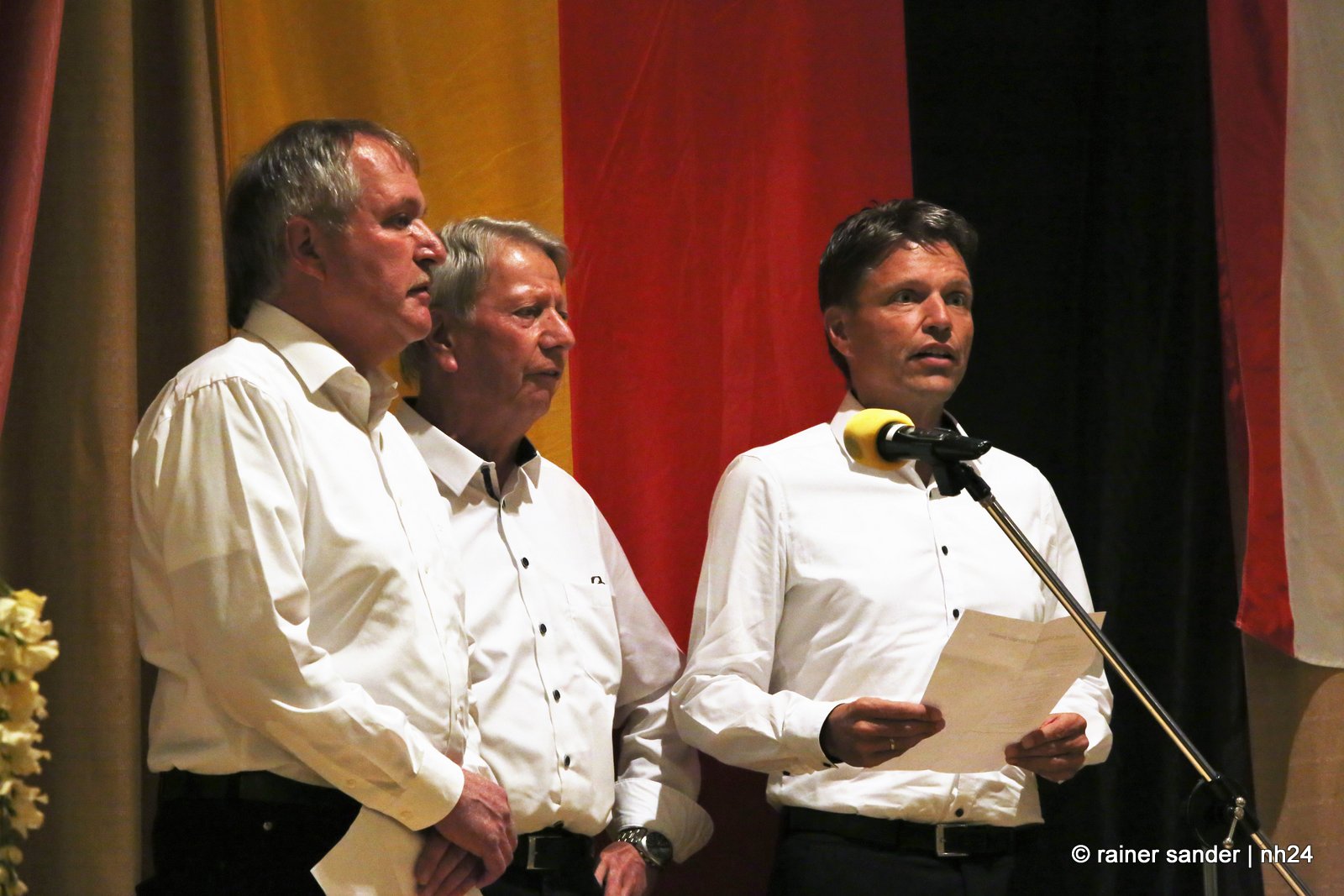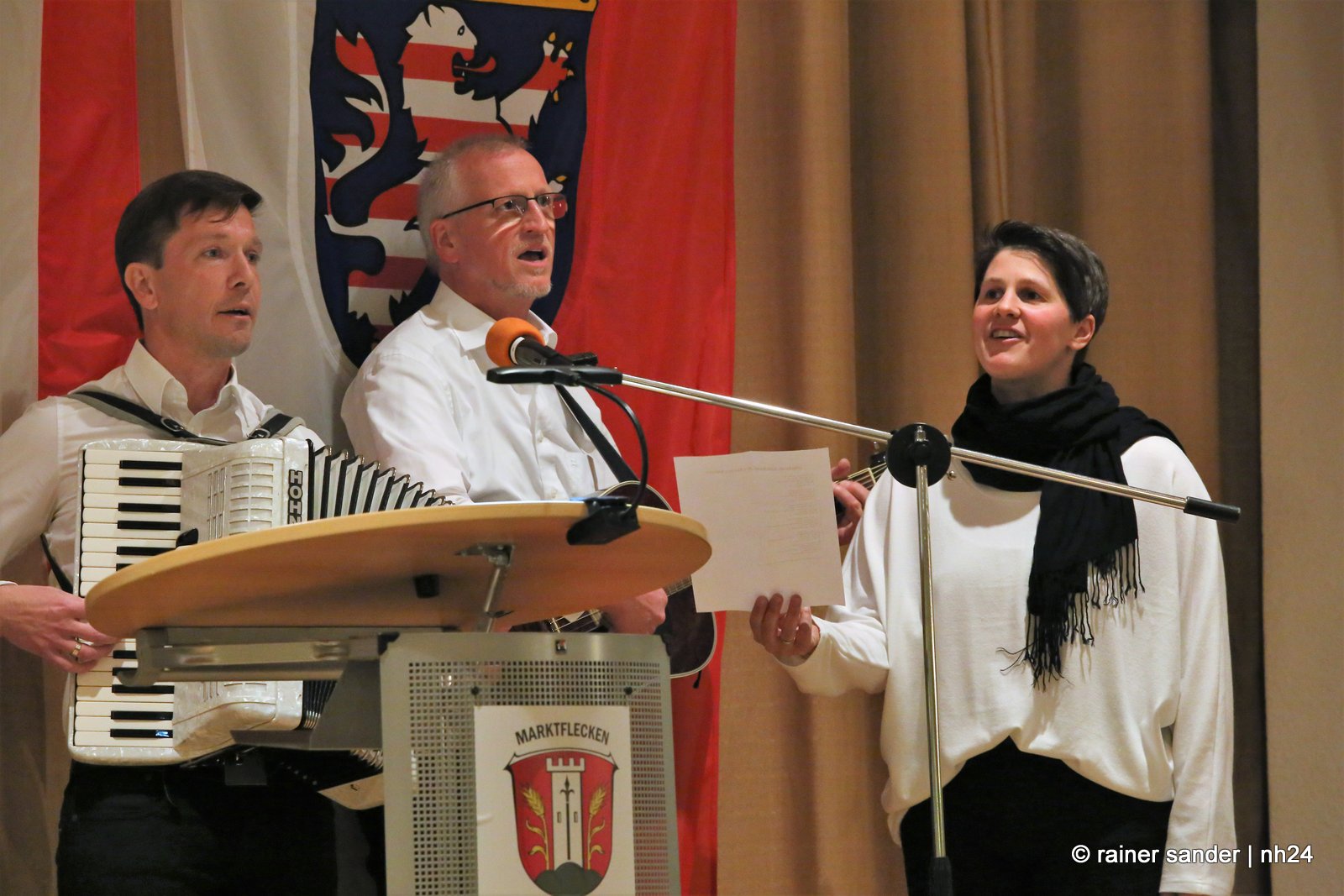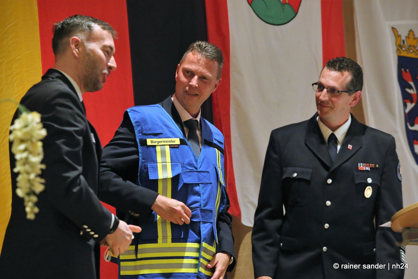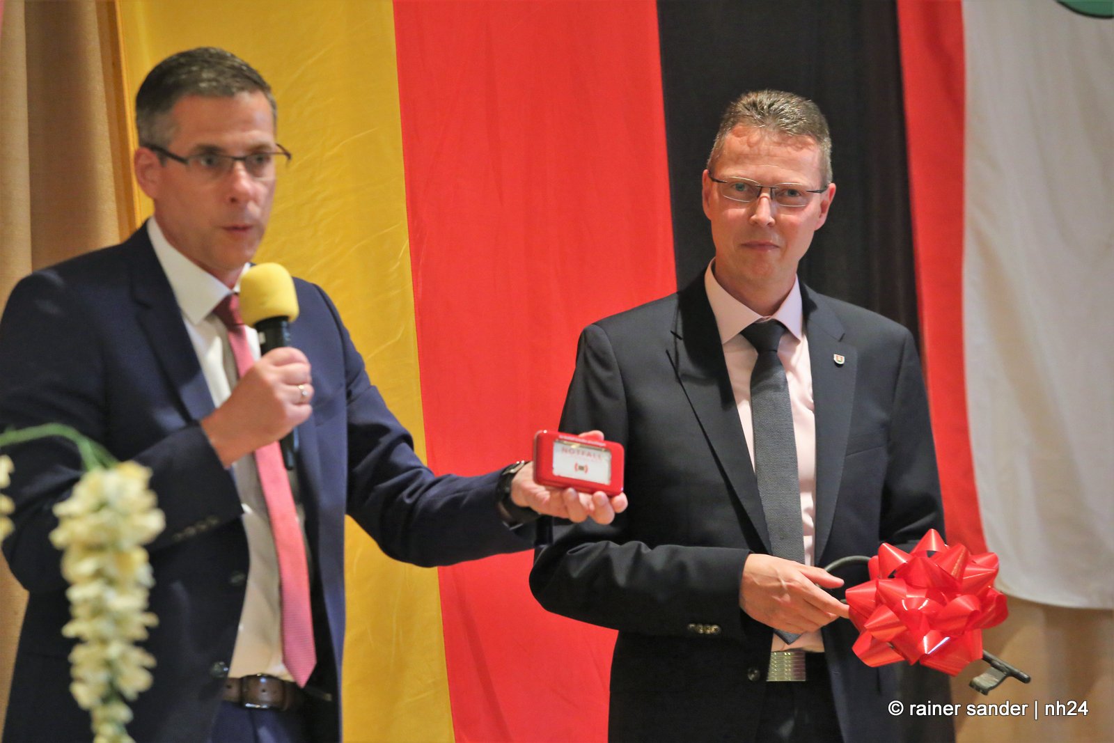 Thorsten Vaupel ist nicht nur selbst auch Feuerwehrmann, sondern auch Freund des Karnevals und so sangen die Ohespatzen das Steigerlied, passend zur Bergbaugemeinde, zum Abschied. Jens Nöll ist Mitglied der Feuerwehrkapelle, die zum Amtsantritt ohne ihren Posaunisten auftrat. Die Mitarbeiterinnen und Mitarbeiter der Gemeinde fassten in einer Präsentation die Stationen der letzten sechs Jahre zusammen und freuen sich auf eine Zeit mit dem neuen Bürgermeister. Kirchlichen Segen gab es von den Pfarrern Marco Firnges und Sven Kuchenbäcker mit XG – gesegnet und mehr… (Rainer Sander)