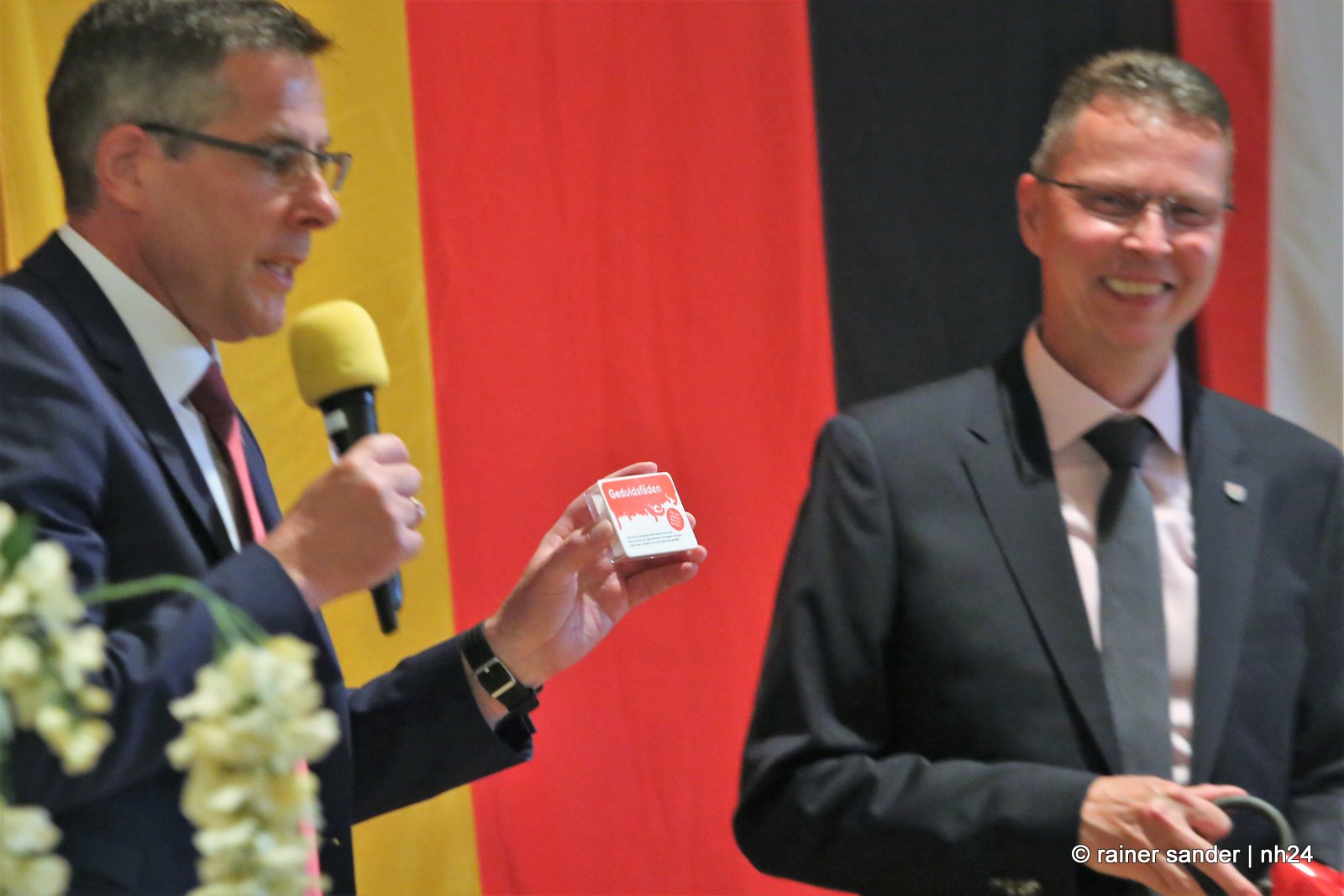 Dass sich Nöll und Vaupel gegenseitig symbolisch Geduldsfäden schenkten, Nöll mit den Worten „es wird im neuen Job nicht besser, nur anders“, ist einerseits ein Indiz dafür, dass sich beide ganz gut kennen, seit einem Jahr zusammengearbeitet haben und es spricht andererseits für die Erkenntnis, dass die Zeiten so sind, wie sie sind, ganz gleich, auf welcher Position man sitzt. Für Thorsten Vaupel ist die wichtigste Veränderung aber: „Isabelle Vaupel ist jetzt nicht mehr die Frau des Bürgermeisters, sondern ich bin jetzt wieder der Mann der Hebamme!“