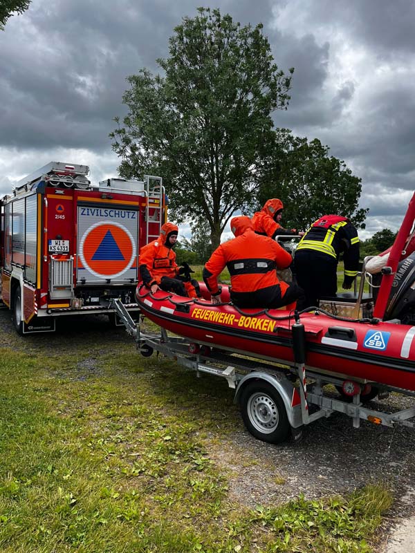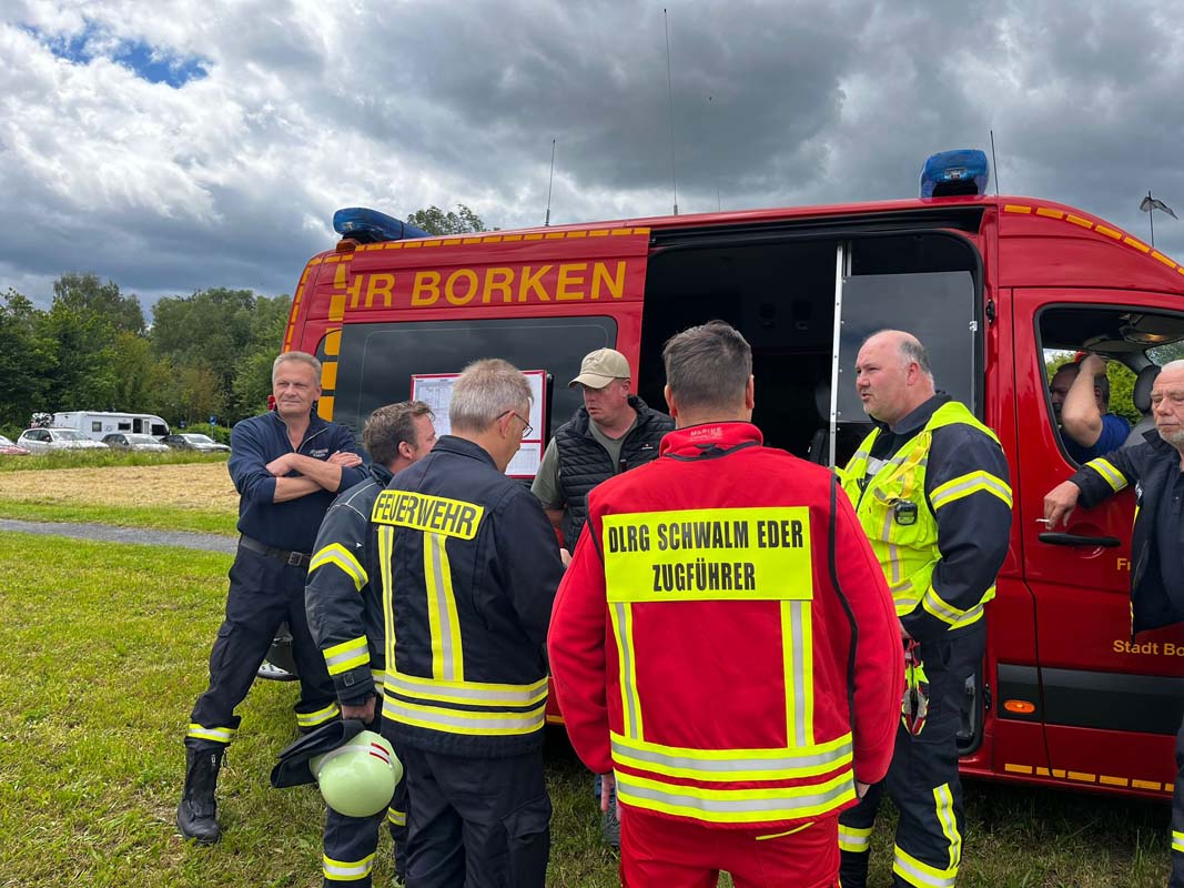 Alarmiert wurden die Feuerwehr Borken, die Führungsgruppe Borken, die DLRG, Taucher der Berufsfeuerwehr Kassel, die Polizei sowie ein Rettungs- und ein Notarztteam.