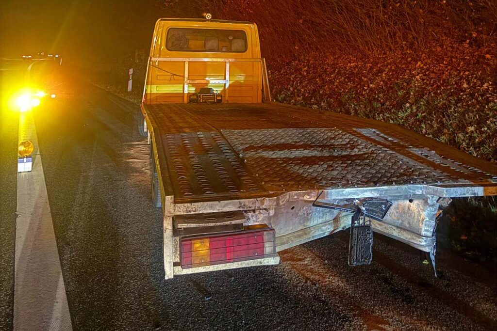 Gegen 18:30 Uhr geriet ein 19-Jähriger aus Bad Wildungen zwischen den Anschlussstellen Fritzlar und Gudensberg mit seinem VW Golf nach rechts von der Fahrbahn ab und kollidierte kurz hinter Fritzlar mit einem wegen einer Panne liegengebliebenen Autotransporter. Dessen Fahrer befand sich zum Unfallzeitpunkt außerhalb des Fahrzeugs. Der 19-Jährige und seine 17-jährige Beifahrerin aus Fritzlar wurden leicht verletzt. Der 27-jährige Fahrer des Pannenfahrzeugs aus Lorsch erlitt schwere Verletzungen. Den Gesamtschaden schätzt die Polizei auf rund 27.000 EUR. Beide Fahrzeuge wurden sichergestellt und abgeschleppt. Im Einsatz waren ein Notarzt, zwei Rettungsteams, die Feuerwehr Fritzlar zur Absicherung der Unfallstelle sowie eine Streifenwagenbesatzung der Polizeiautobahnstation Baunatal.