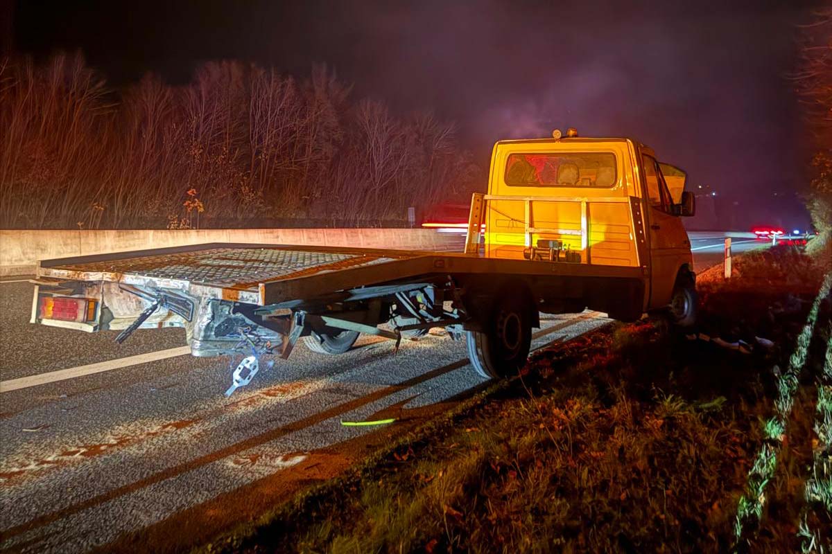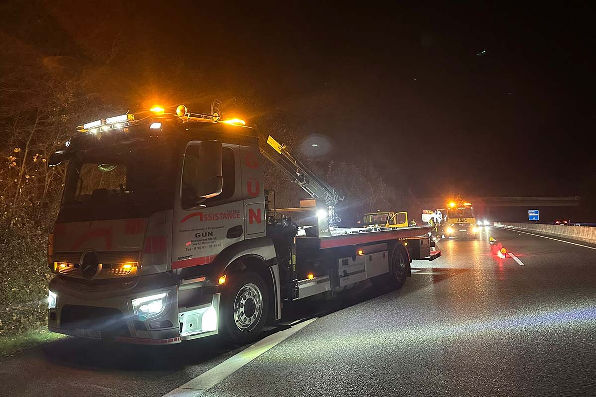 Gegen 18:30 Uhr geriet ein 19-Jähriger aus Bad Wildungen zwischen den Anschlussstellen Fritzlar und Gudensberg mit seinem VW Golf nach rechts von der Fahrbahn ab und kollidierte kurz hinter Fritzlar mit einem wegen einer Panne liegengebliebenen Autotransporter. Dessen Fahrer befand sich zum Unfallzeitpunkt außerhalb des Fahrzeugs. Der 19-Jährige und seine 17-jährige Beifahrerin aus Fritzlar wurden leicht verletzt. Der 27-jährige Fahrer des Pannenfahrzeugs aus Lorsch erlitt schwere Verletzungen. Den Gesamtschaden schätzt die Polizei auf rund 27.000 EUR. Beide Fahrzeuge wurden sichergestellt und abgeschleppt. Im Einsatz waren ein Notarzt, zwei Rettungsteams, die Feuerwehr Fritzlar zur Absicherung der Unfallstelle sowie eine Streifenwagenbesatzung der Polizeiautobahnstation Baunatal.